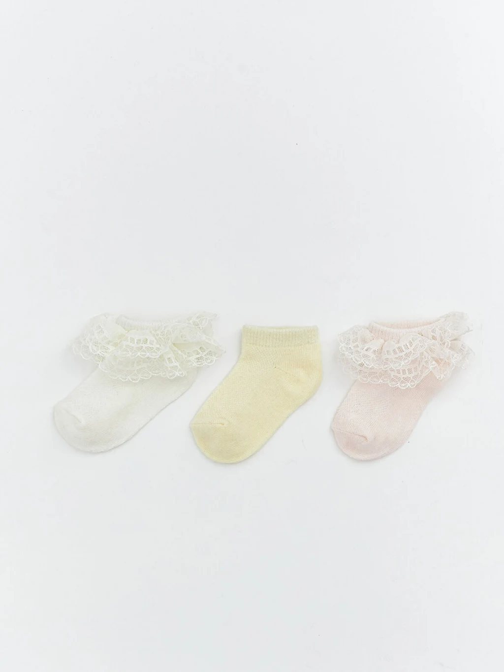Kız bebek patik çorap seti, bilekleri dantel fırfırlı ve fırfırsız düz modeller içerir.