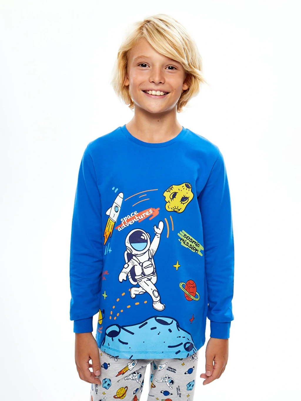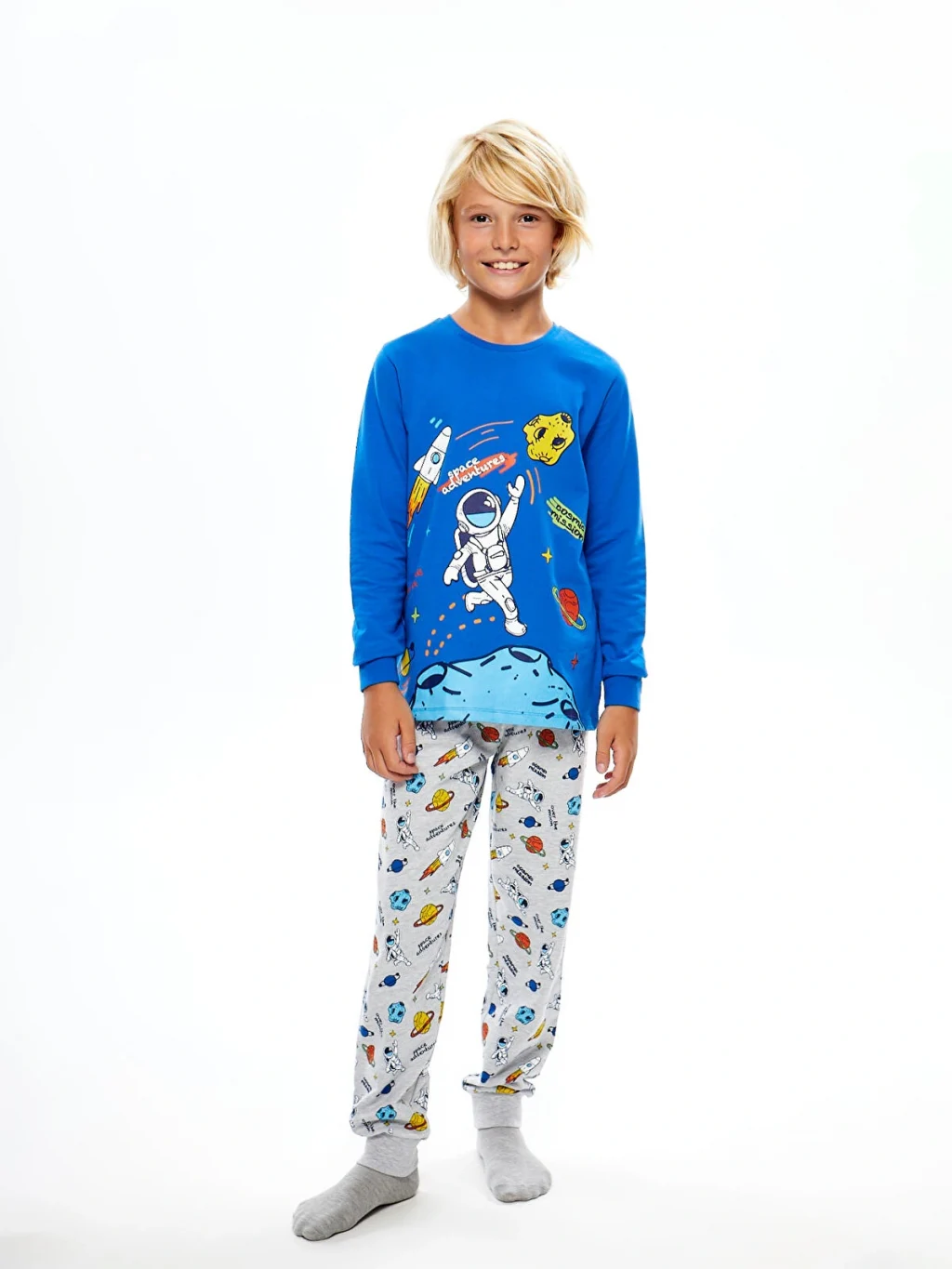 Erkek çocuk pijama takımı, pamuklu kumaştan üretilmiştir. Yumuşak ve nefes alabilen yapısı ile çocuğunuzun rahat etmesini sağlar.
