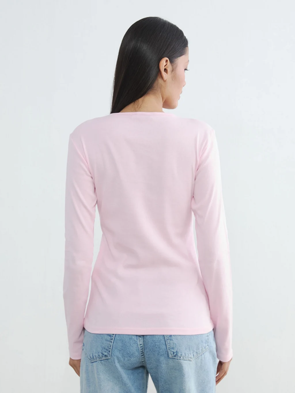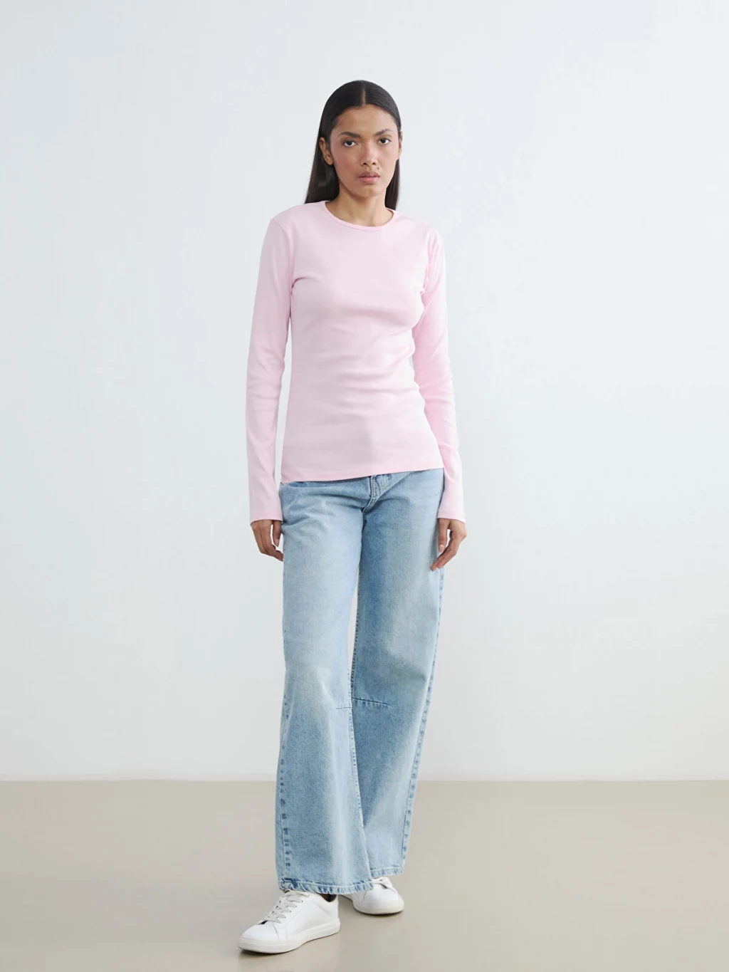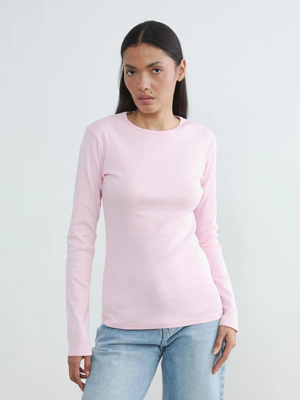 Dar kalıplı kadın body, %100 pamuk içerikli ribana kumaştan üretilmiştir. Bisiklet yakalı ve uzun kollu bir tasarıma sahiptir.