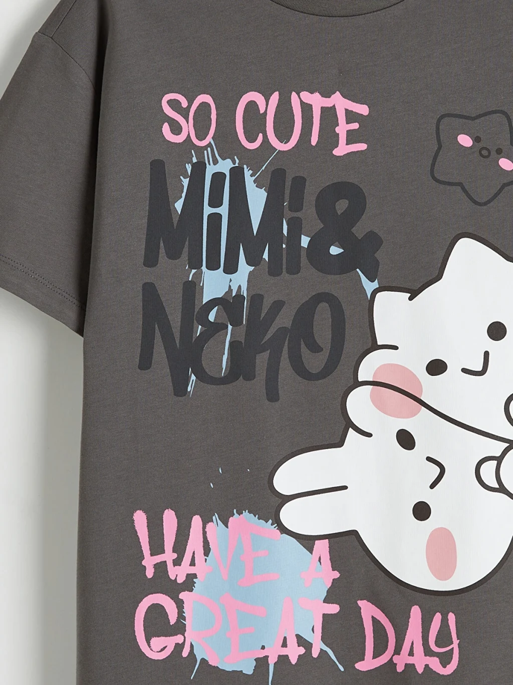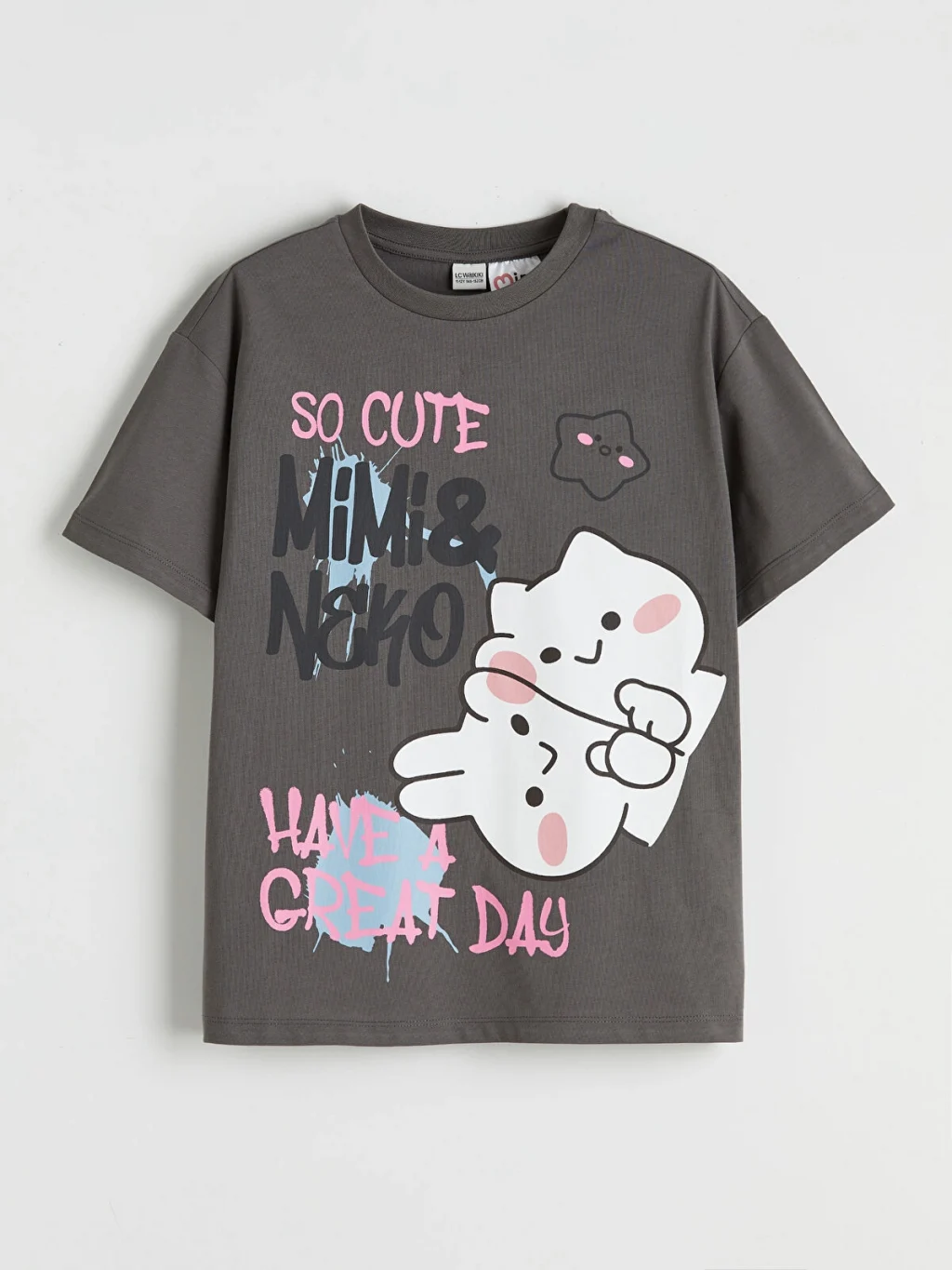 Mimi & Neko lisanslı, bisiklet yaka ve kısa kollu kız çocuk tişört, %100 pamuklu kumaştan üretilmiştir.