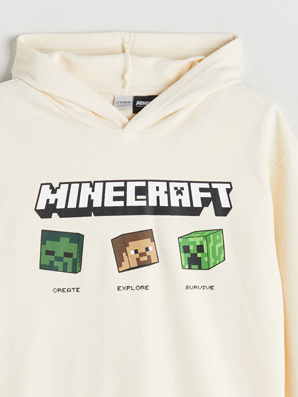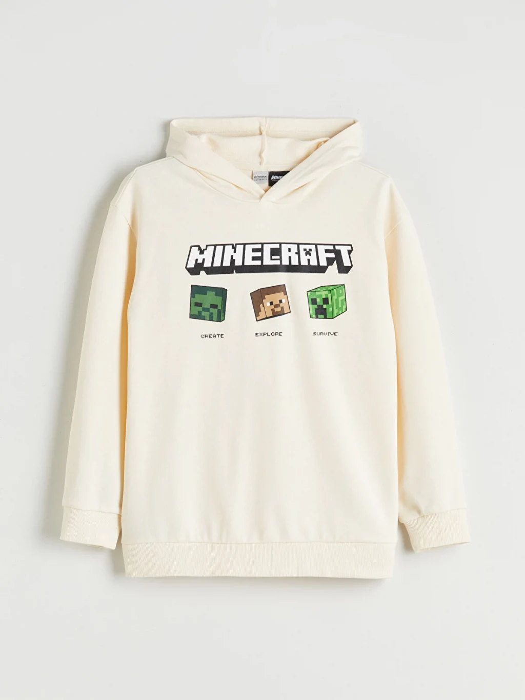 Minecraft lisanslı erkek çocuk sweatshirt, kapüşonlu ve uzun kolludur. Kalın 3 iplik kumaştan üretilmiş olup kol ve etek ucu ribanalıdır.