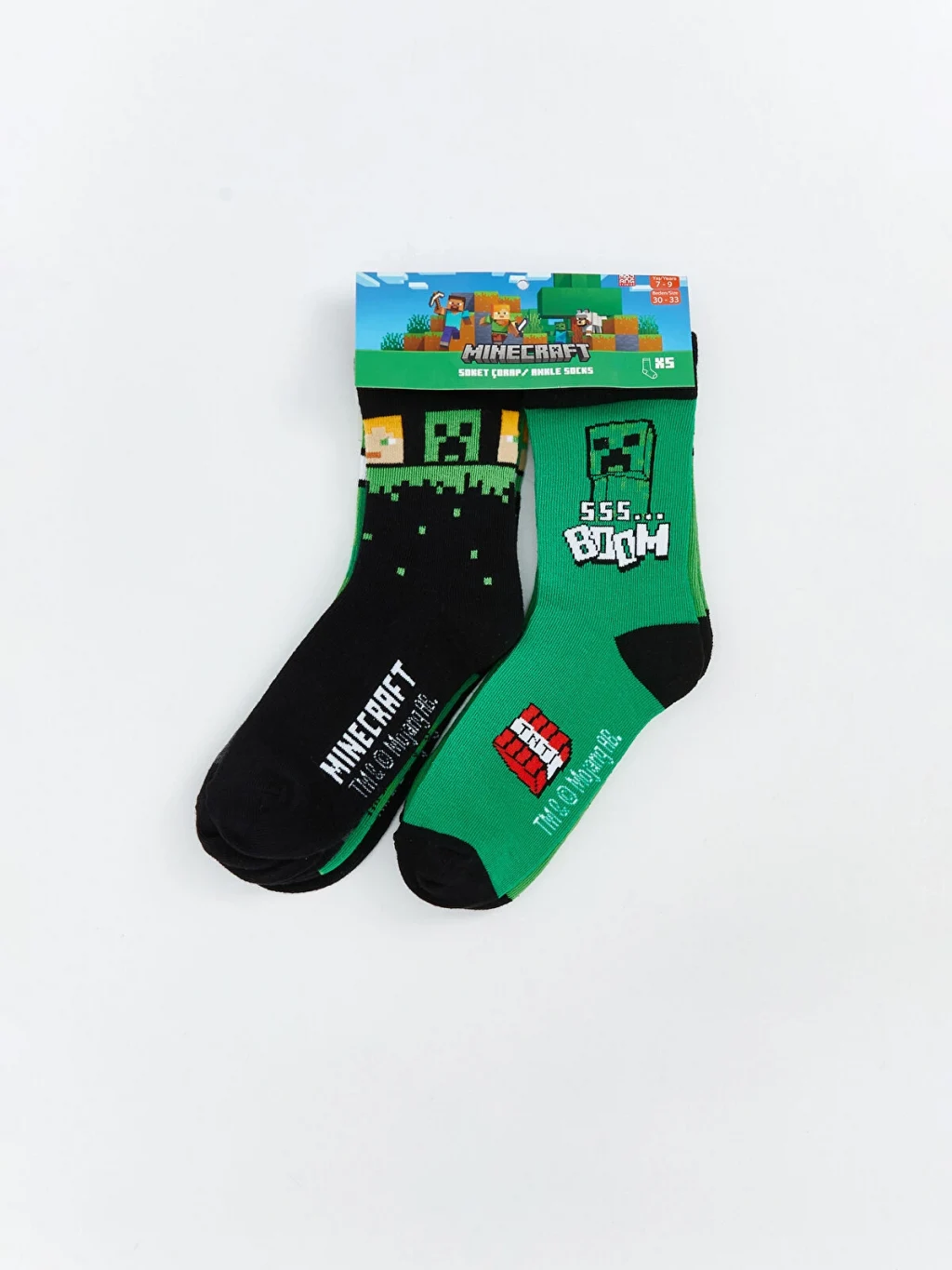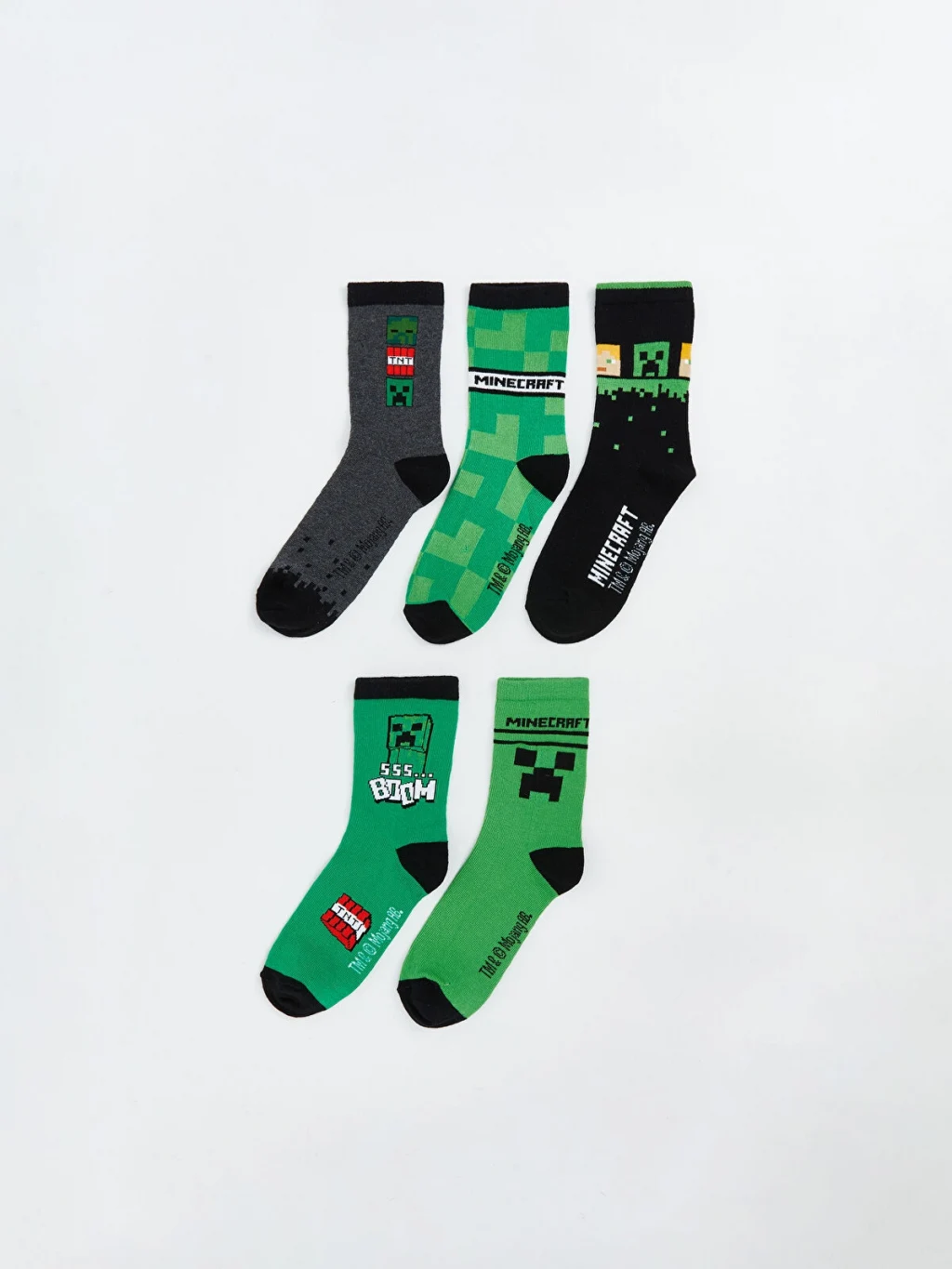 Beş çiftten oluşan erkek çocuk soket çorap seti, farklı baskılara sahip modeller içermektedir.