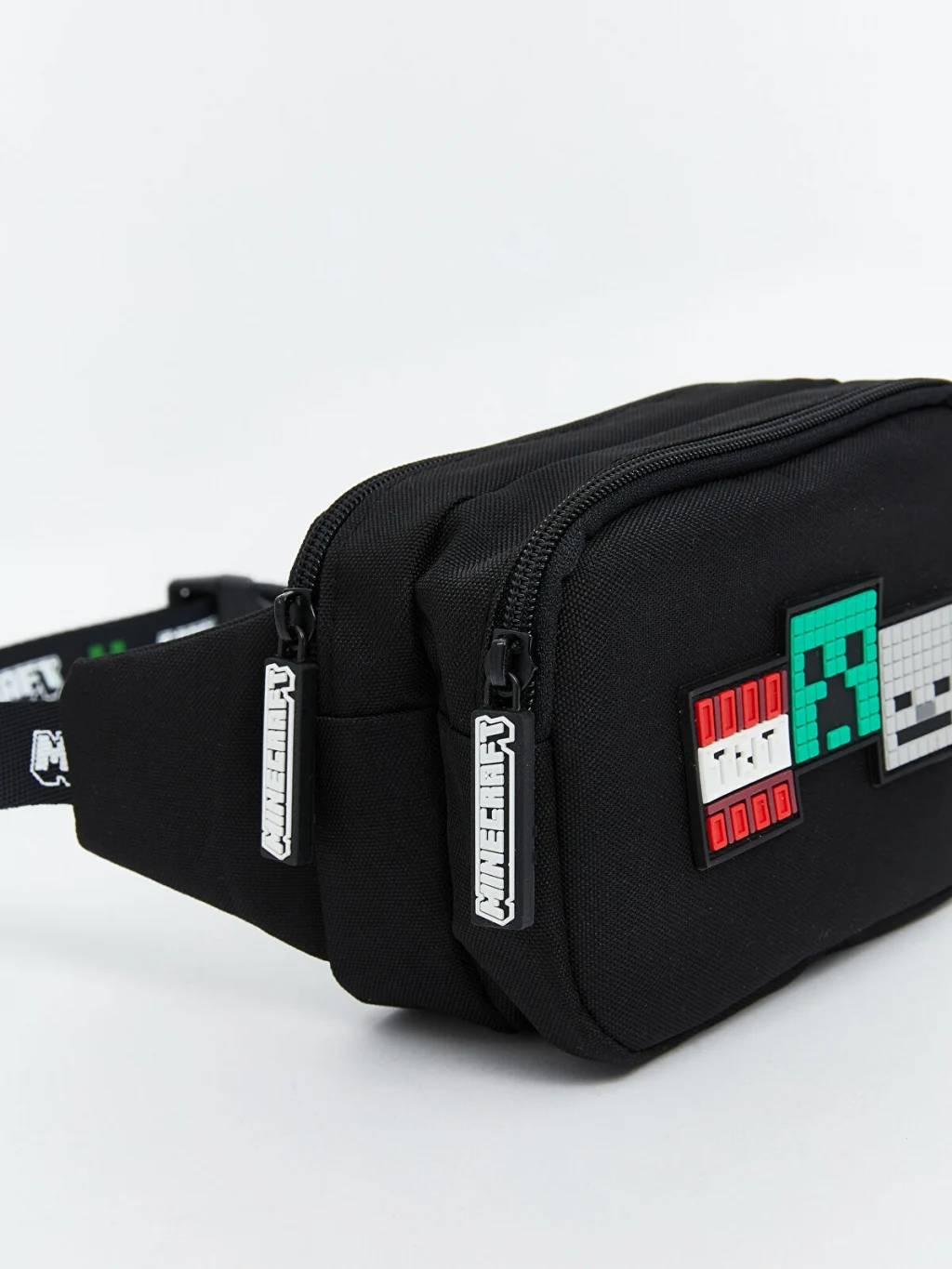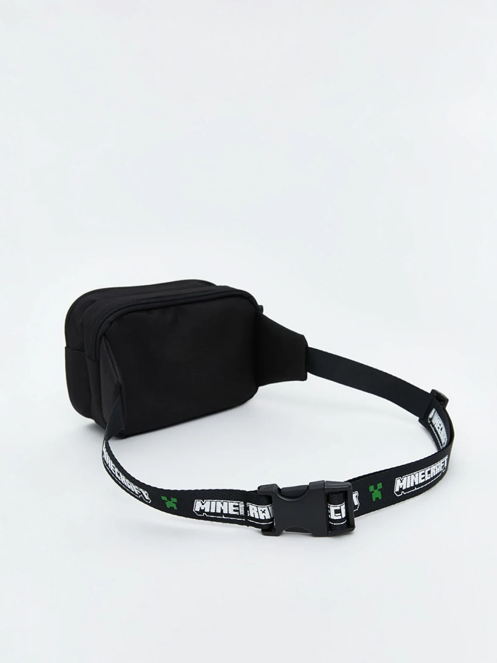 Erkek çocuk bel çantası, Minecraft baskılı, fermuarlı ana bölmeli ve ayarlanabilir kemerli tasarıma sahiptir.