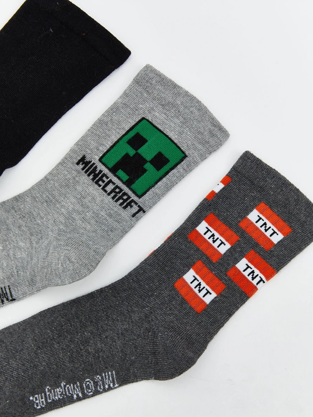 Pamuk karışımlı dokusuyla gün boyu rahatlık sunan Minecraft temalı 5'li çorap seti, çocukların favori karakterlerini eğlenceli bir şekilde ayaklarına taşır.