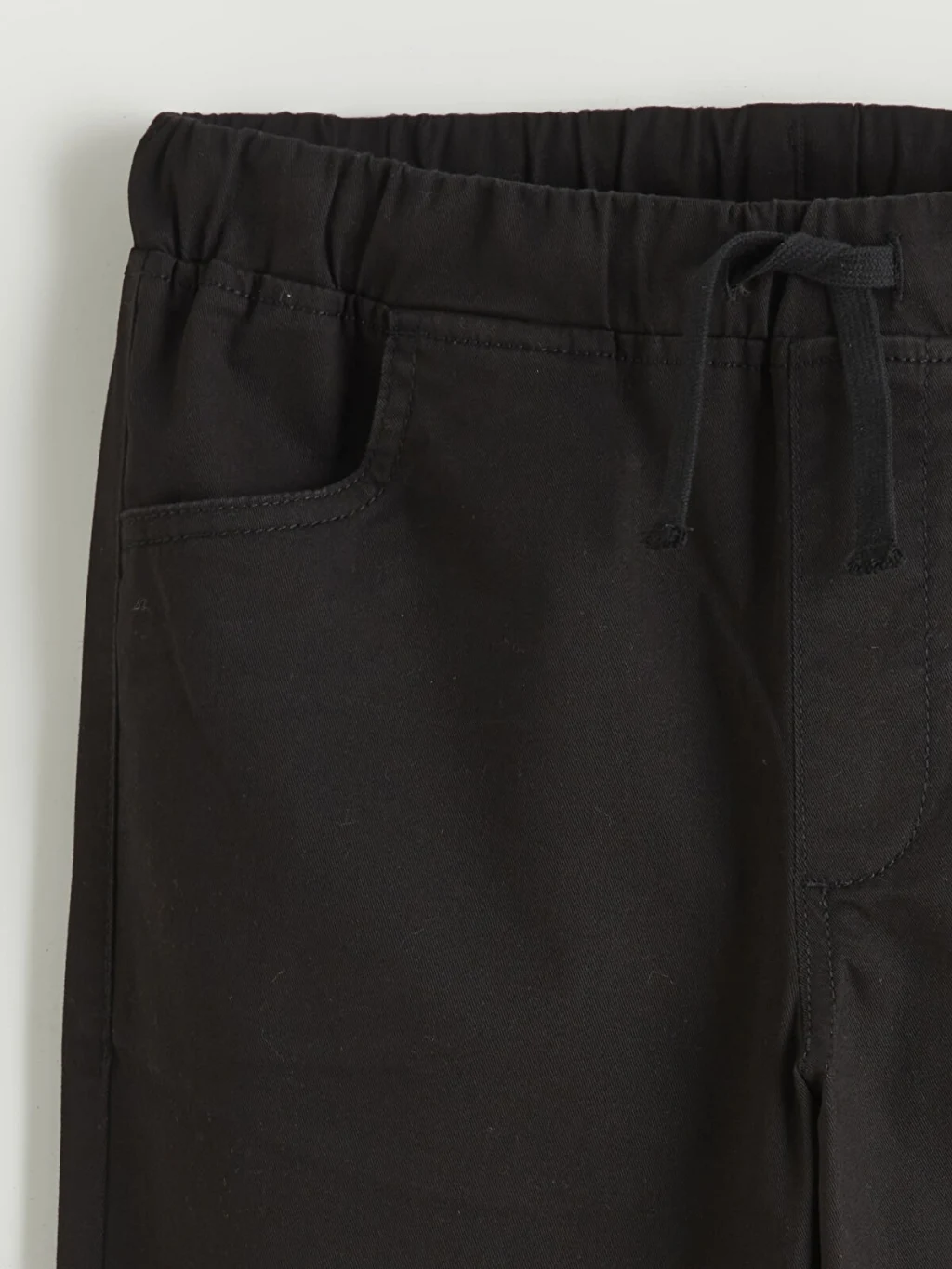 Yüksek pamuk içeren gabardin kumaştan üretilmiş erkek çocuk pantolon, Slim fit kesimlidir. Cepli, beli lastikli ve ayarlanabilir bağcıklıdır.