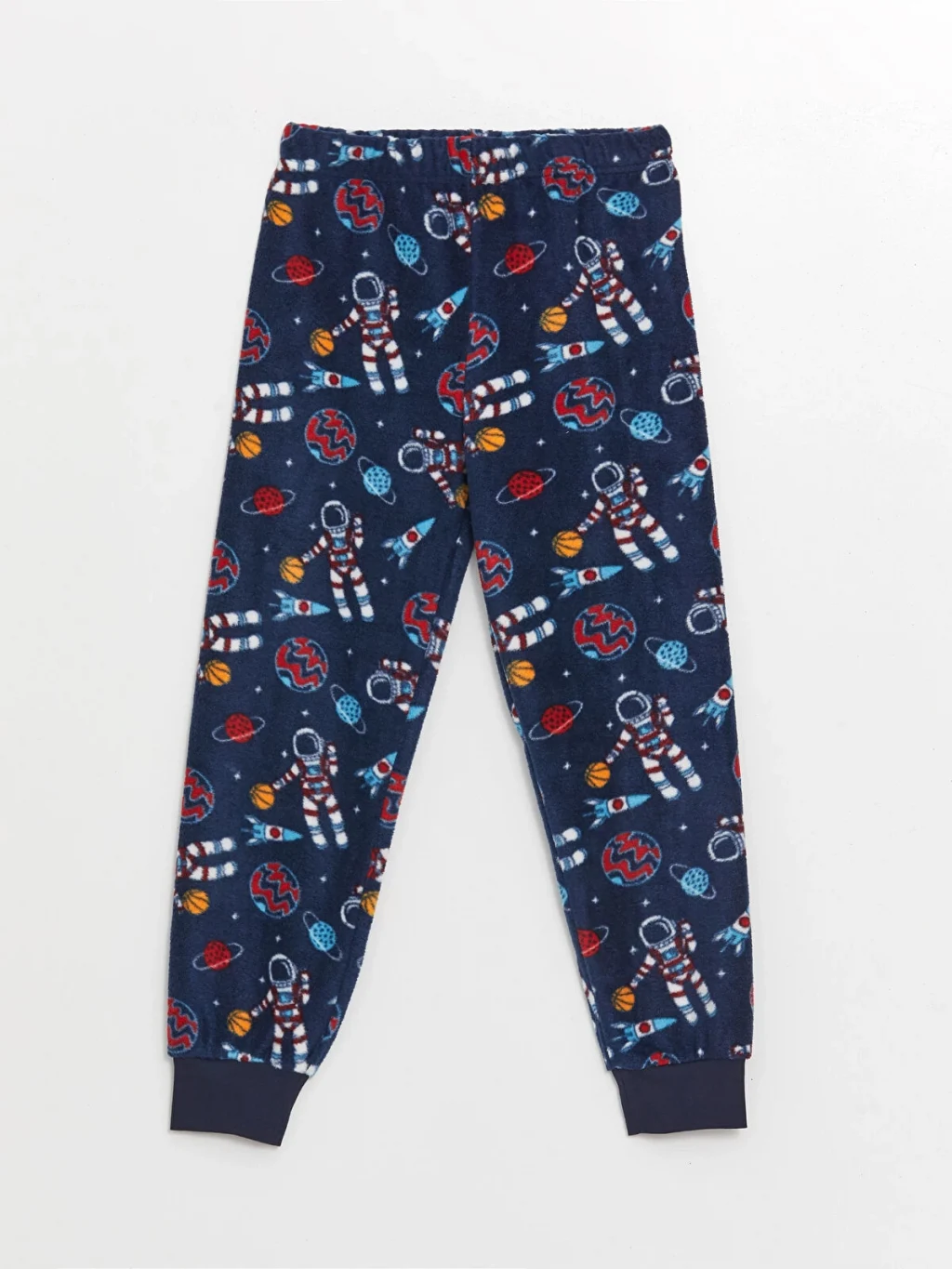 Sıcak ve rahat bir uyku için ideal olan polar kumaştan üretilmiş erkek çocuk pijama takımı, paçaları ribanalı detayıyla konforlu bir oturuş sağlar. Çocuğunuza keyifli bir uyku sunar.