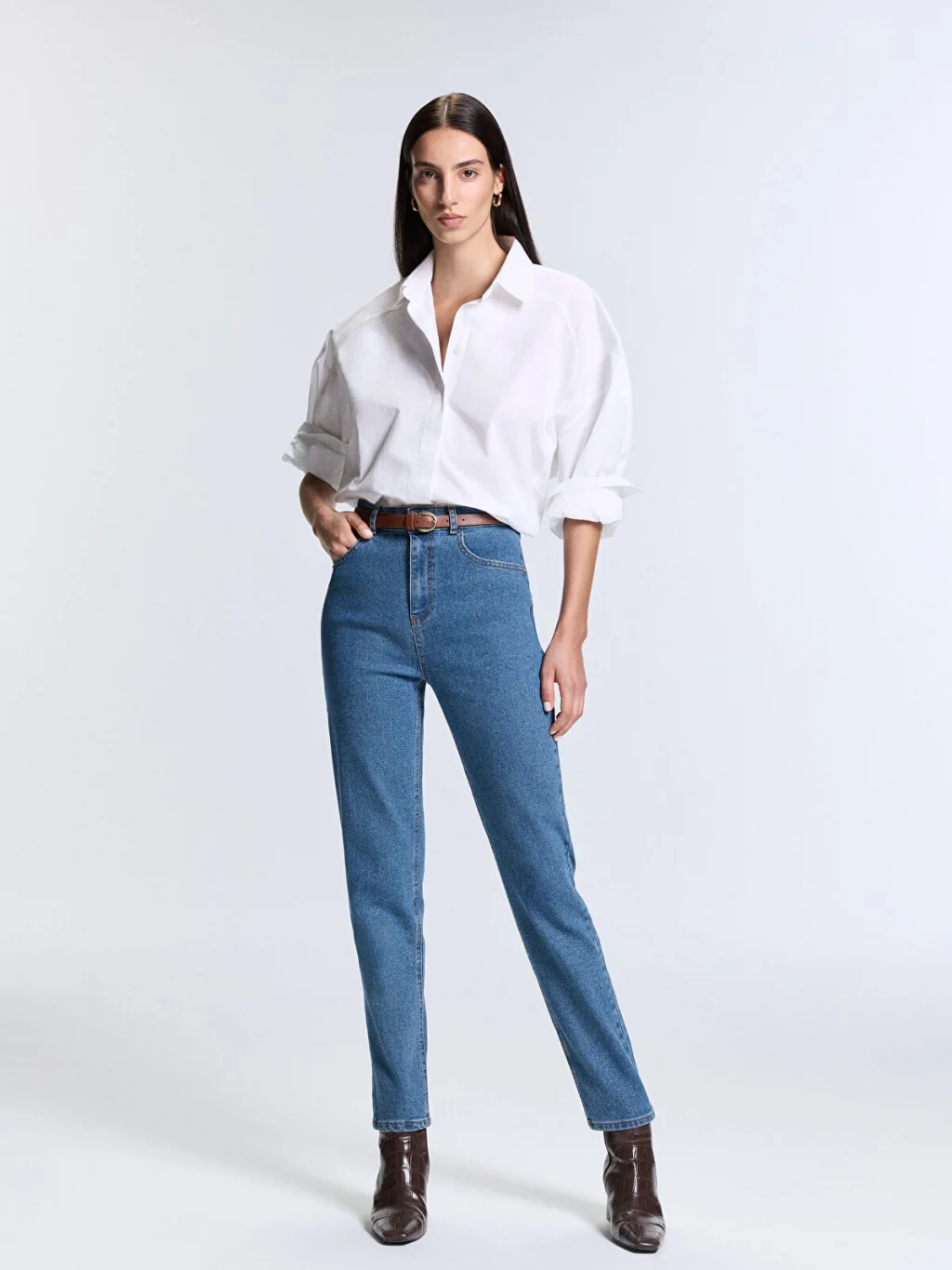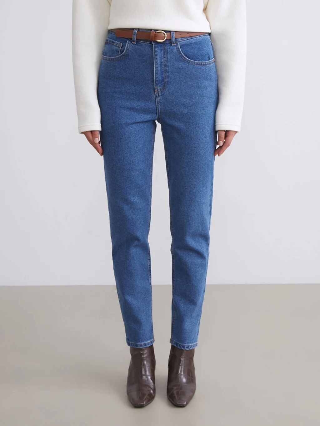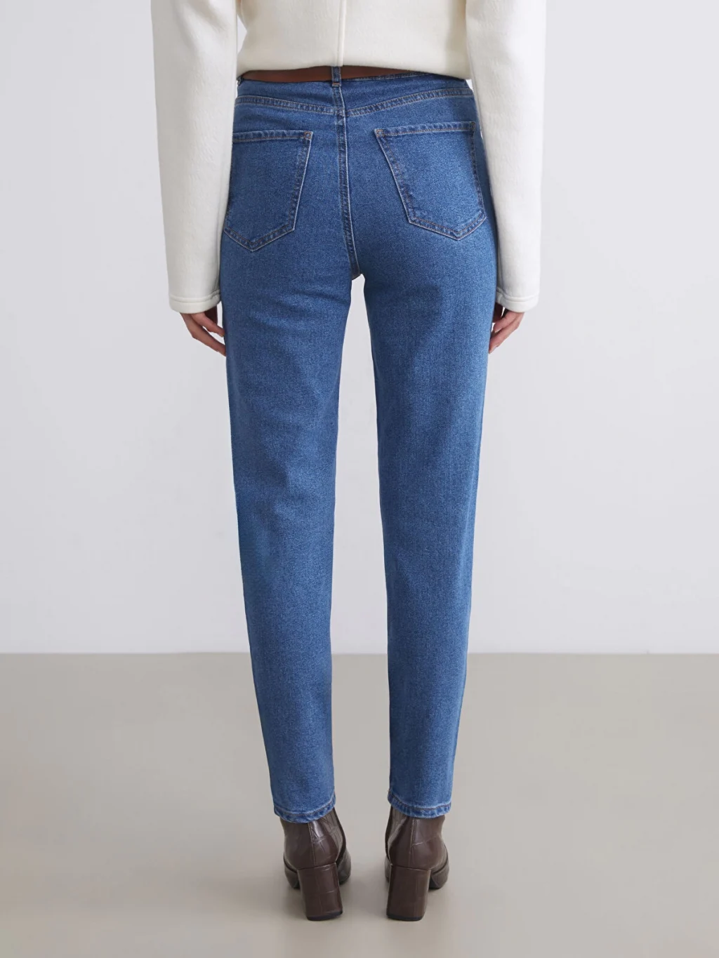 Mom fit; belden bileğe kadar daralarak iner ve basen bölgesi rahat bir kesime sahiptir. 90'ların modasını günümüze taşıyan tasarımıyla gün boyu rahatlık ve hareket özgürlüğü sağlar.