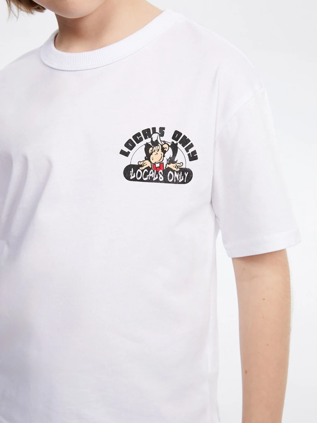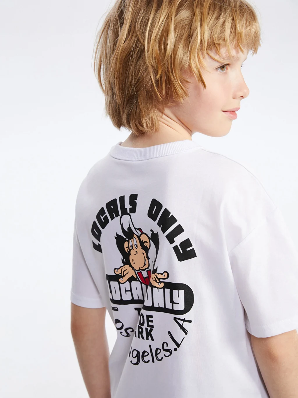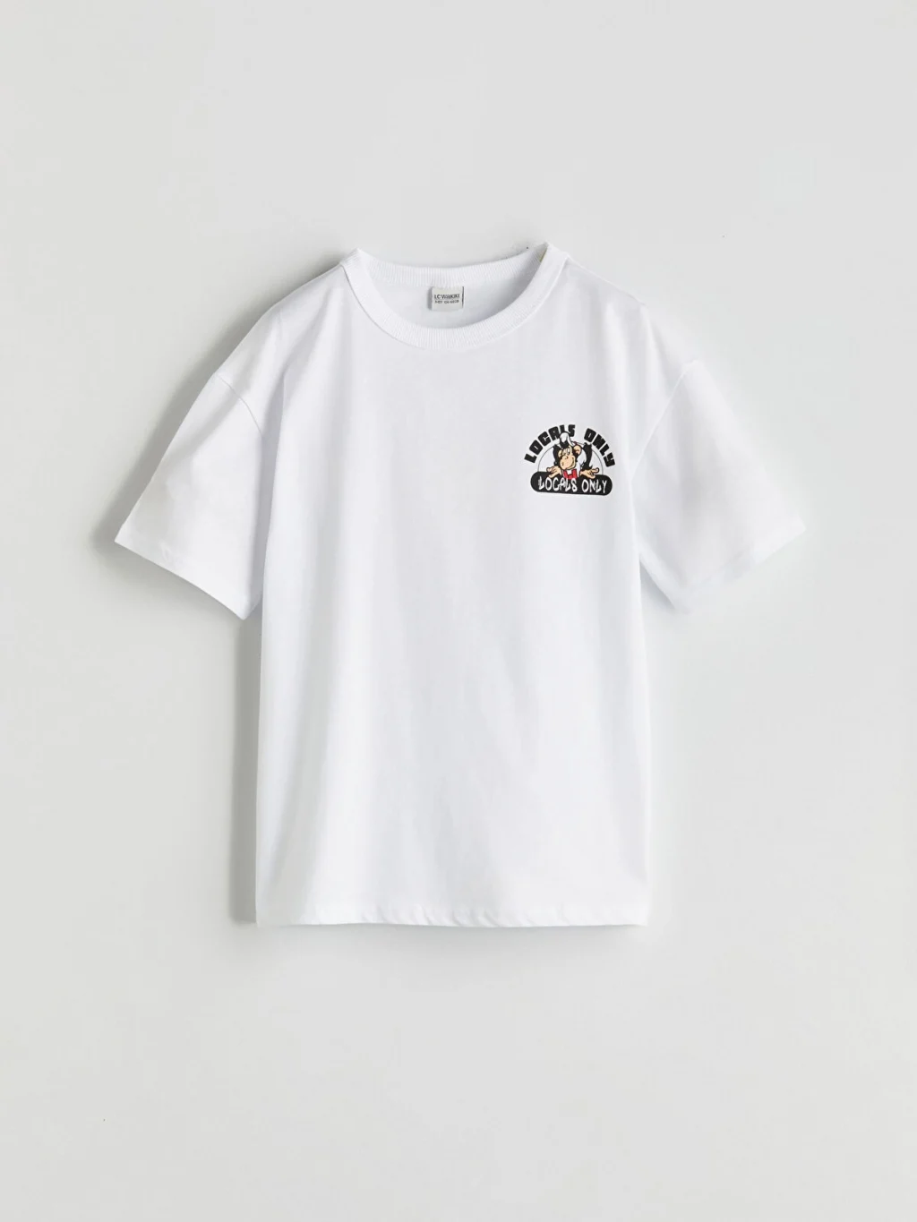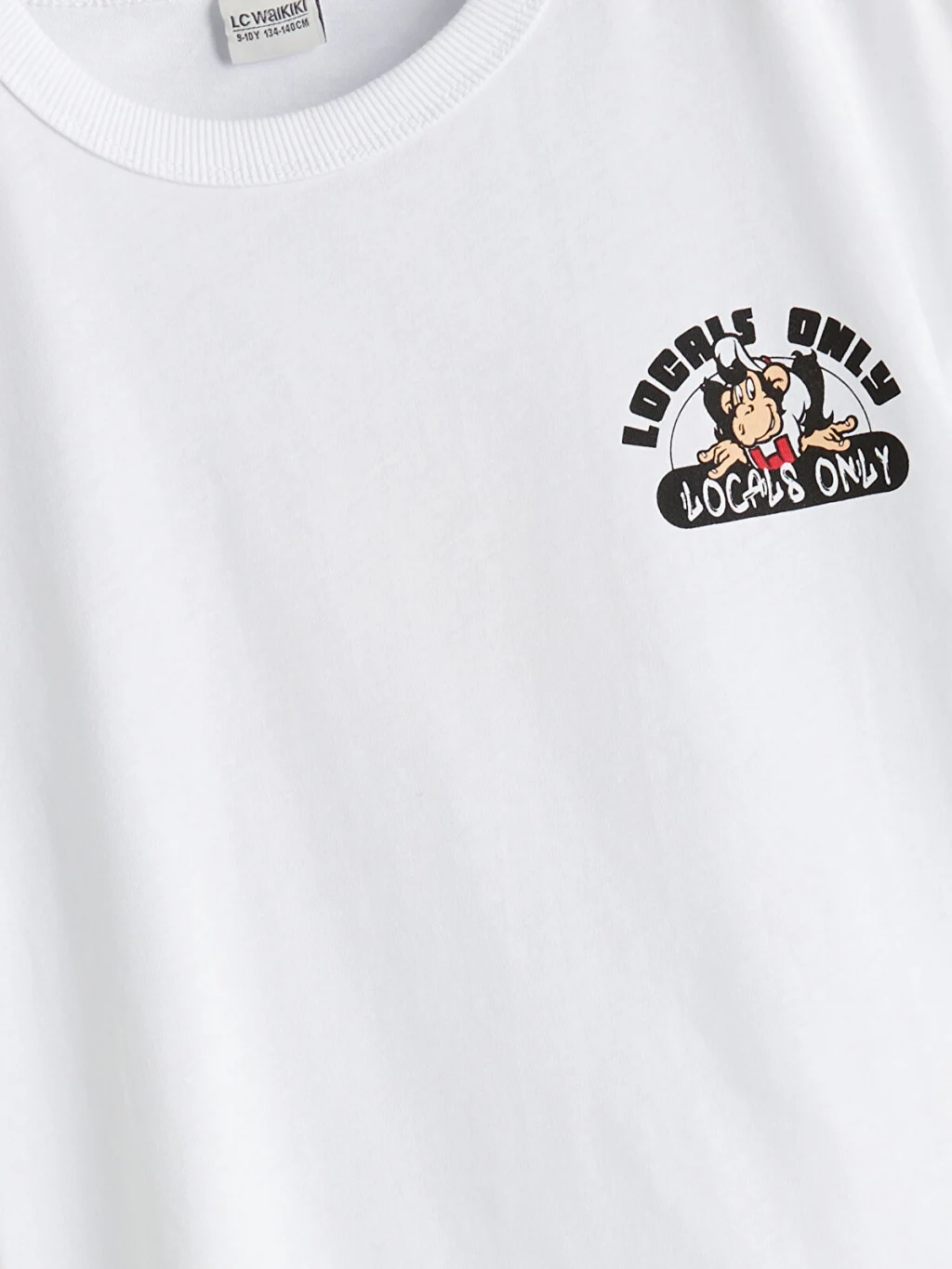 Standart kalıp çocuk tişört, %100 pamuklu penye kumaştan üretilmiştir. Bisiklet yakalı, kısa kollu ve sırtı baskılıdır.
