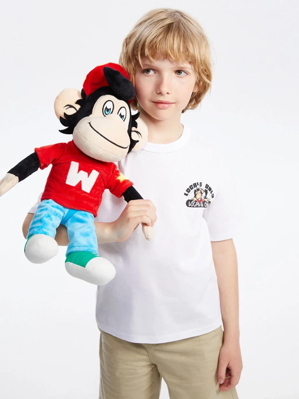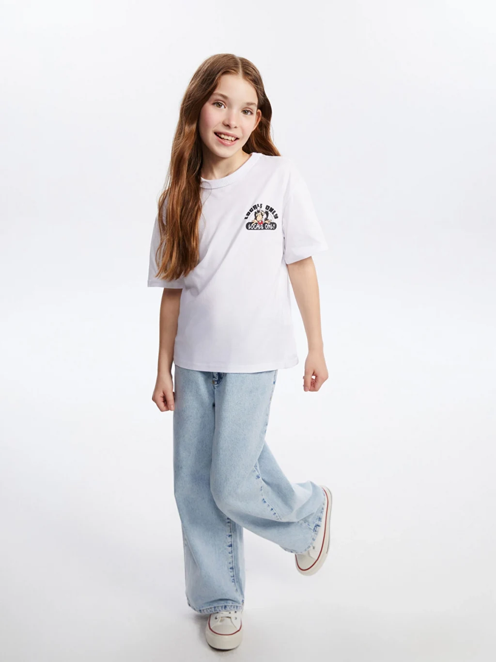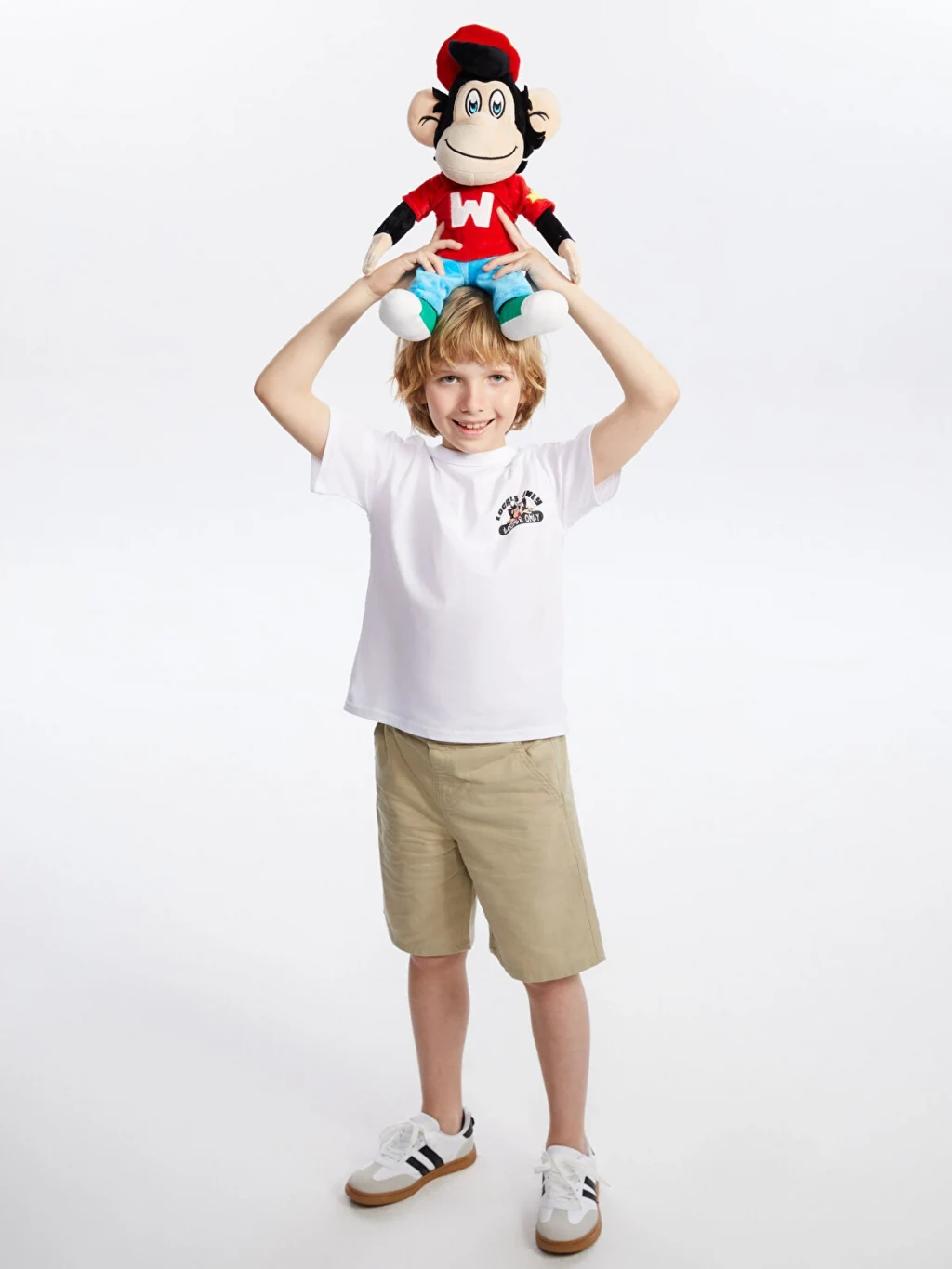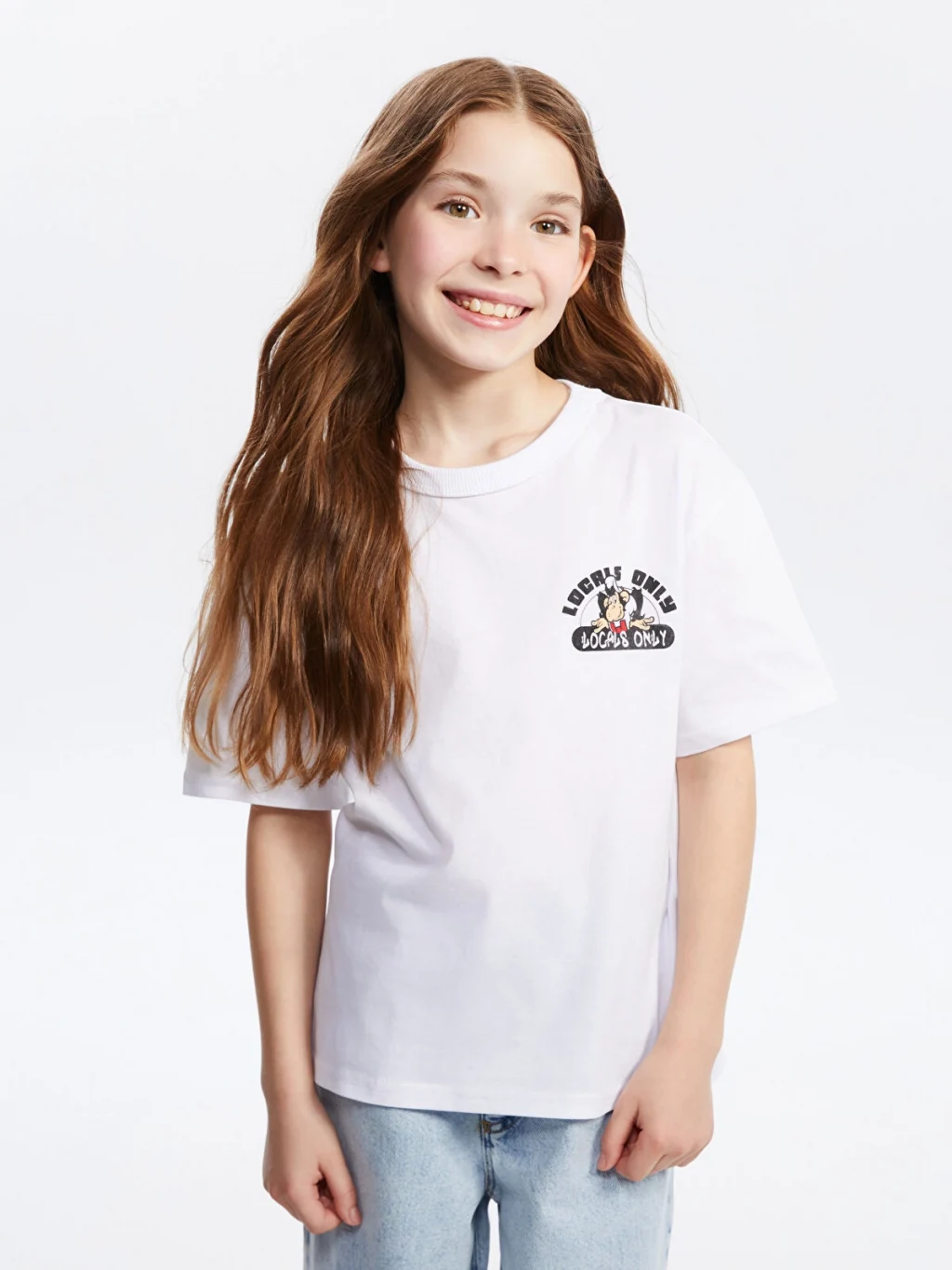 Standart kalıp çocuk tişört, %100 pamuklu penye kumaştan üretilmiştir. Bisiklet yakalı, kısa kollu ve sırtı baskılıdır.