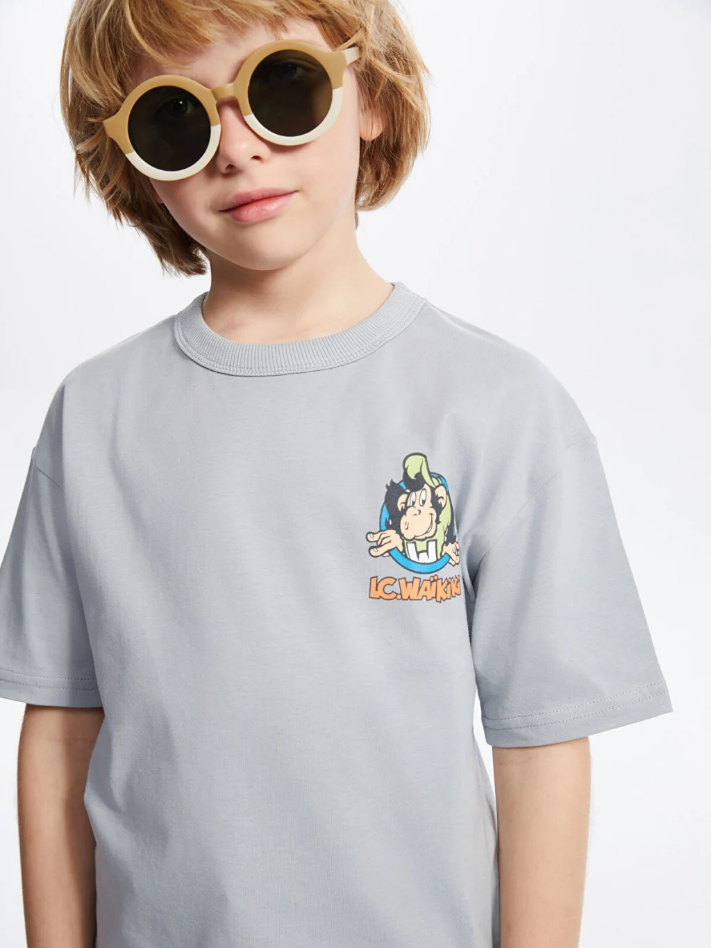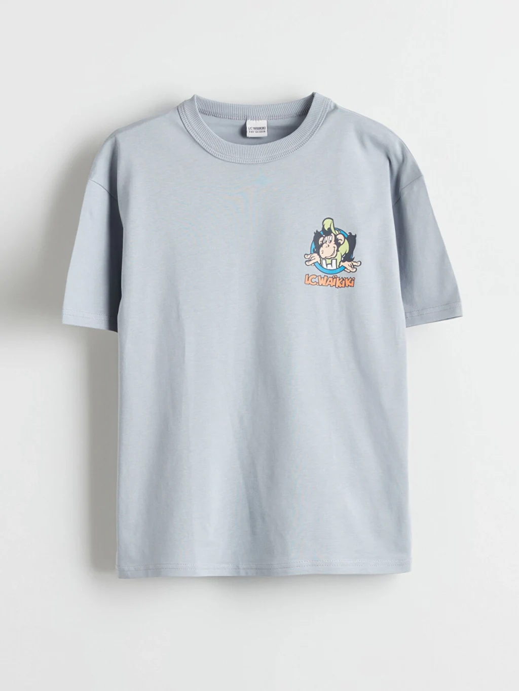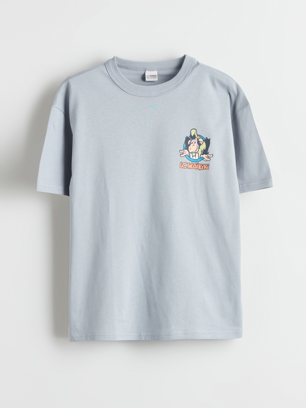 Standart kalıp erkek çocuk tişört, %100 pamuklu penye kumaştan üretilmiştir. Bisiklet yaka, kısa kollu ve sırtı baskılıdır.