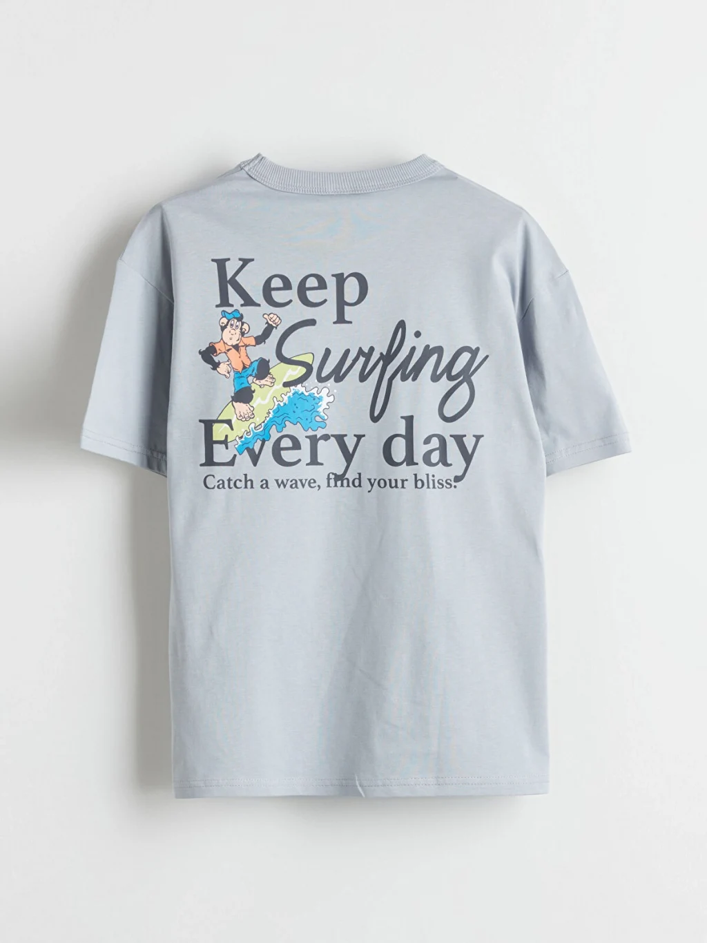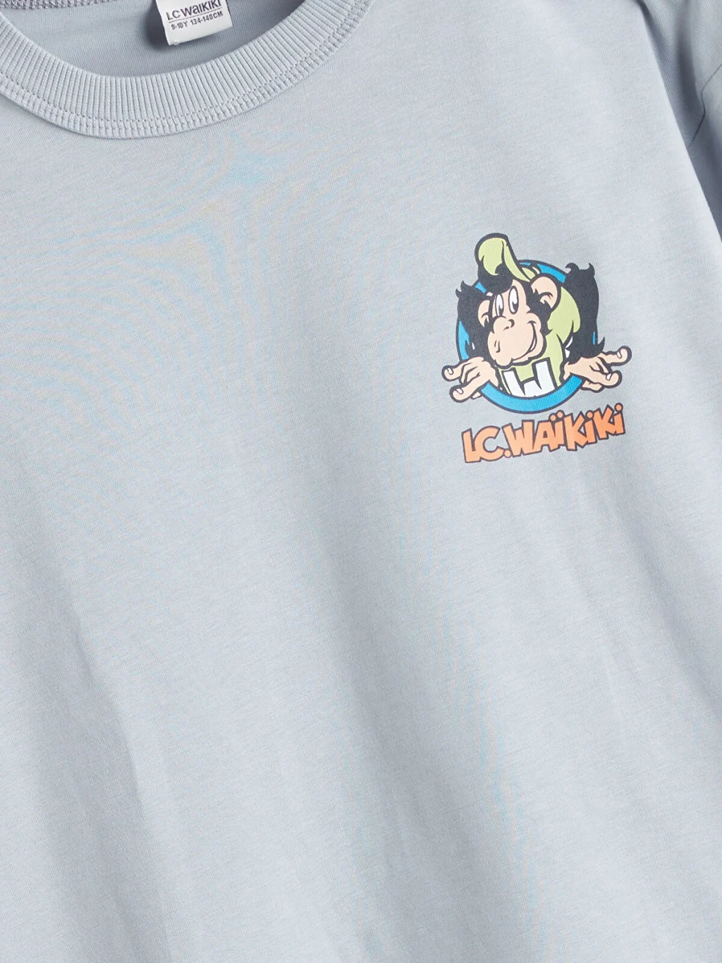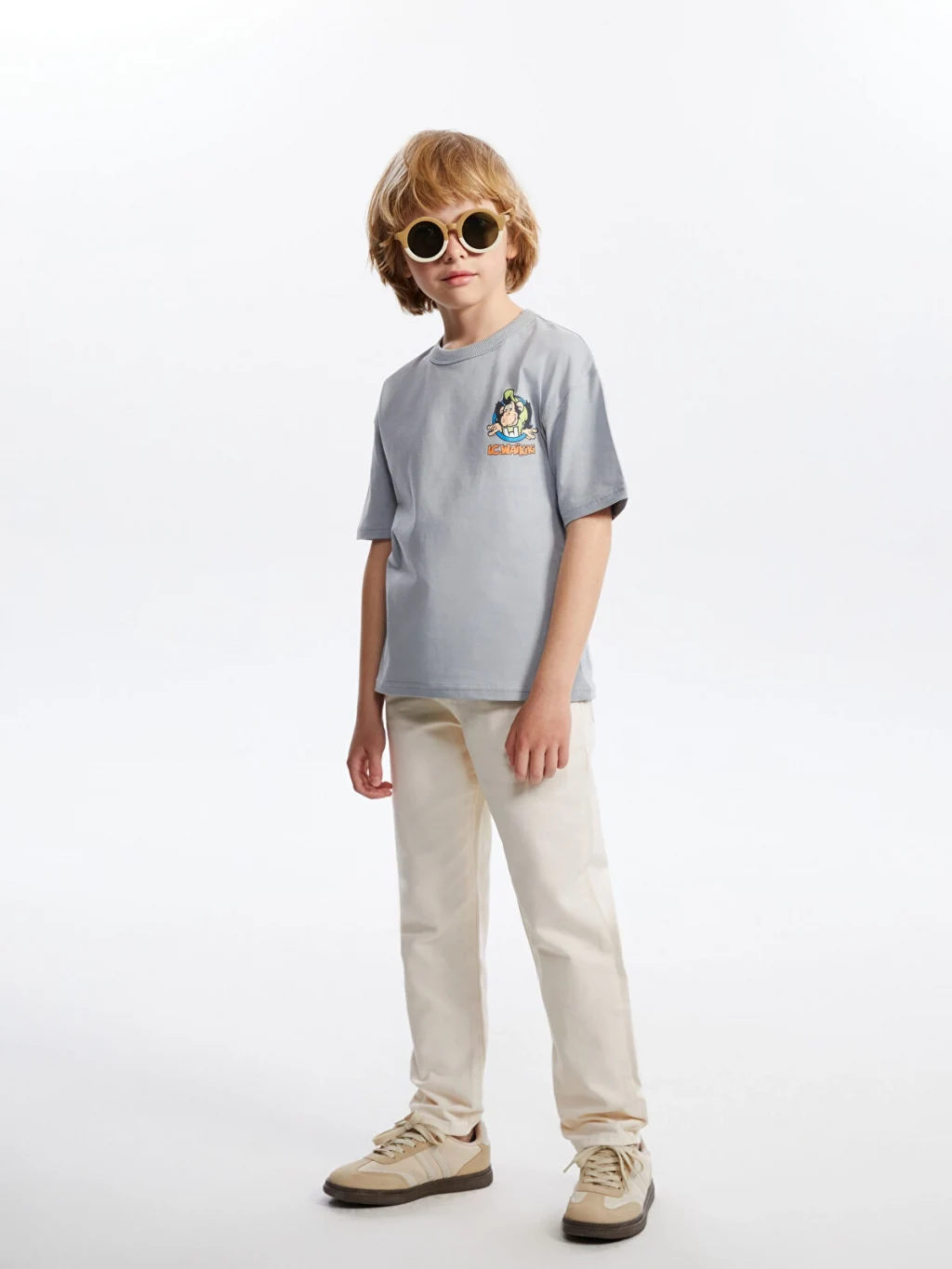 Standart kalıp erkek çocuk tişört, %100 pamuklu penye kumaştan üretilmiştir. Bisiklet yaka, kısa kollu ve sırtı baskılıdır.