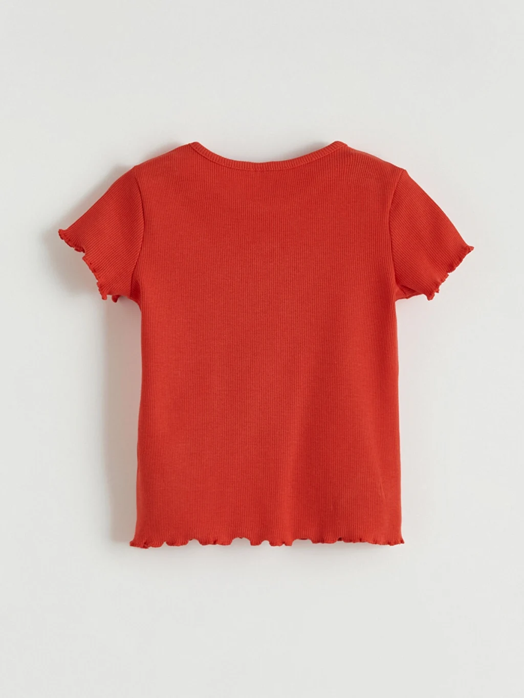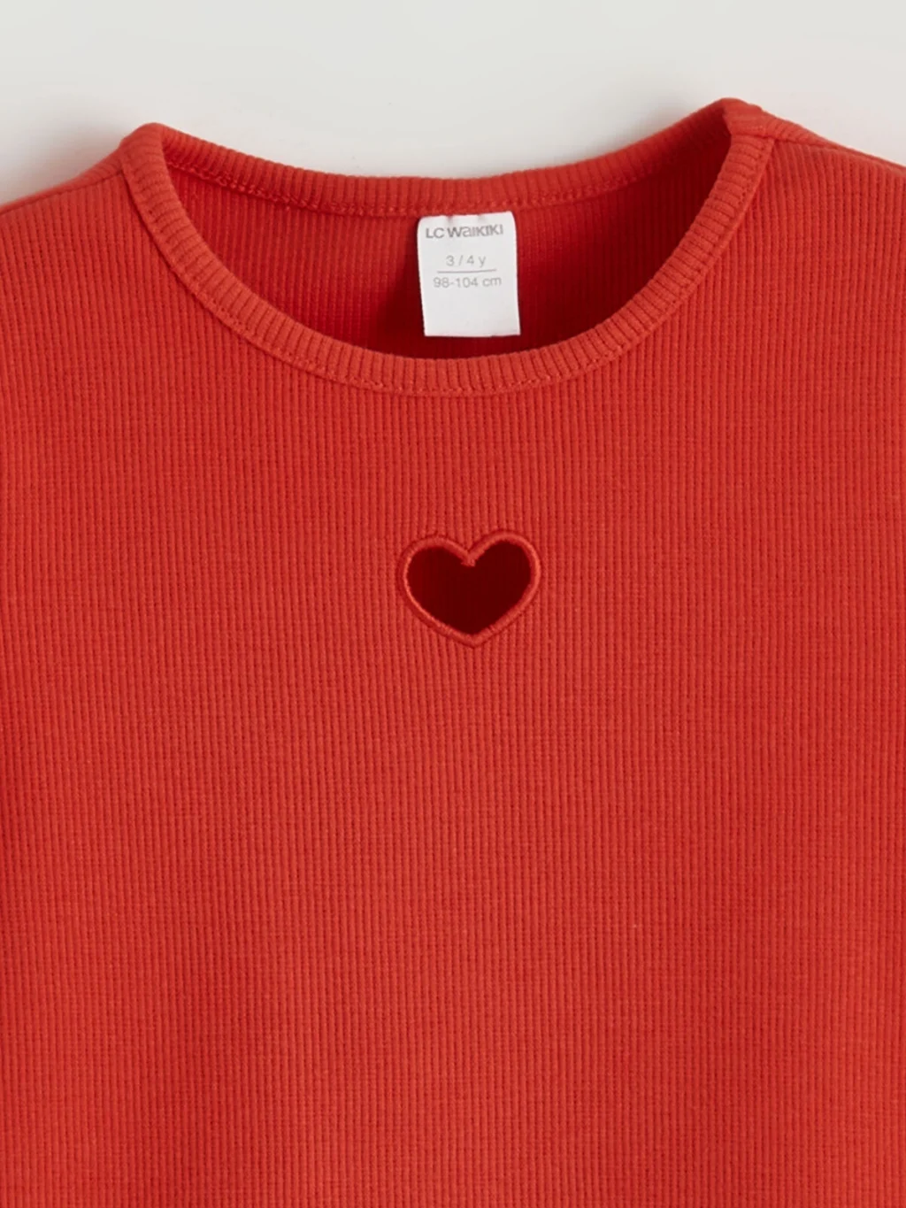Dar kalıp kız çocuk tişört, yüksek pamuk içerikli kaşkorse kumaştandır. Bisiklet yakalı, kısa kolludur. Önünde kalp pencereli, kol ve etek uçları fırfırlıdır.