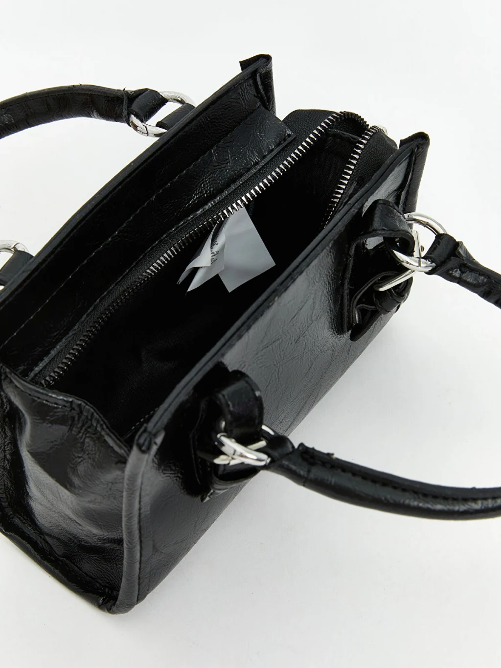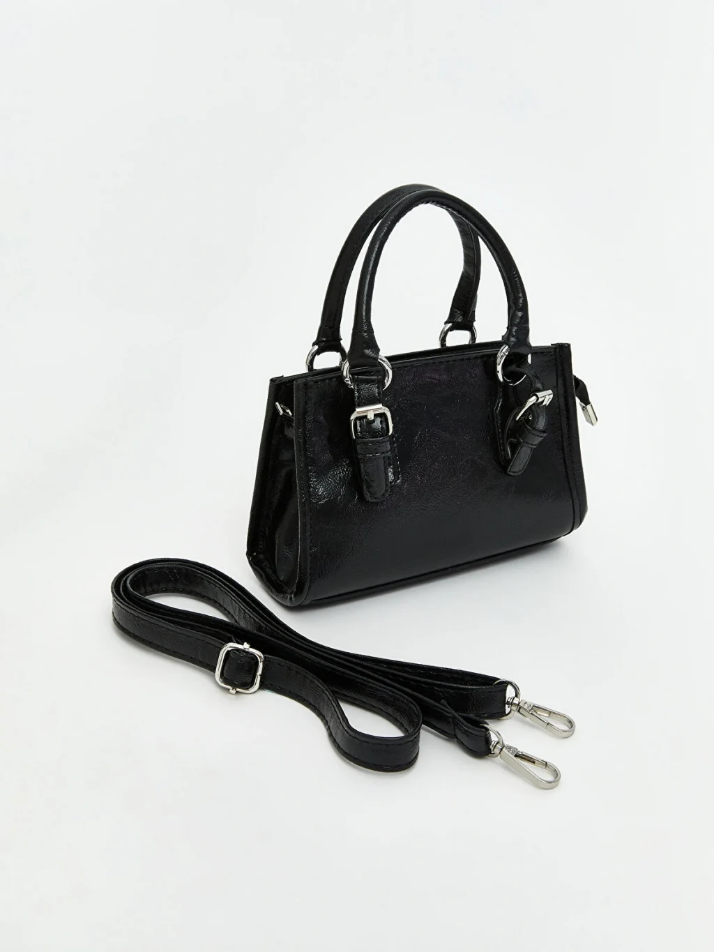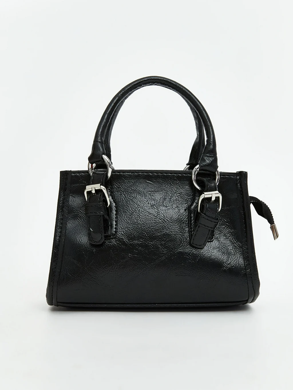Kadın omuz çantası, çift taşıma saplı ve ayarlanabilir, takılıp çıkarılabilir omuz askılıdır. Toka detaylıdır ve fermuar kapamalıdır.