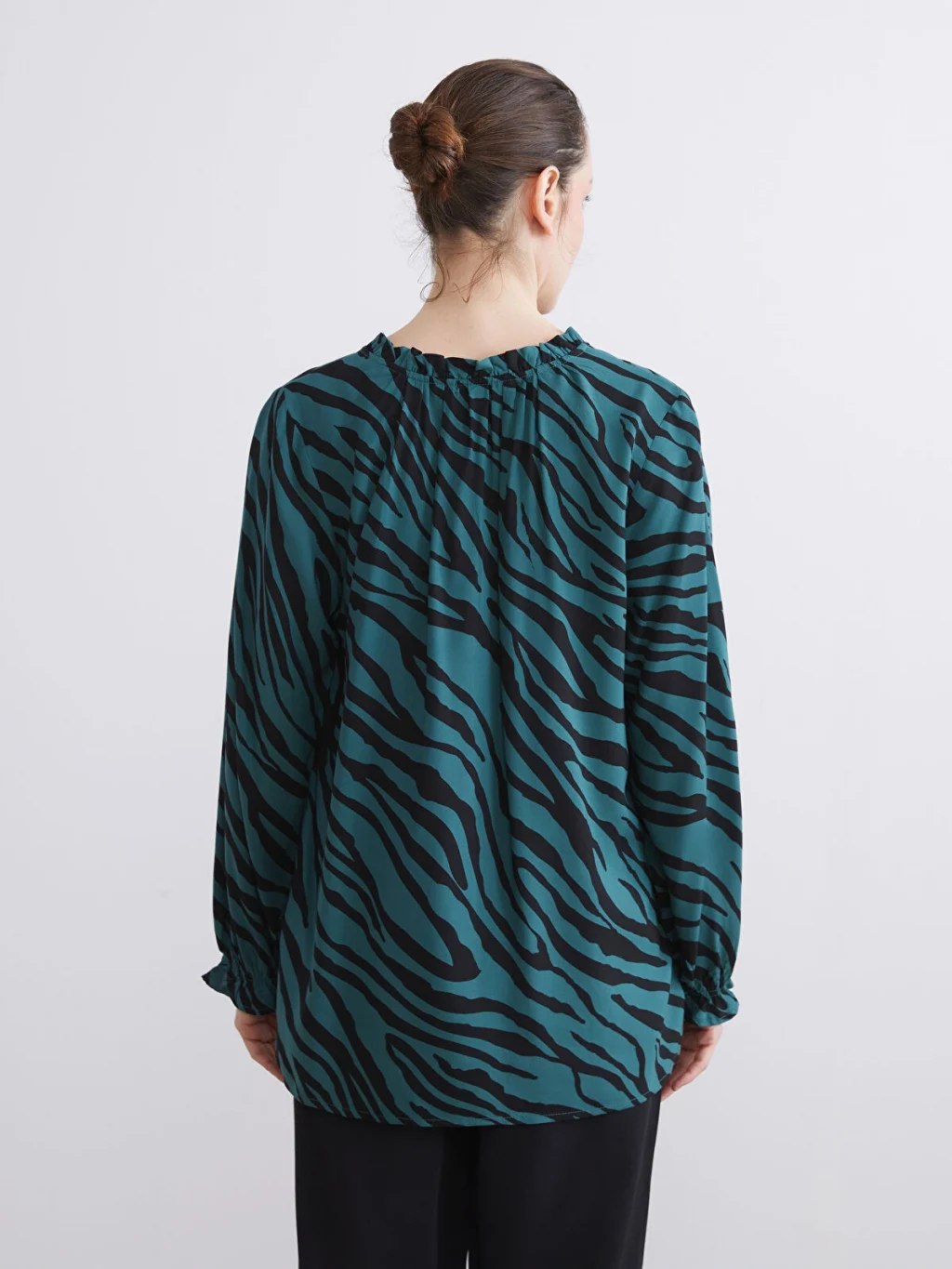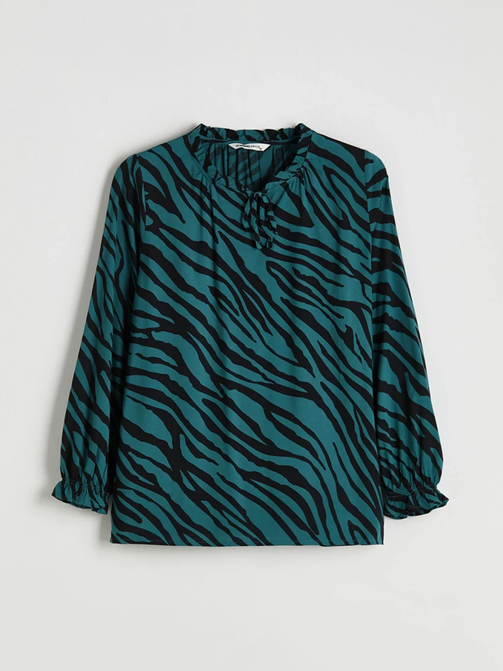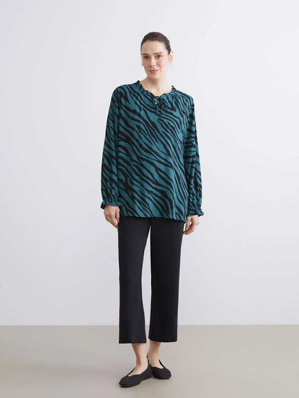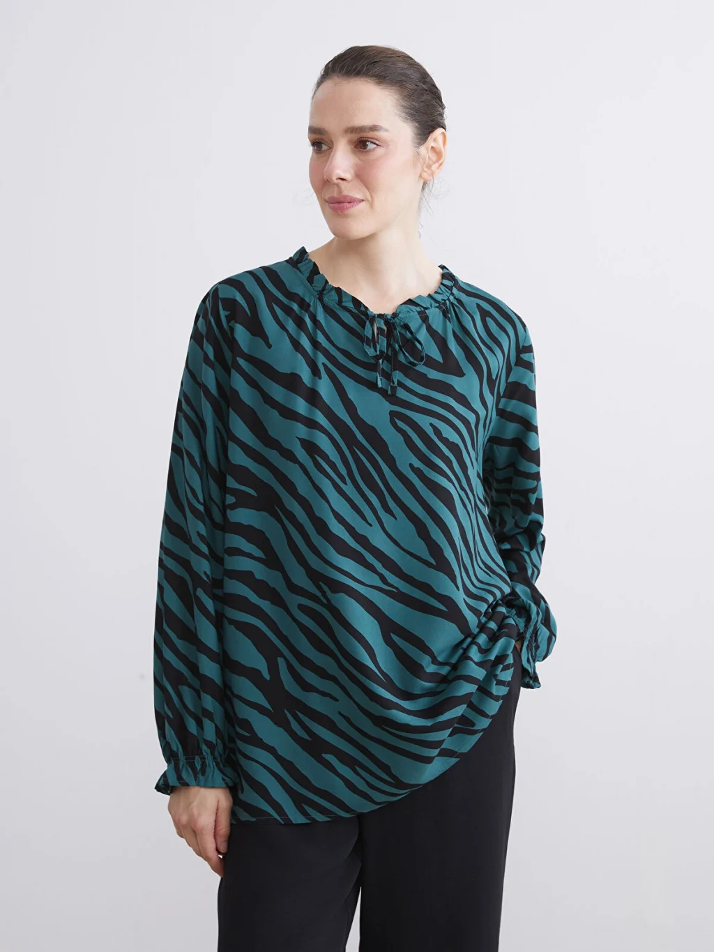 LCW Grace Yeşil Bağlamalı Yaka Desenli Bluz