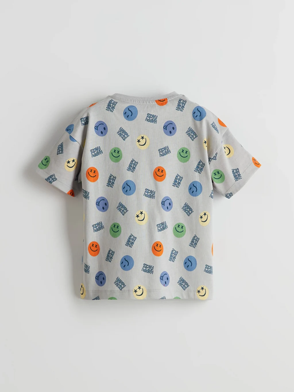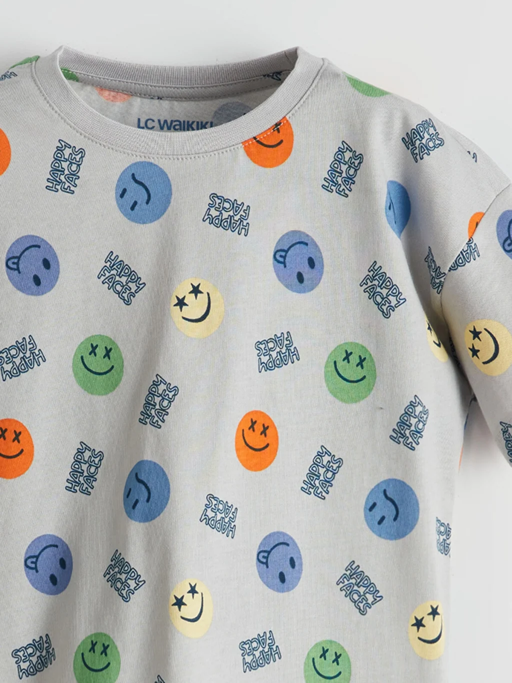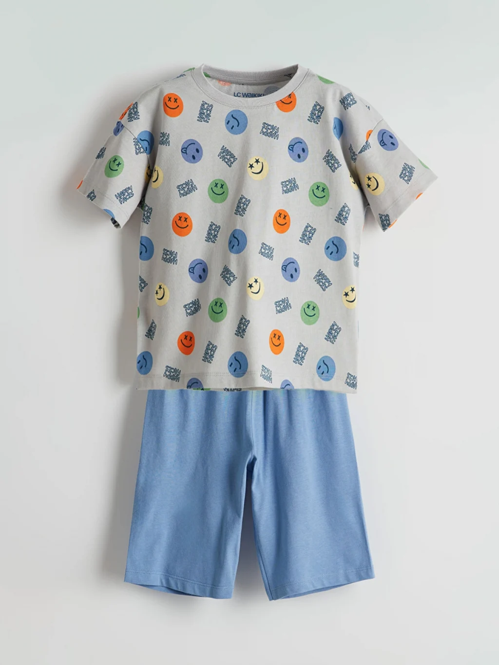 Erkek çocuk pijama takımı, bisiklet yaka ve kısa kollu desenli tişört ile düz şorttan oluşmaktadır.