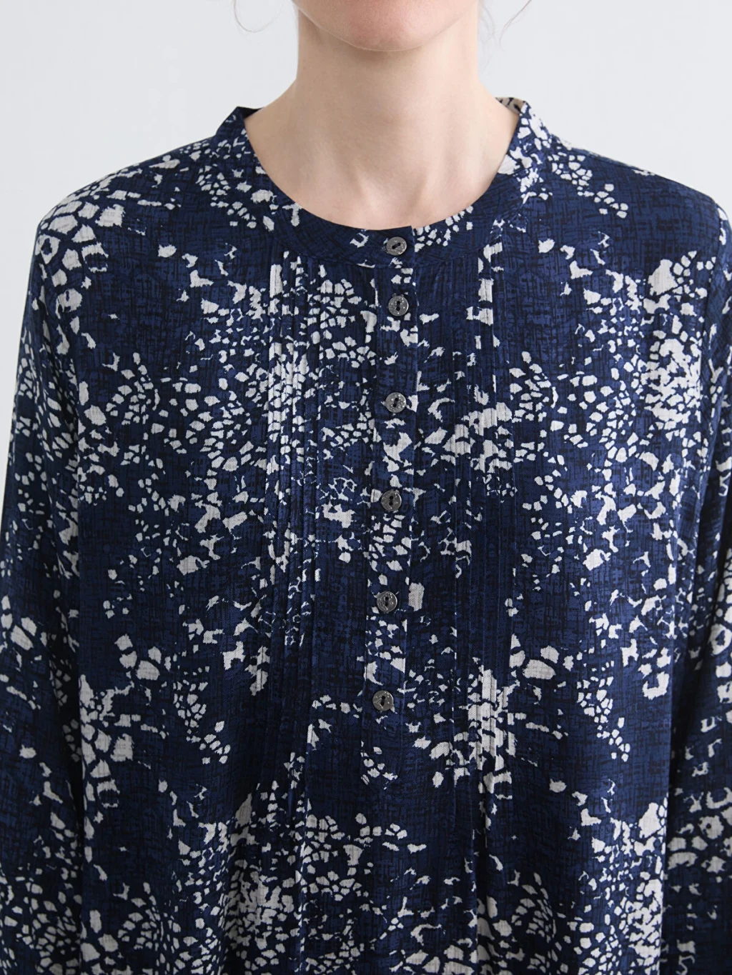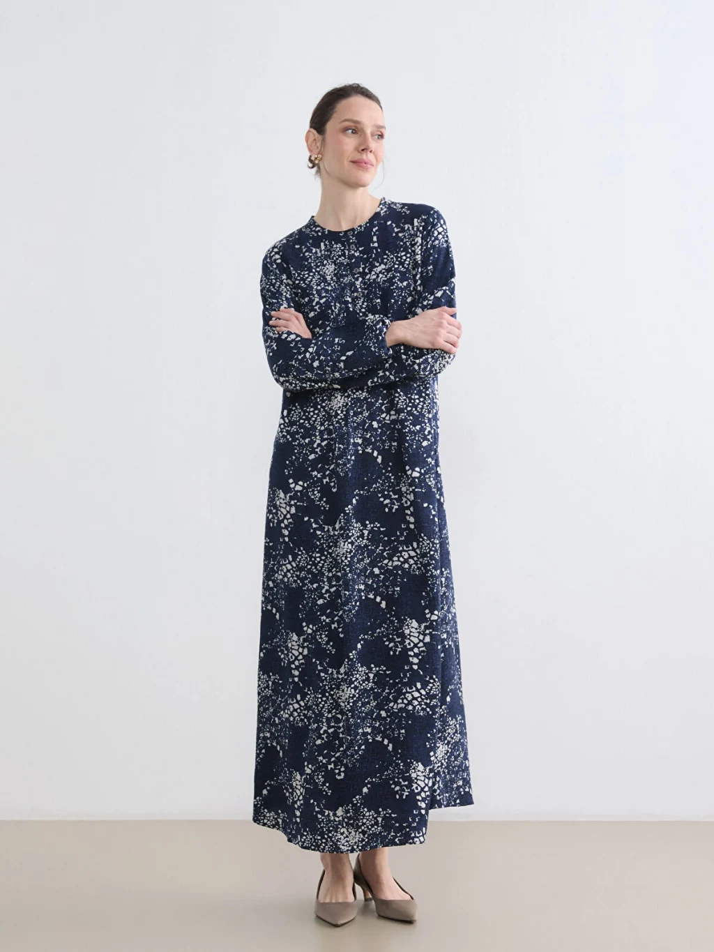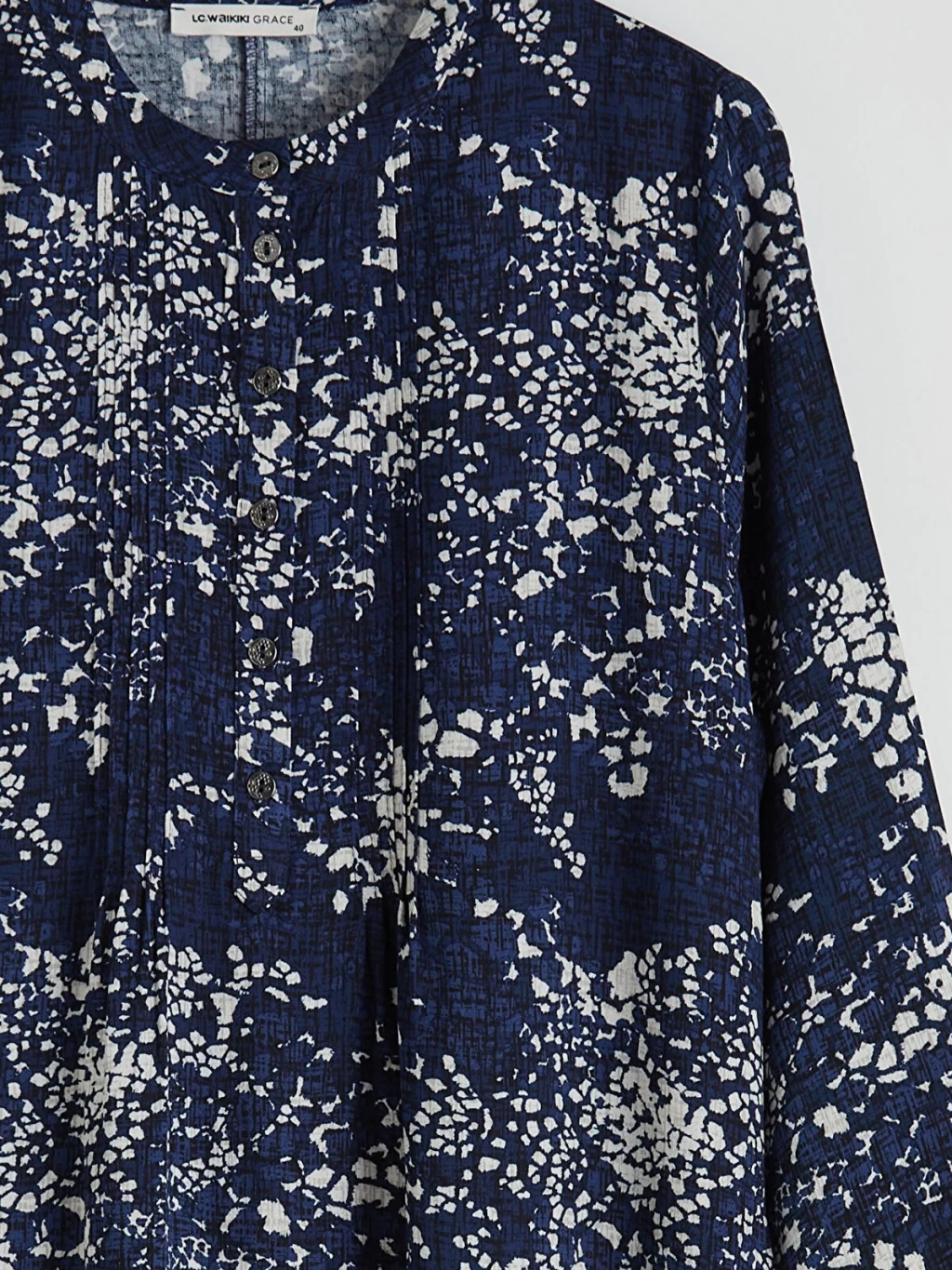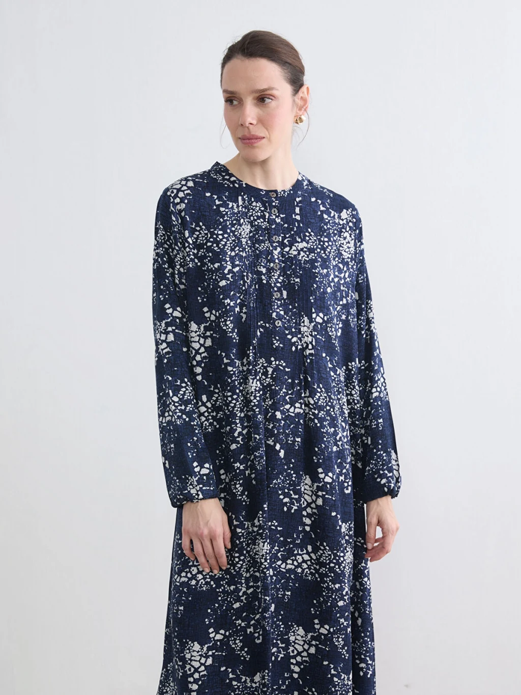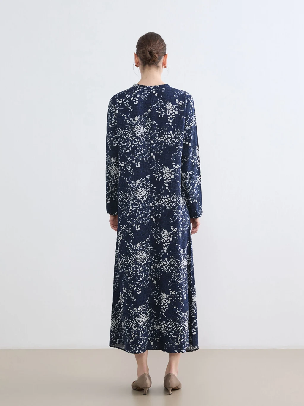 LCW Grace Lacivert Hakim Yaka Desenli Elbise