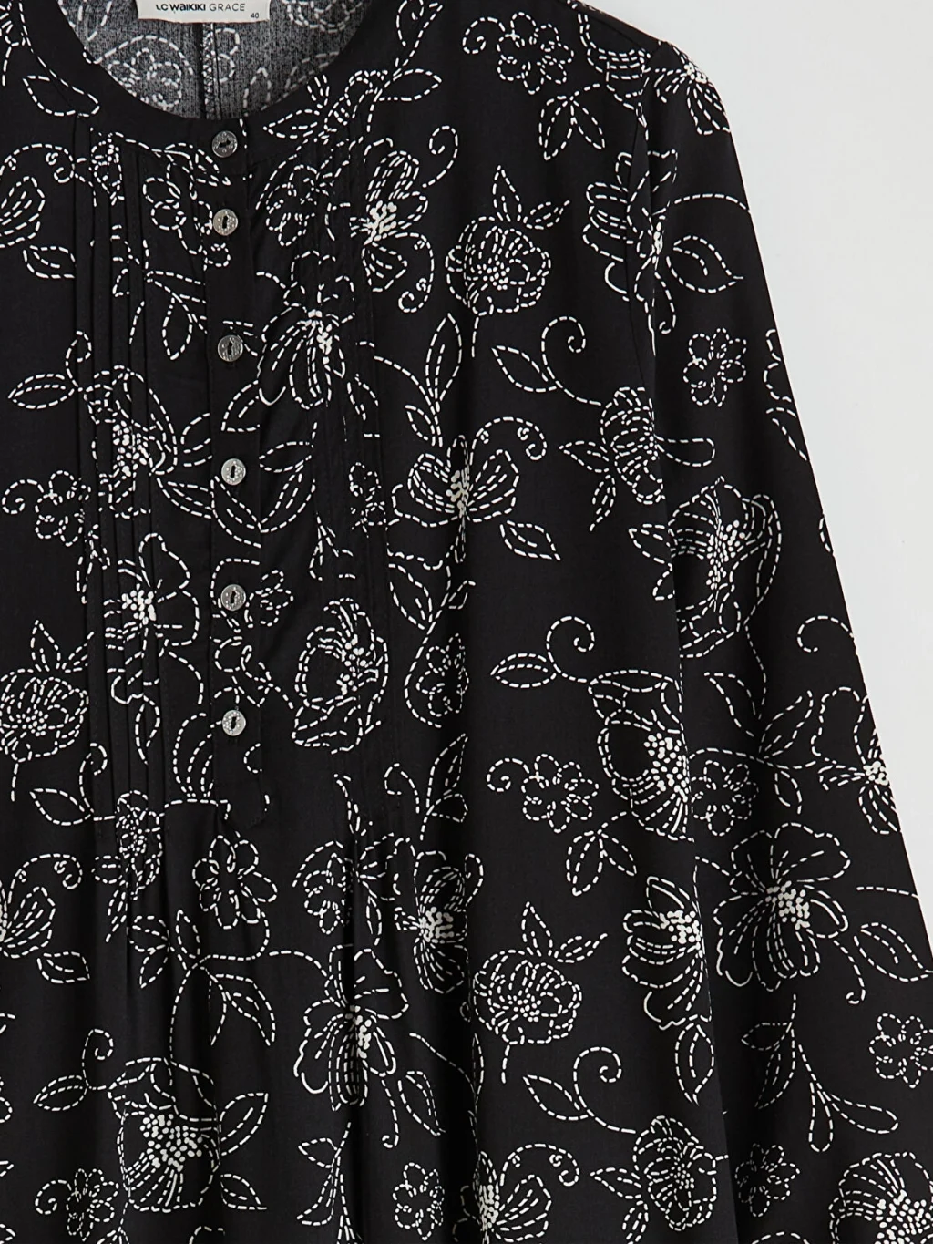LCW Grace Siyah Hakim Yaka Desenli Elbise