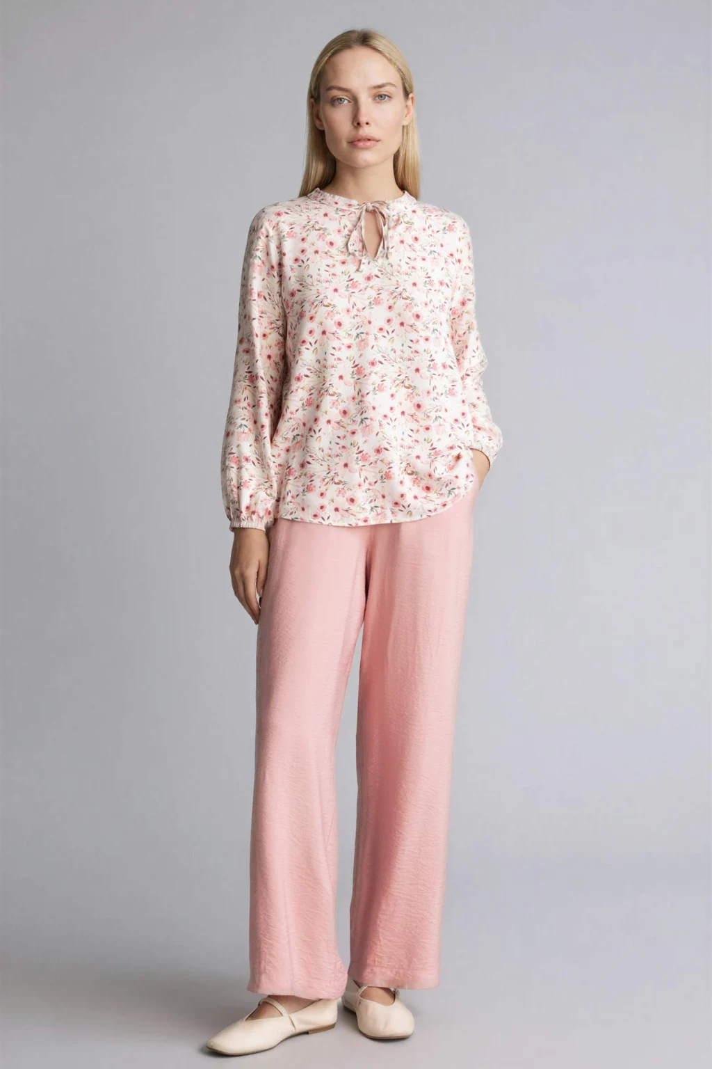 Defacto G9491AXPN74 Pembe Regular Fıt Gömlek Yaka Dokulu Uzun Kollu Bluz