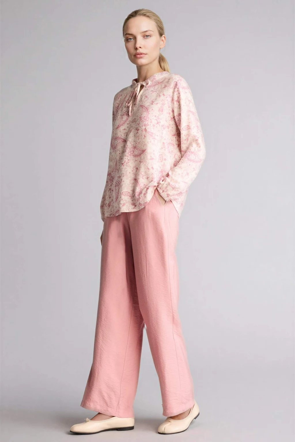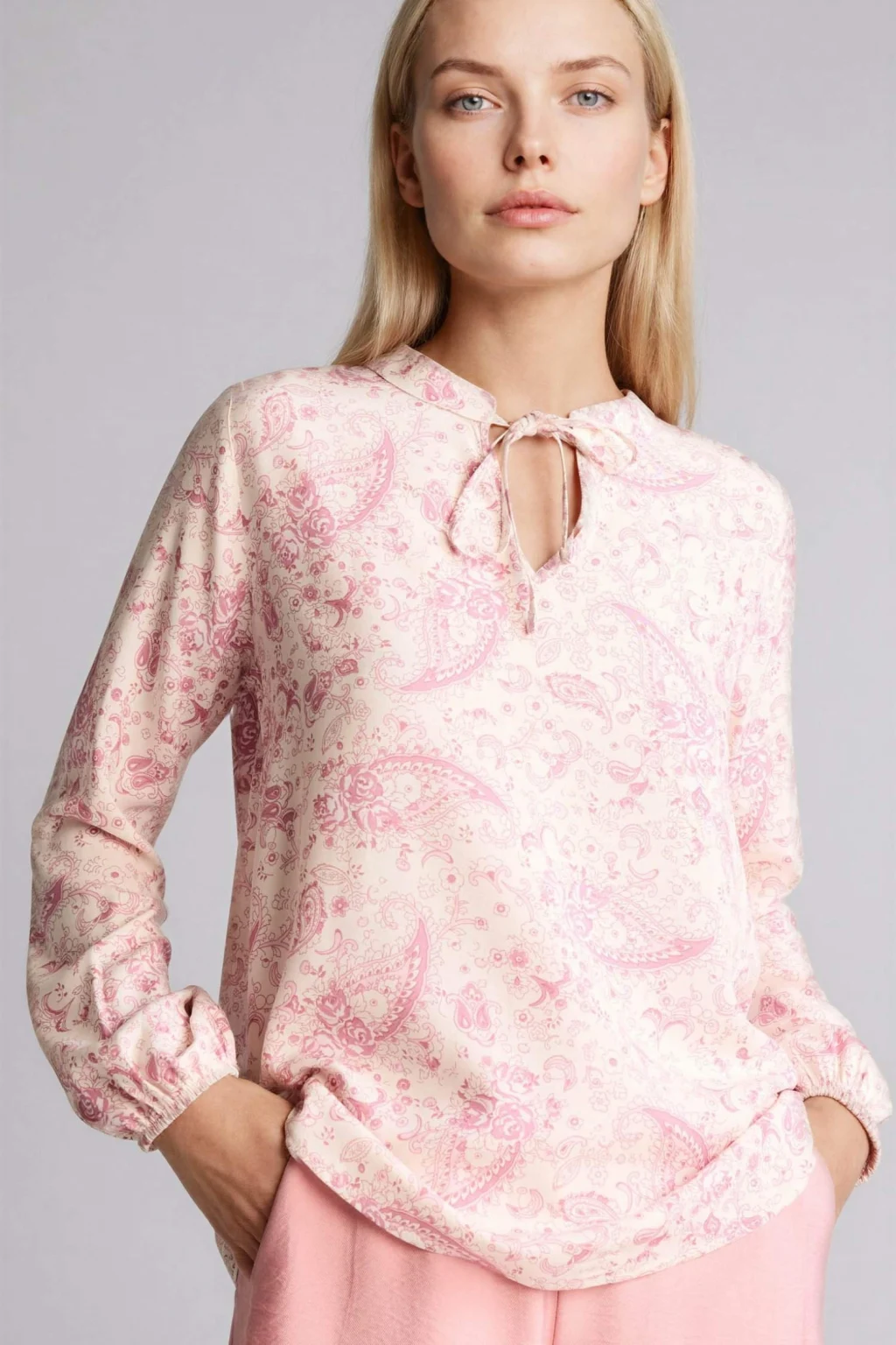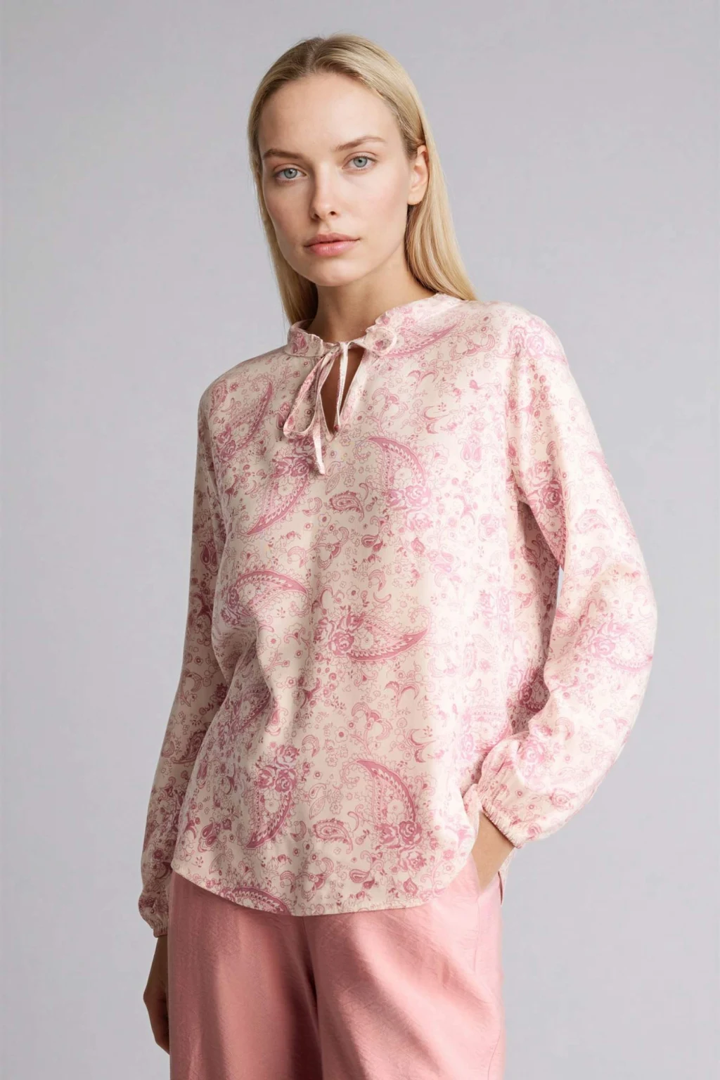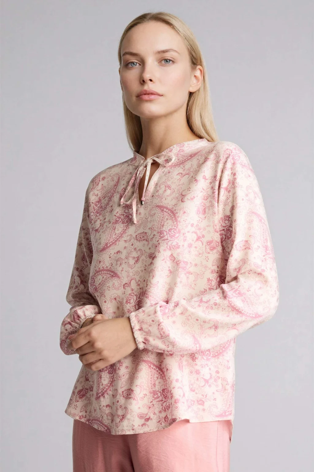 LCW Grace Ekru Bağlamalı Yaka Desenli Bluz
