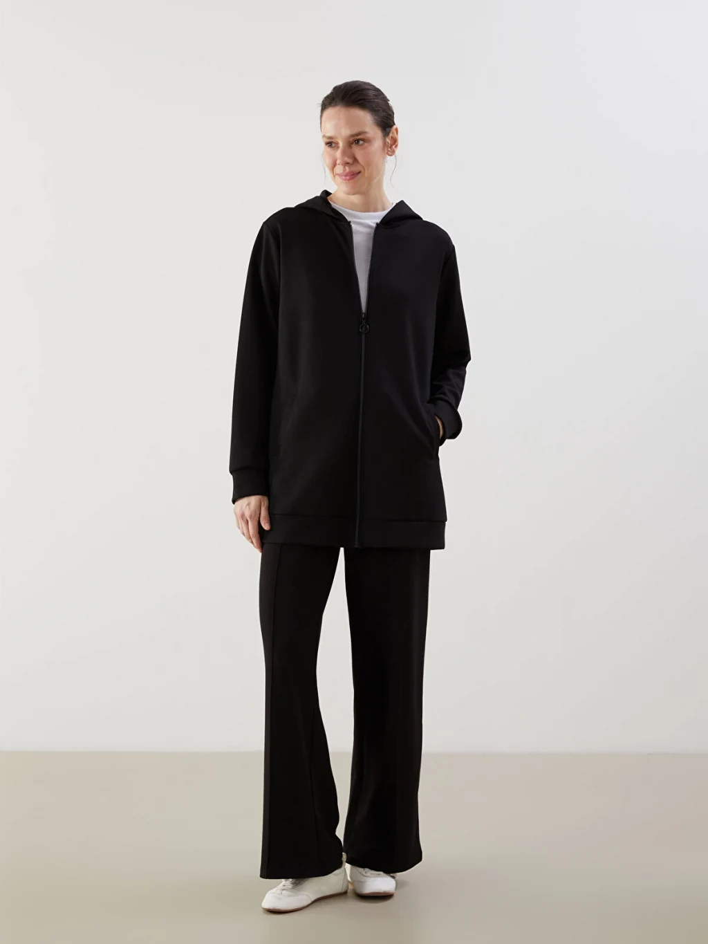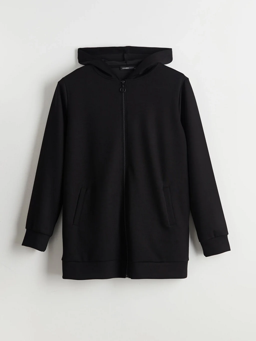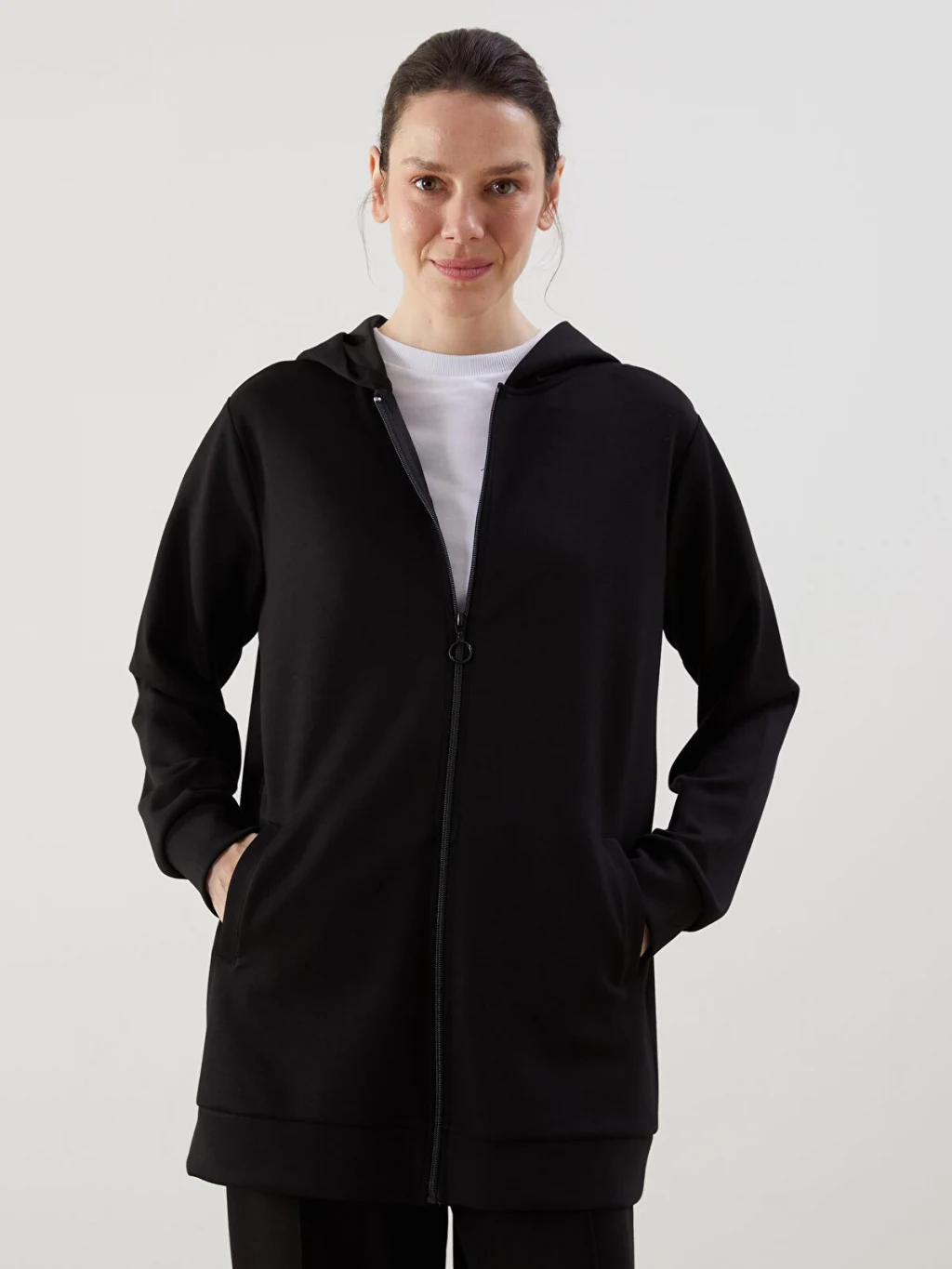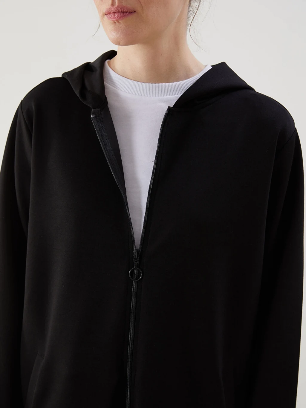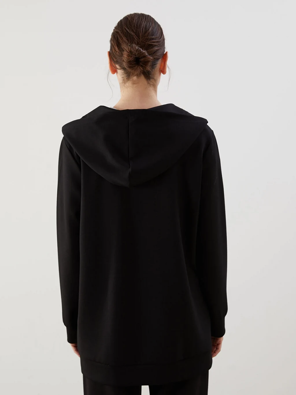 Kapüşonlu fermuarlı sweatshirt, esnek ve dayanıklı dalgıç kumaştan üretilmiştir. İki yandan cepli tasarımıyla eşyalarınızı taşıma olanağı sağlar. Bilekleri ve alt kısmı ribana detayları, düzgün bir görünüm sunar.