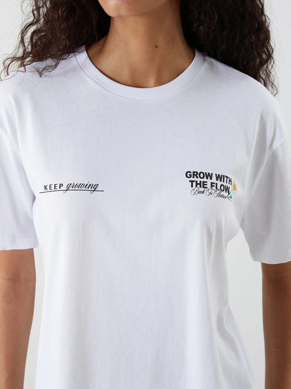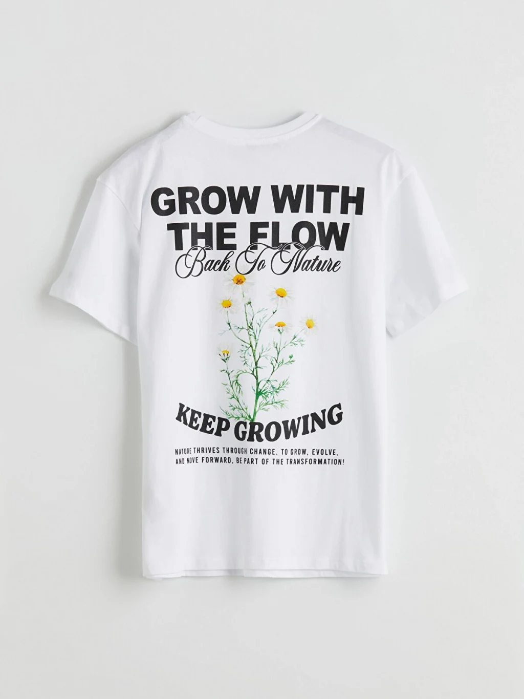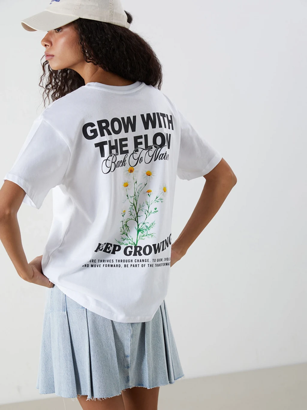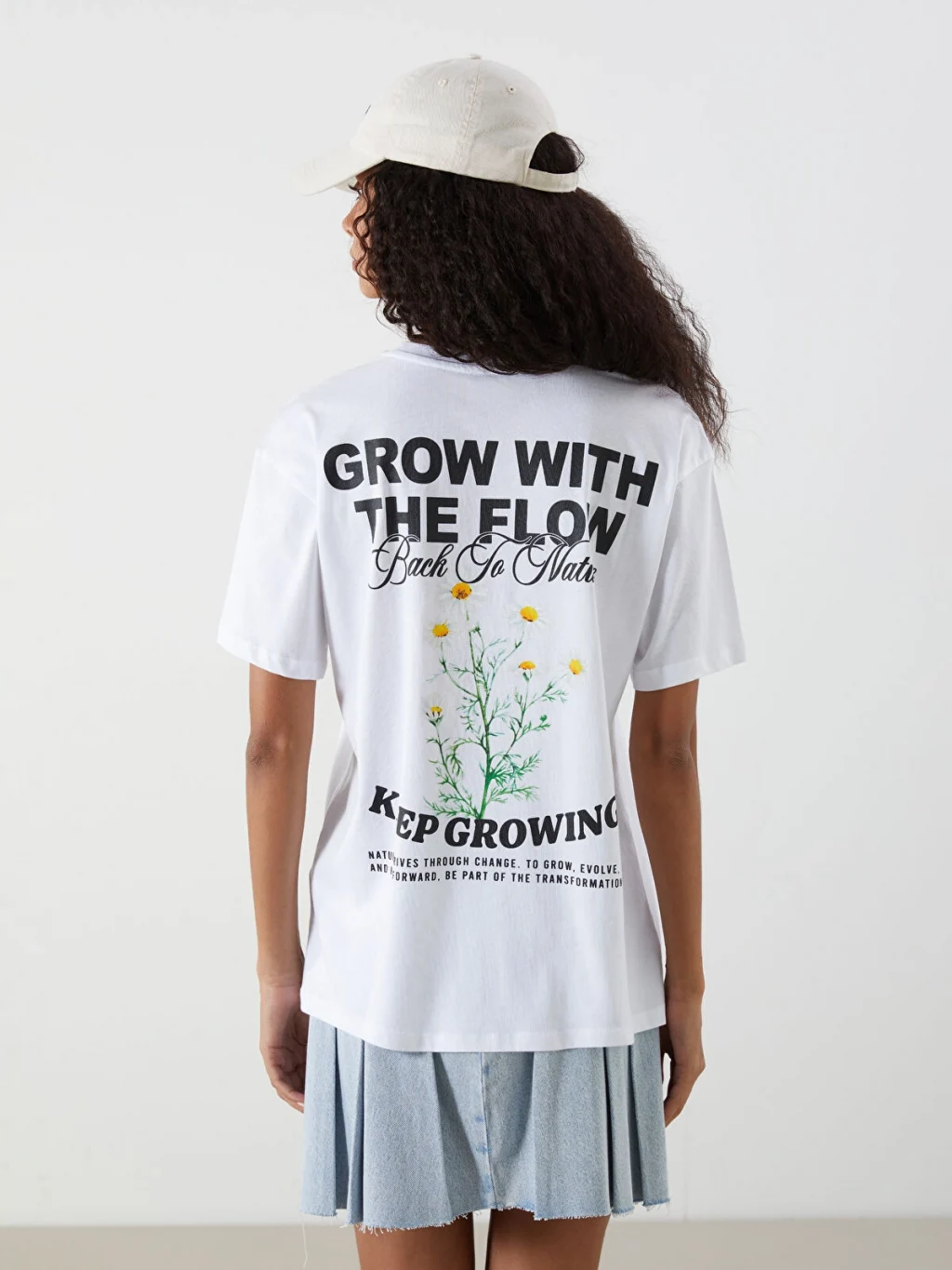 %100 pamuklu kumaştan, önü ve arkası baskılı tişört.