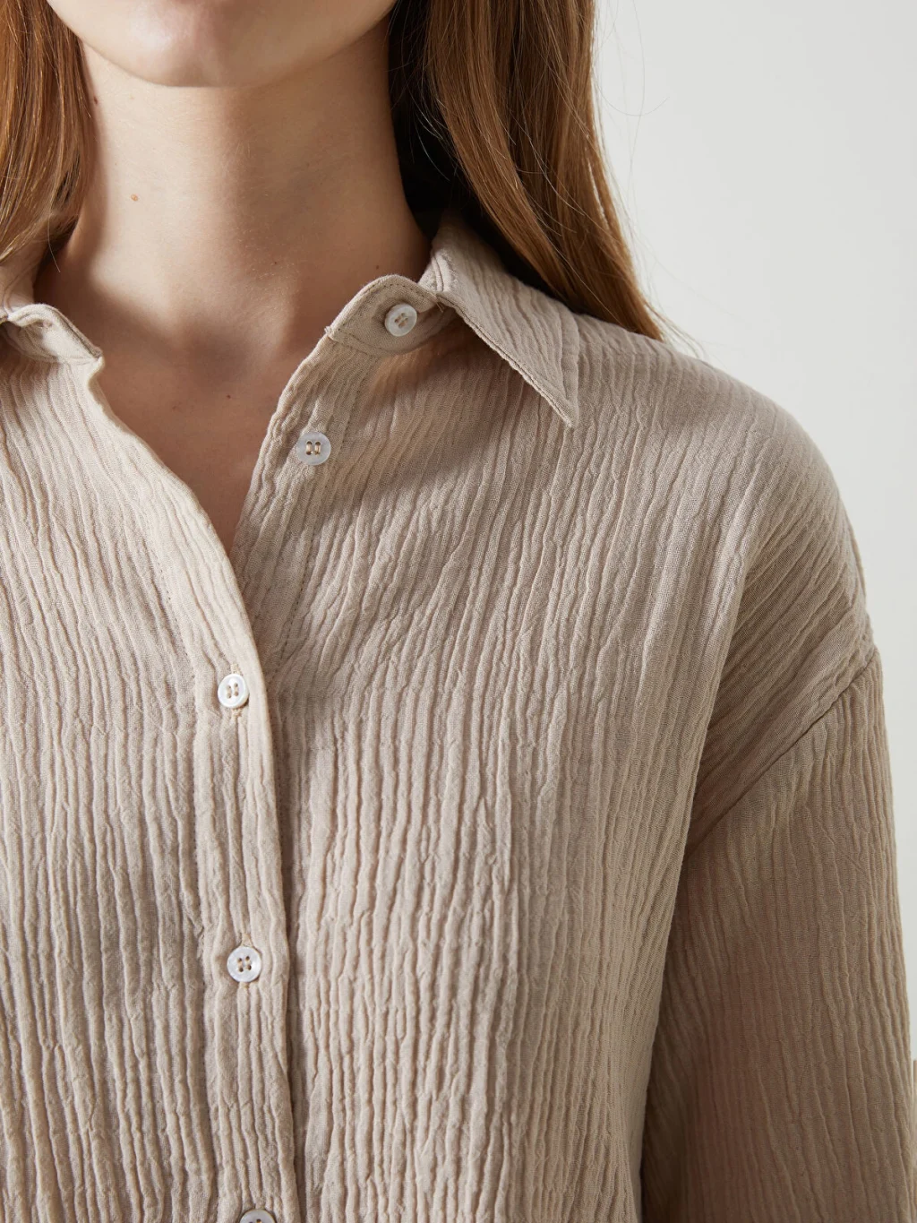 Dokulu kadın gömlek, bol kalıbı ile rahat ve modern bir görünüm sunar. Dokulu kumaşı sayesinde hem stil sahibi bir görünüm hem de konfor sağlayan bu gömlek, günlük kombinlerinize zarif bir dokunuş katar.