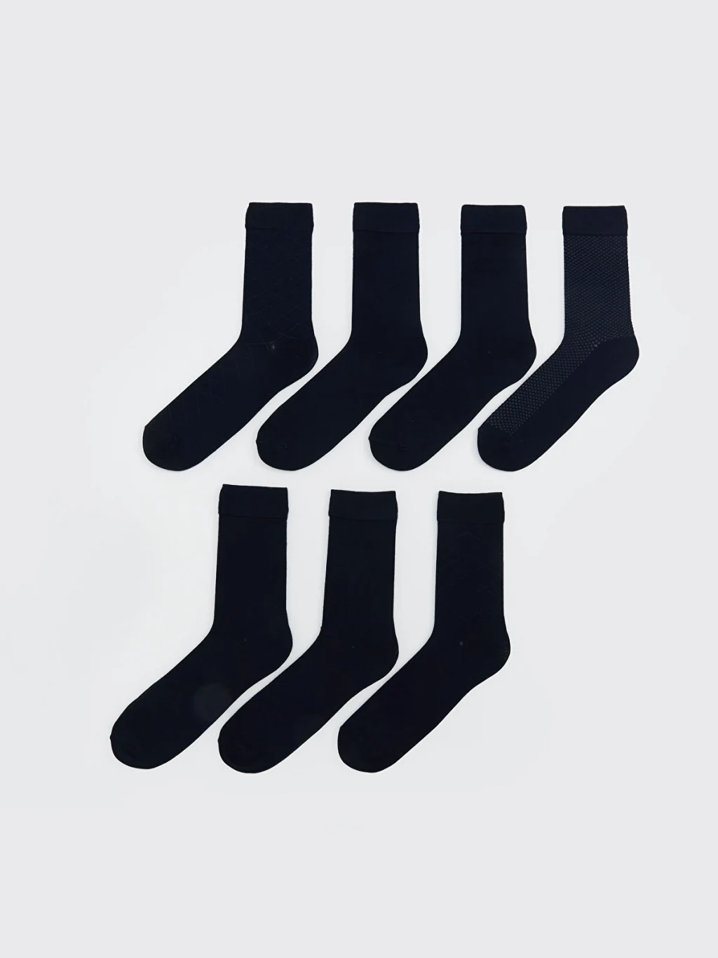 Viskon karışımlı kumaştan üretilen bu erkek soket çoraplar, yedi adetlik paket halinde sunulmuştur.