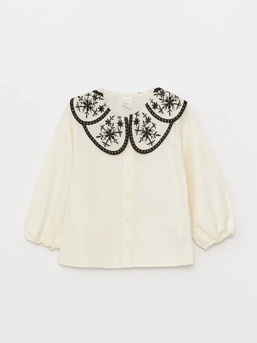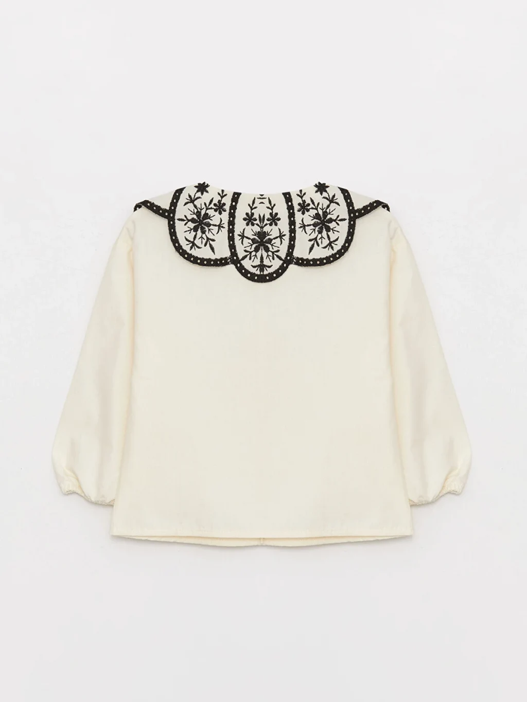 Sevimli ve konforlu bir şıklık sunan kız bebek gömlek %100 pamuklu poplin kumaşı ile terletmez, ebeveynlerin favorilerindendir. Bebe yaka tasarımında kullanılan nakış detaylar parçaya şıklık katar. Önden düğme kapamalı tasarım kolay giydirilir.