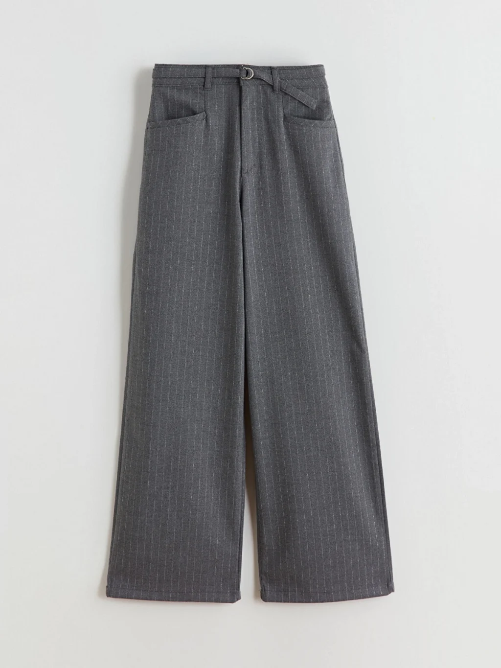 Poliviskon kumaşlı, wideleg kız çocuk pantolon. Çizgili desenli ve geniş paçalıdır. Ön cepleri ve D halka kemer detayı bulunur.