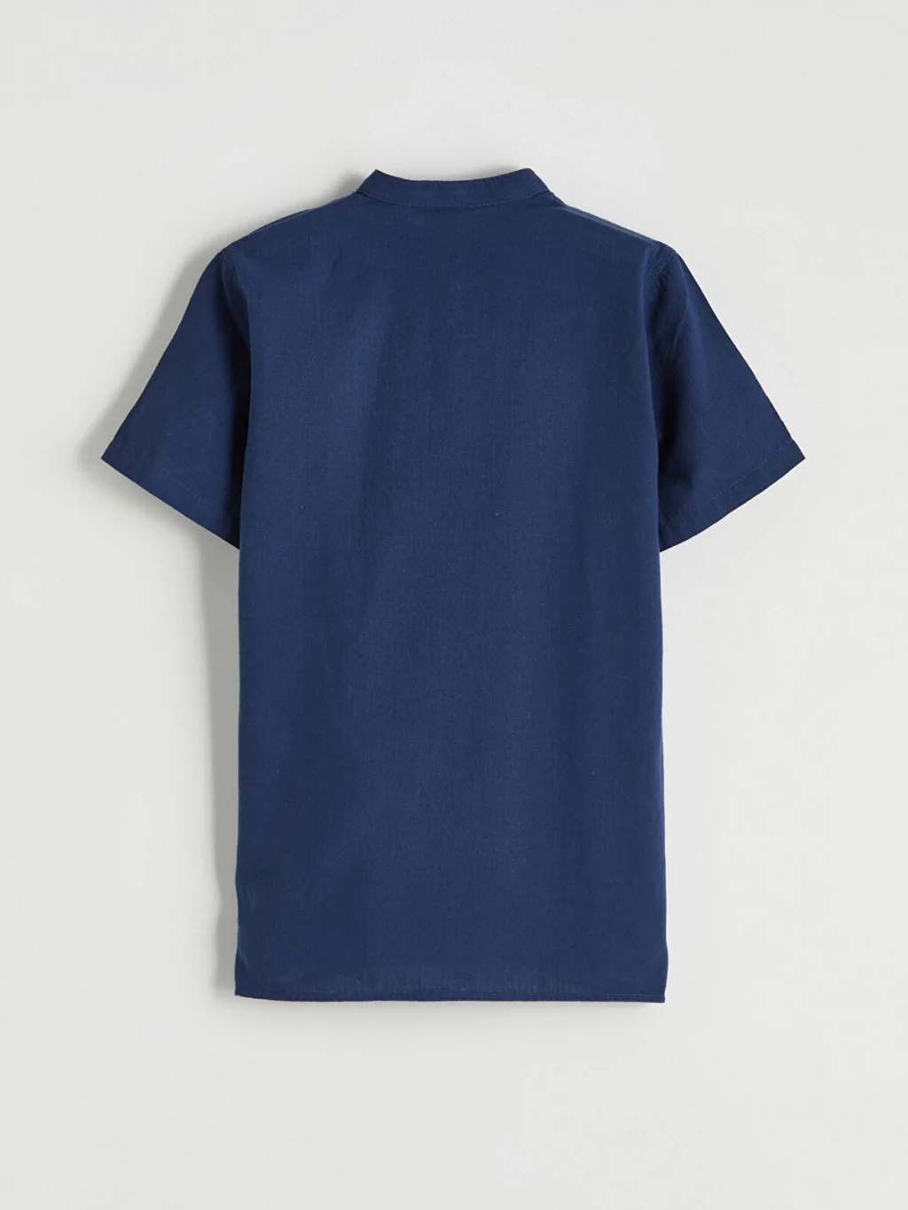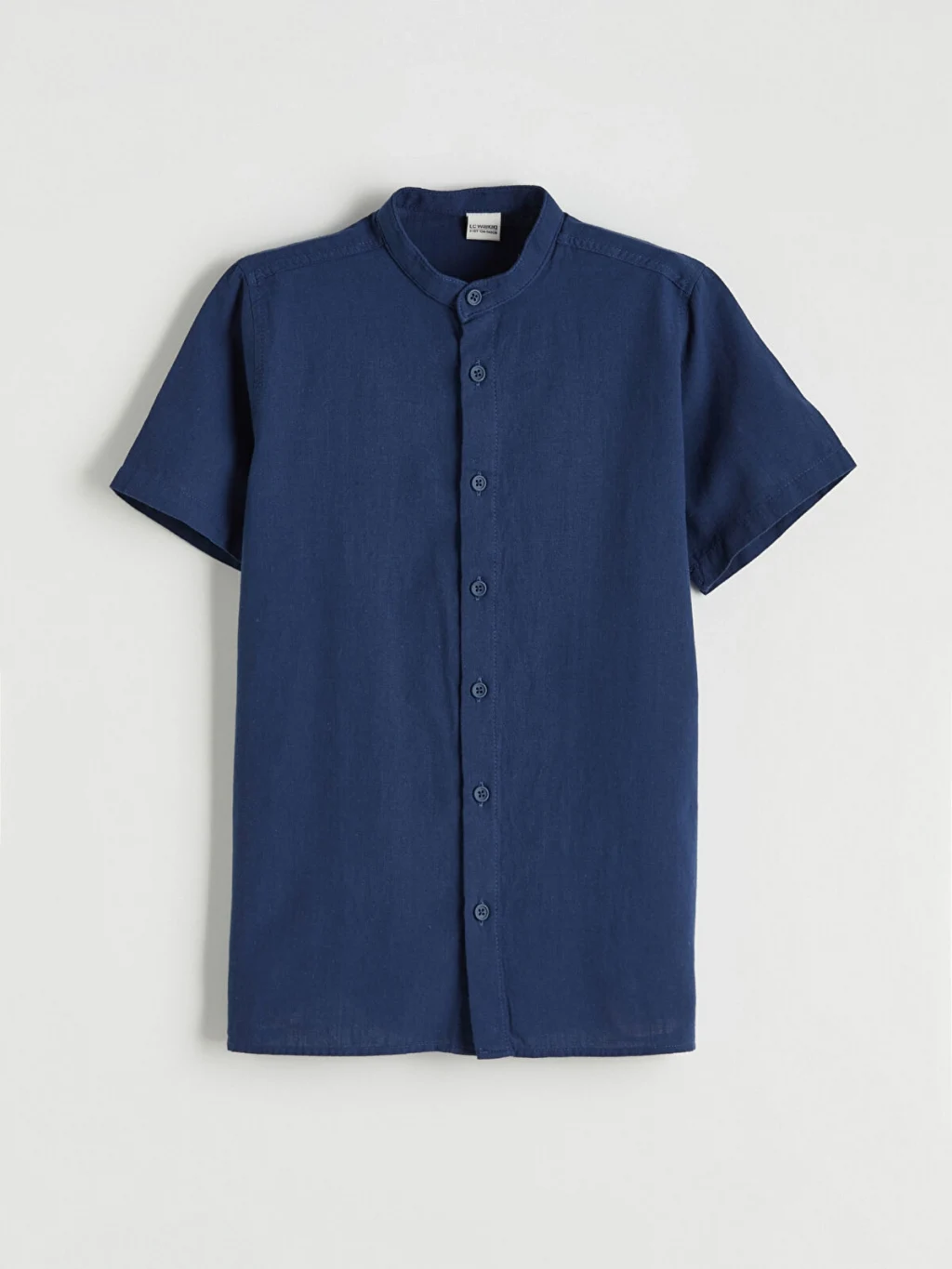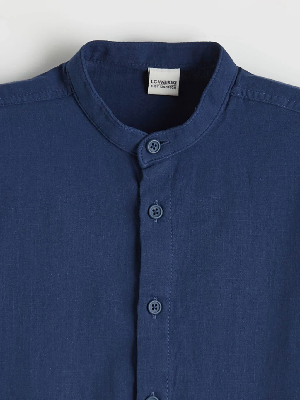 Erkek çocuk gömlek, %100 pamuklu poplin kumaştan üretilmiştir. Hakim yakalı, kısa kollu ve önden düğme kapamalıdır.