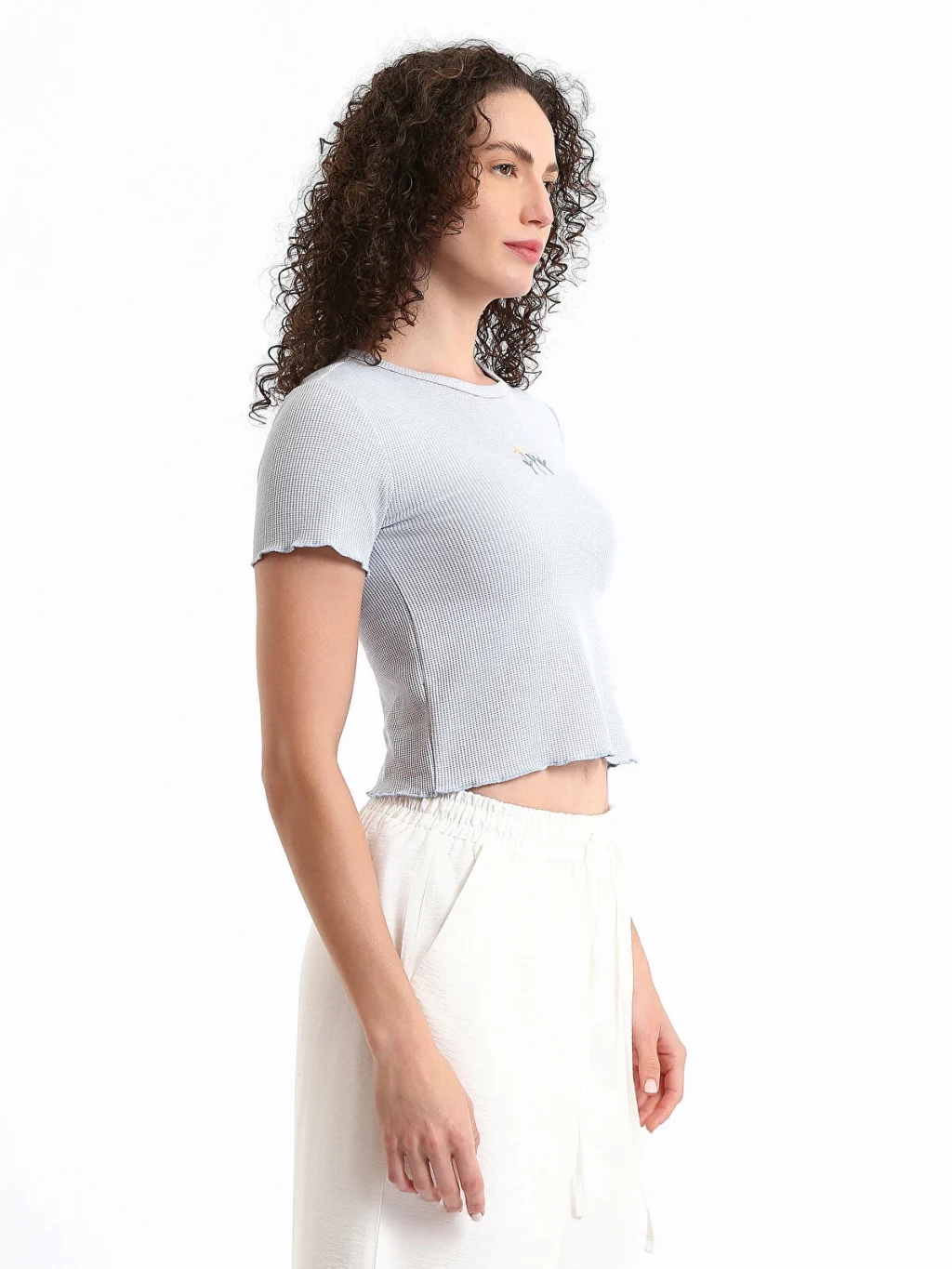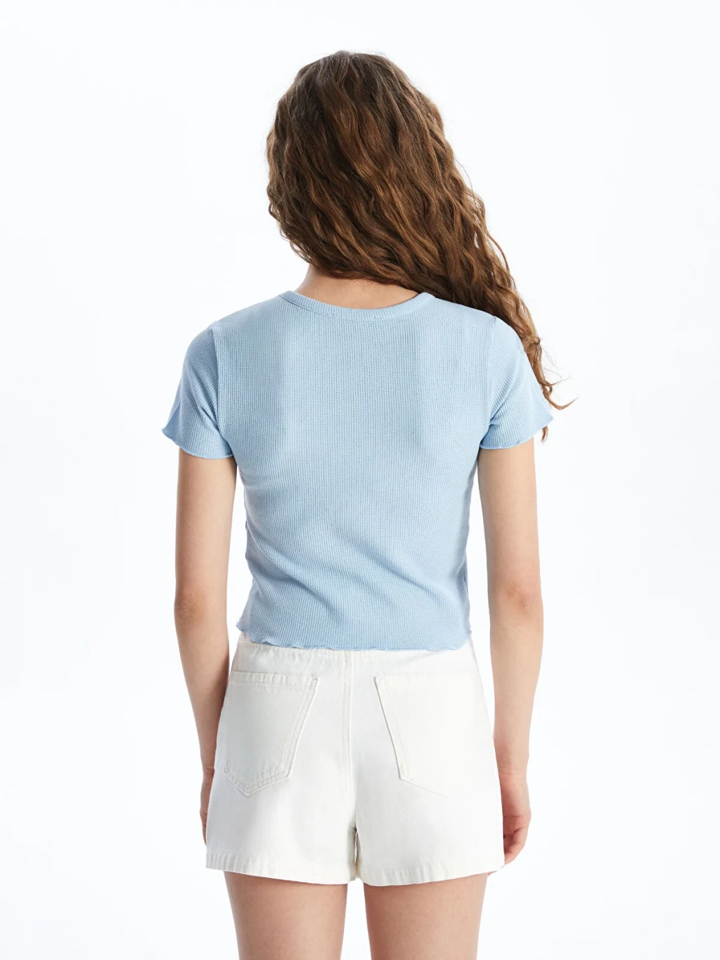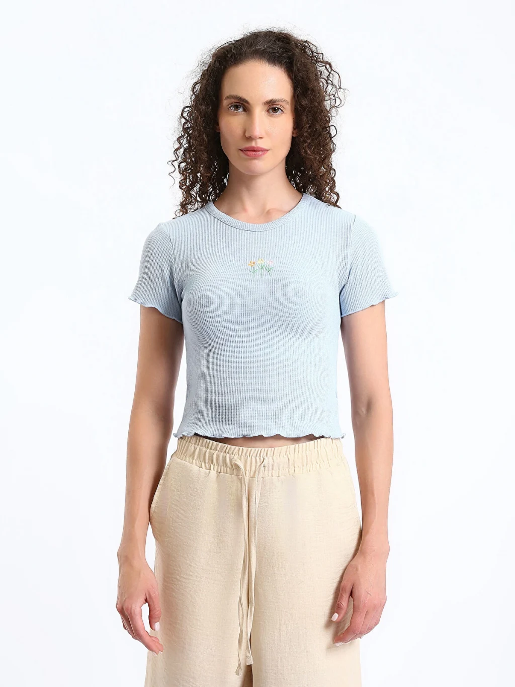 Bisiklet yaka nakışlı kısa kollu kadın tişört, günlük tarzınız için ideal bir seçim. Yumuşak dokusu ve dar kalıbıyla konforu ön planda tutarken, zarif nakış detayları ile stilinizi vurgular.