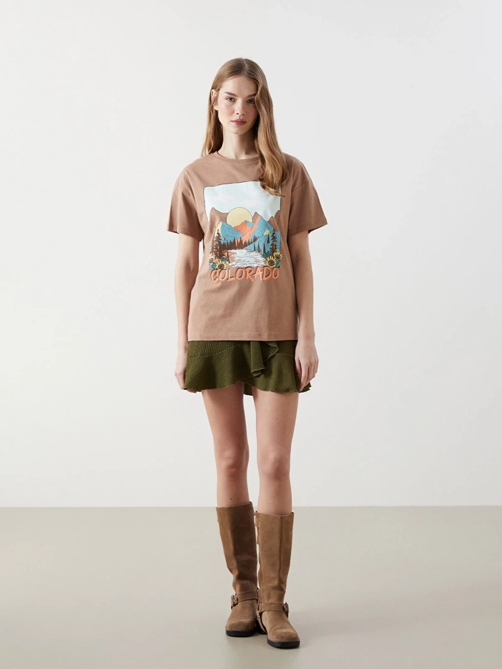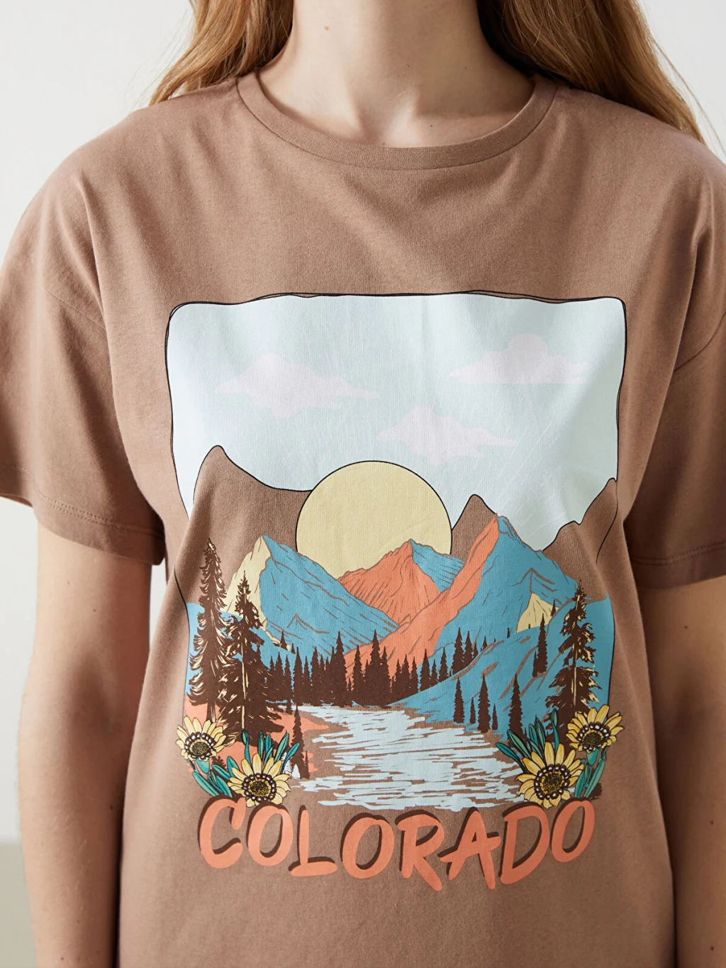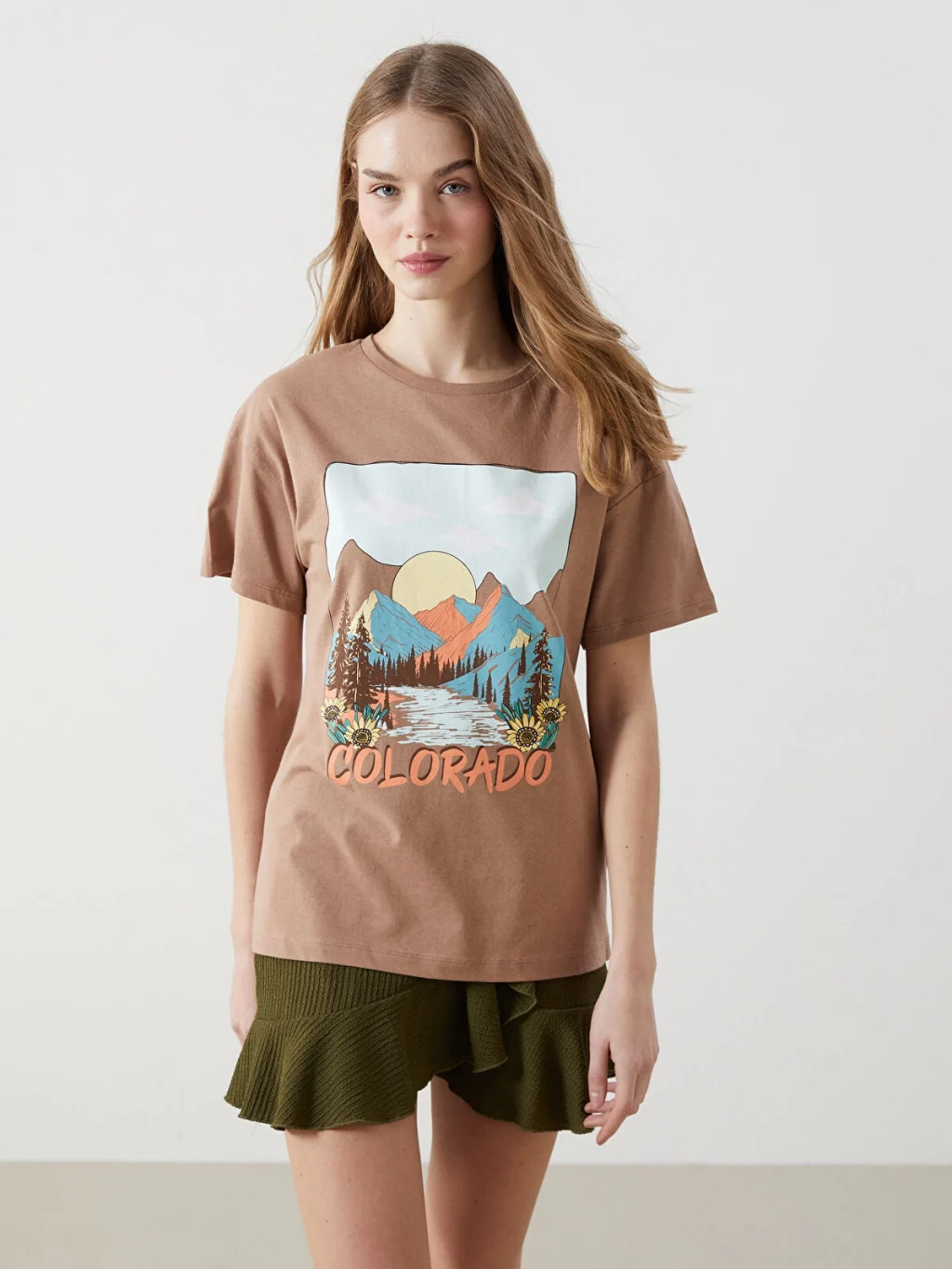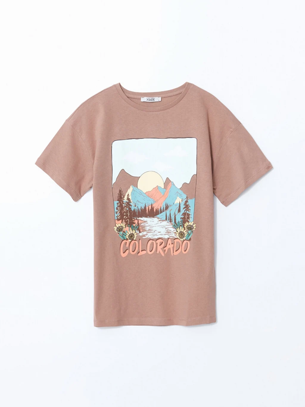 Bisiklet yaka baskılı kısa kollu tişört süprem kumaştan üretilmiştir. Hafif ve nefes alabilen yapısı ile yaz aylarında serinlik sunar.