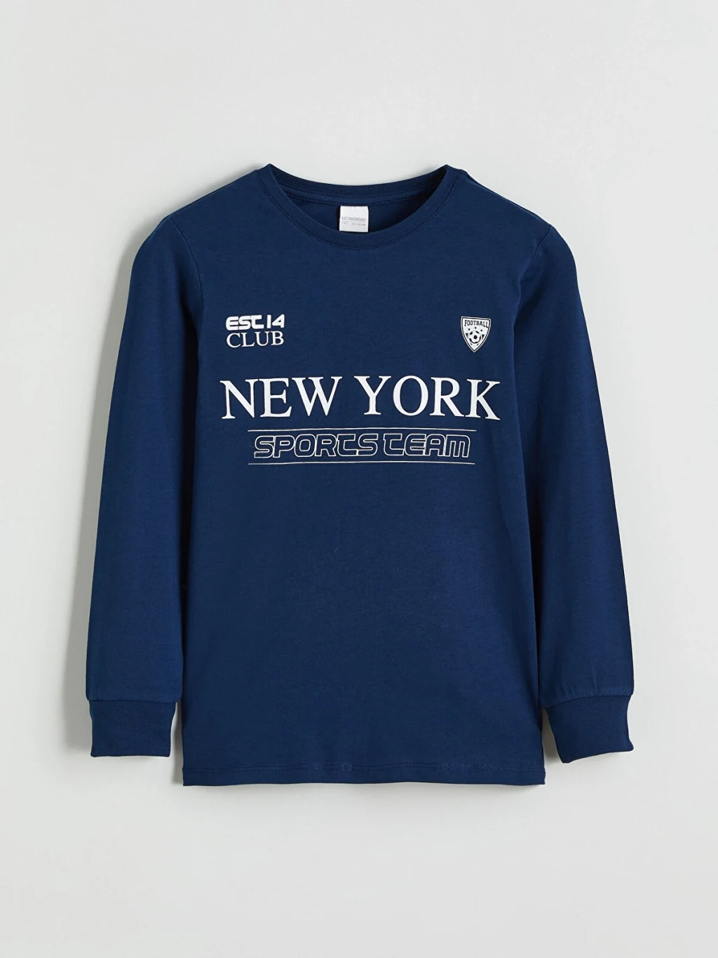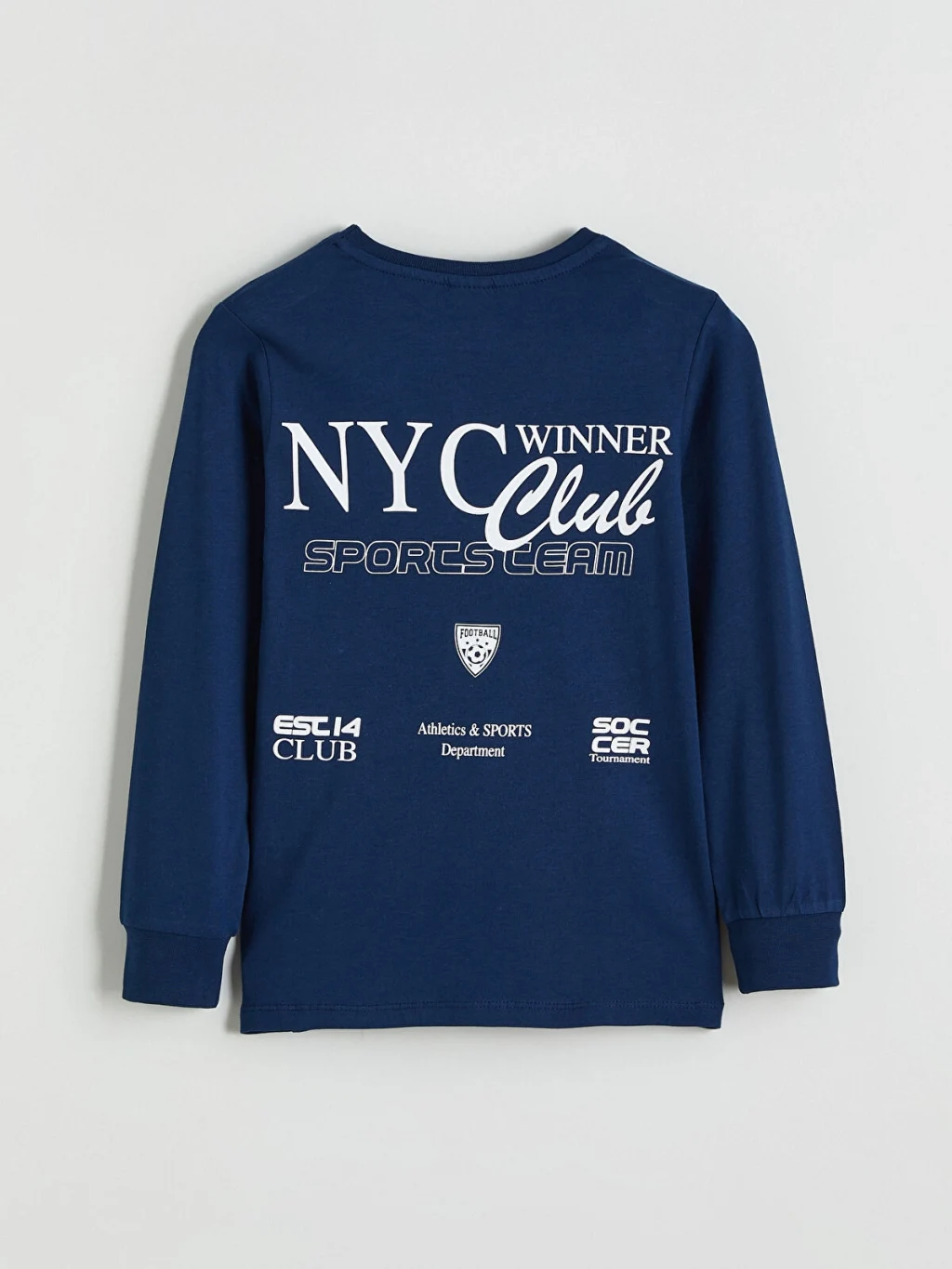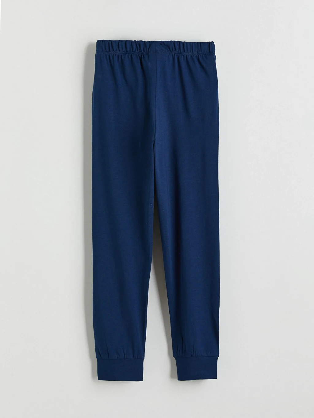 Bisiklet yaka, ön ve arka yüzü baskılı pijama takımı, pamuklu kumaştan üretilmiştir.