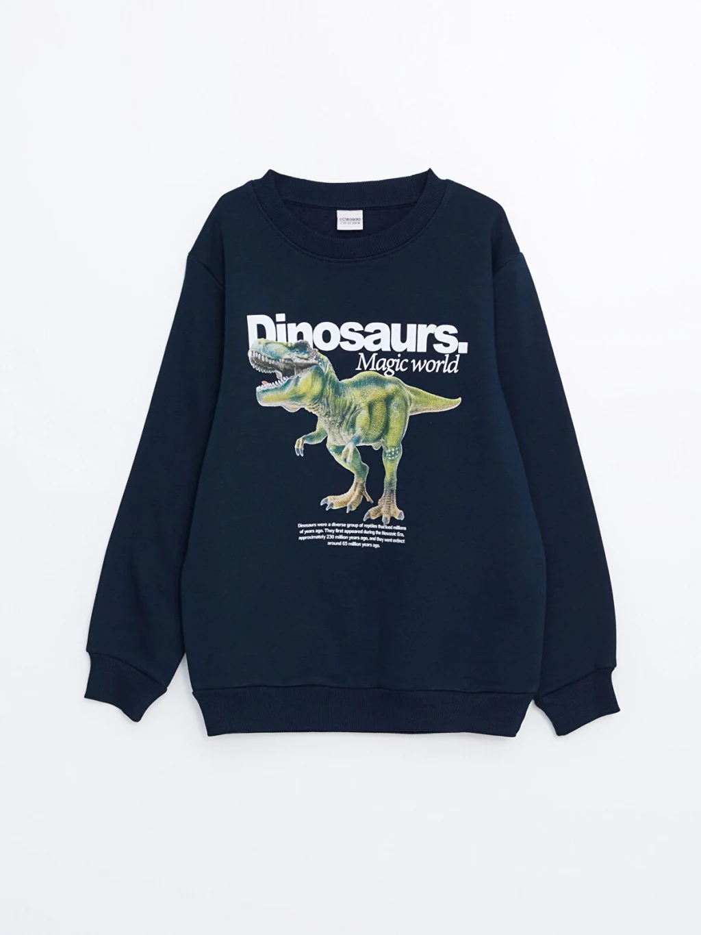 Yumuşak dokulu erkek çocuk sweatshirt, 3 iplik şardonlu kumaşı ile konforlu bir kullanım sunar. Dinozor baskısı, çocukların hayal dünyasını canlandırırken, çocuğunuz için hem rahat hem de tarzını yansıtan bir seçenek.