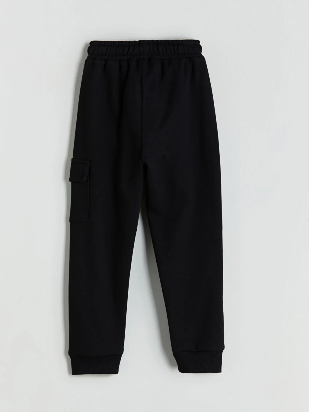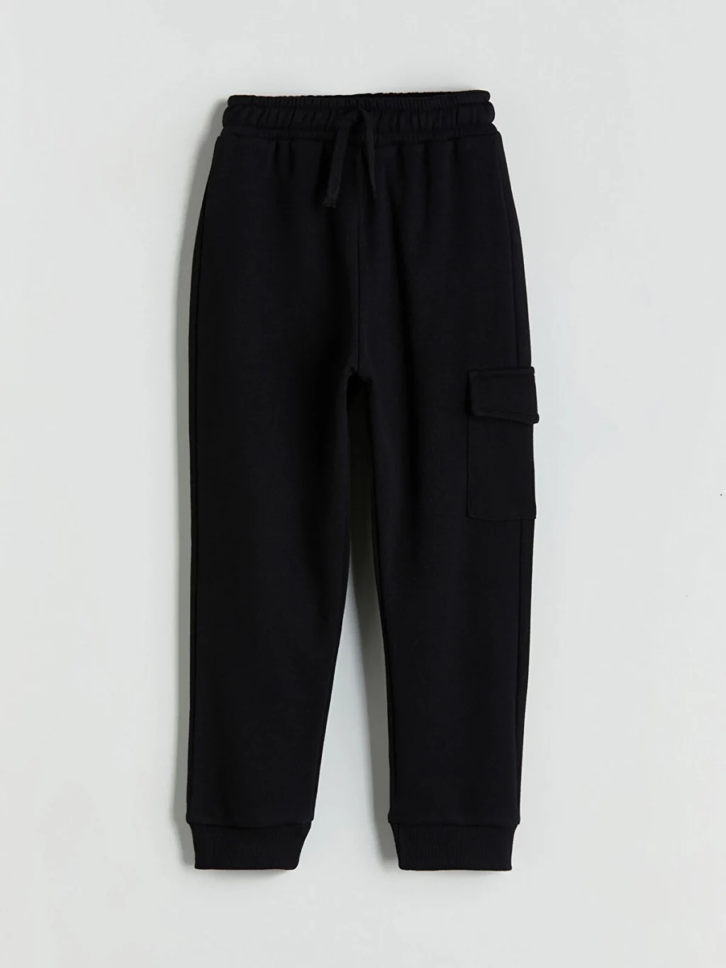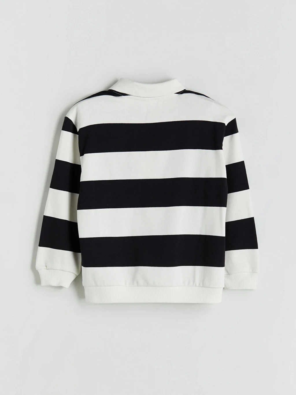 Erkek çocuk takım, polo yaka çizgili sweatshirt ve kargo eşofman altından oluşur. 3 İplik kumaştan üretilmiştir.