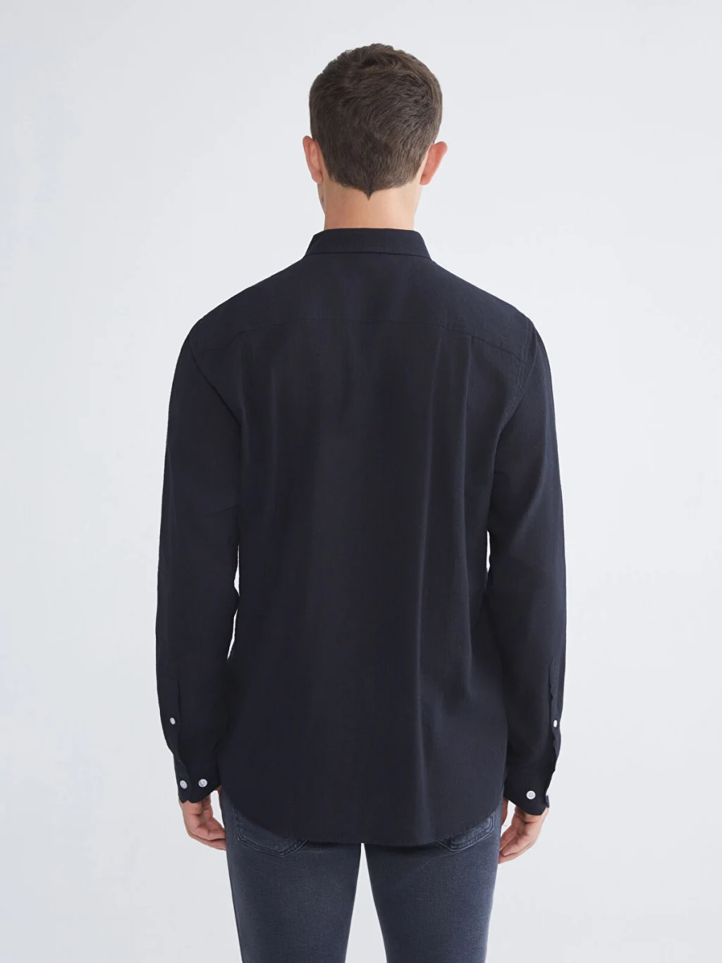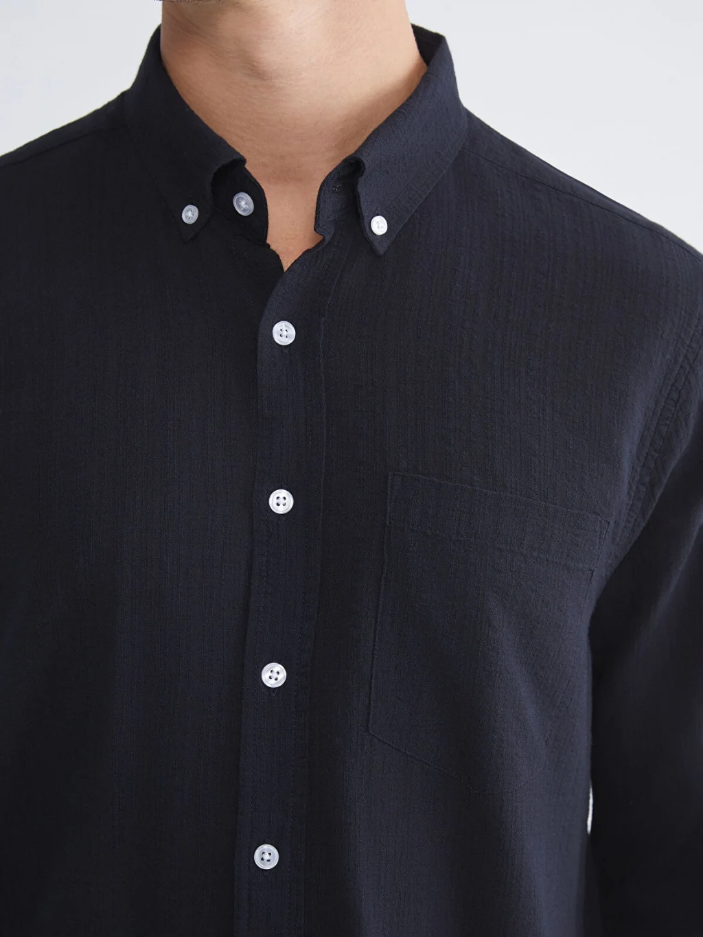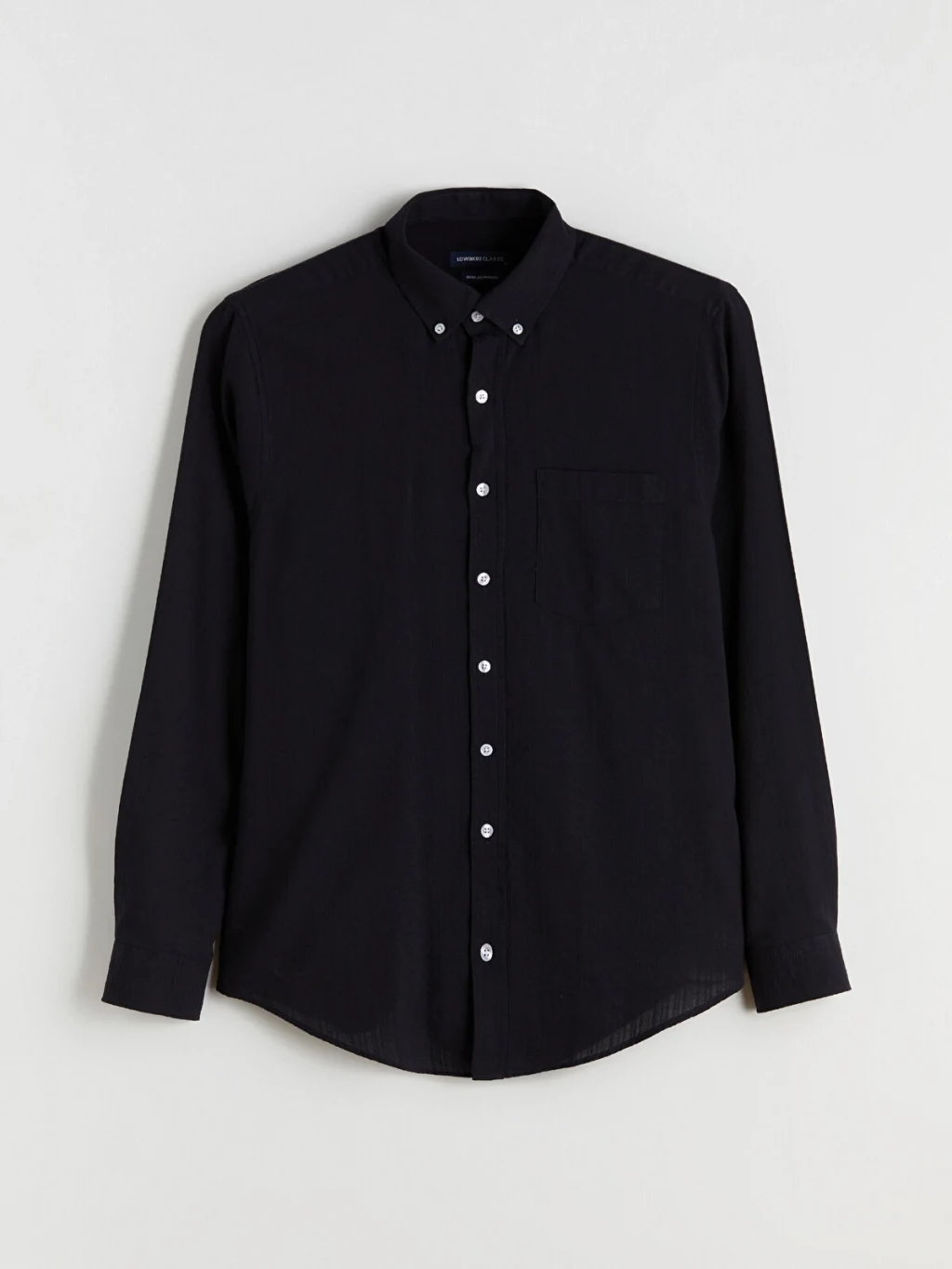 Erkek gömlek, %100 pamuklu armürlü kumaştan üretilmiştir. Yaka ucu düğmeli, uzun kollu, tek göğüs cepli ve önden düğme kapamalıdır.