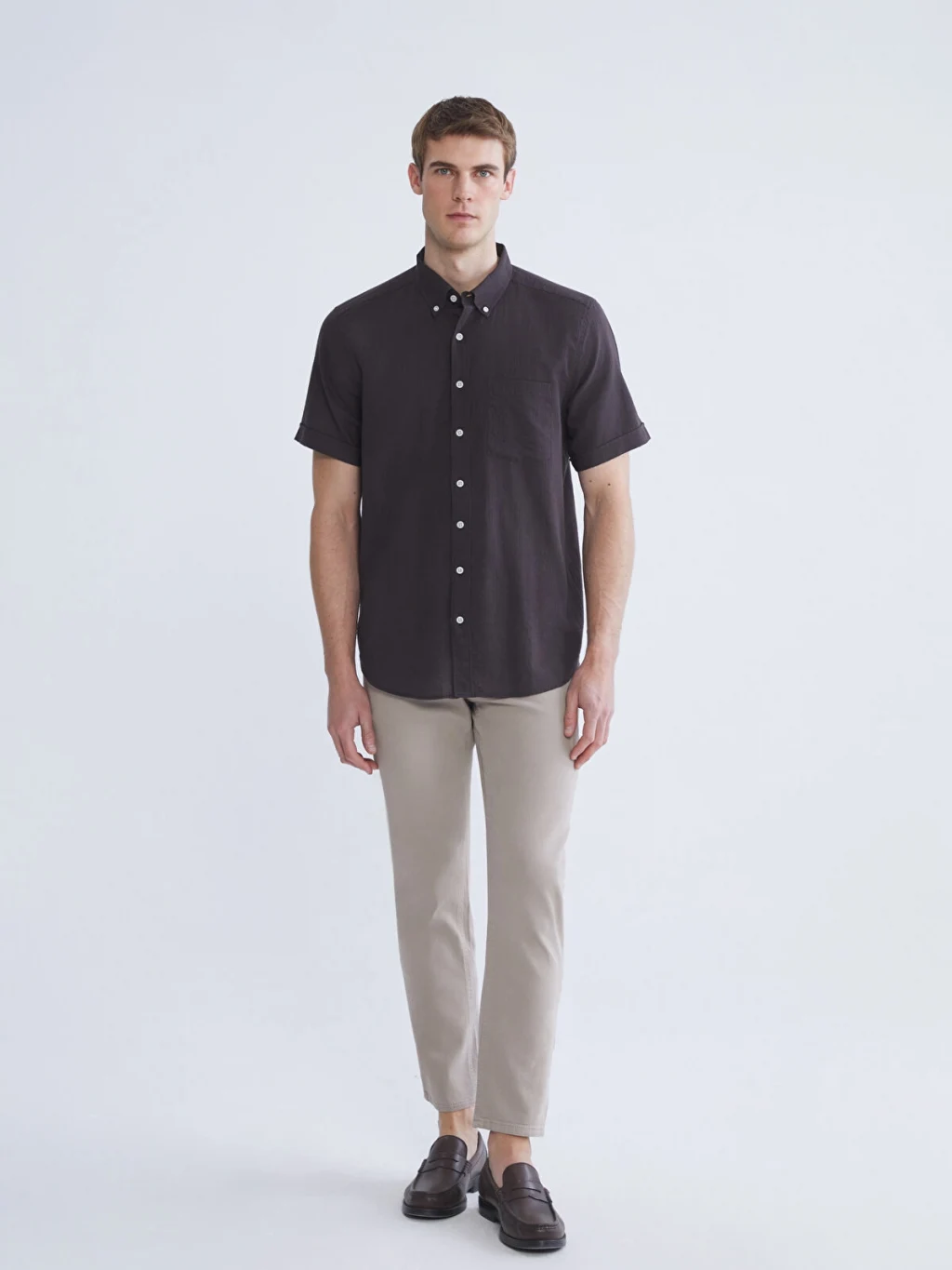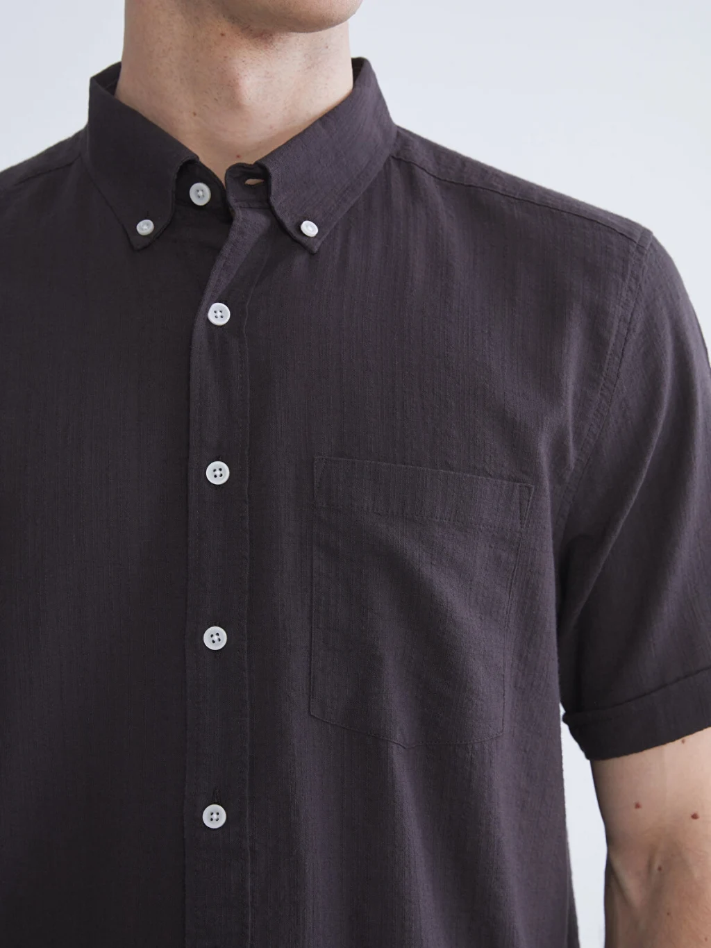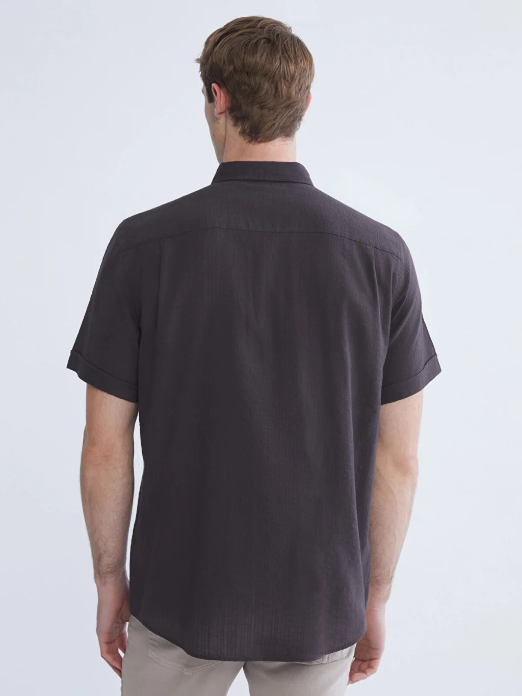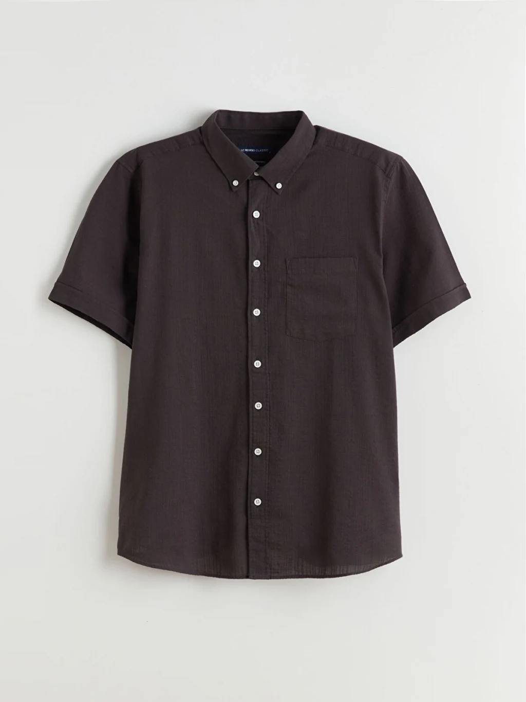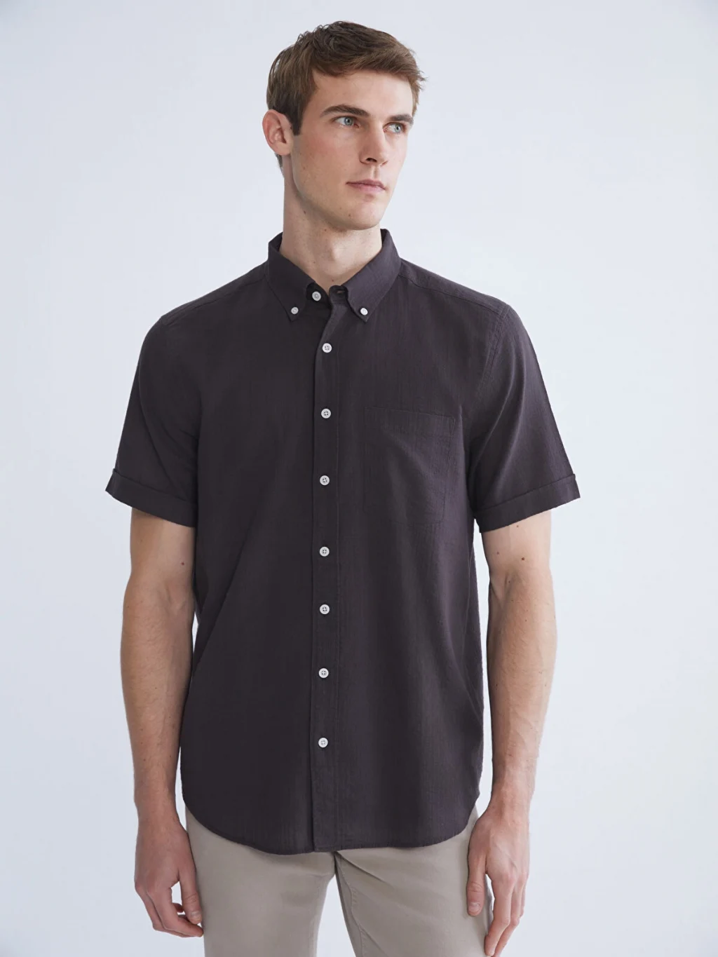 Düğmeli yakalı, kısa kollu erkek gömlek, %100 pamuklu krinkle kumaştan üretilmiştir. Önden düğme kapamalıdır ve göğsünde tek cebi bulunur.