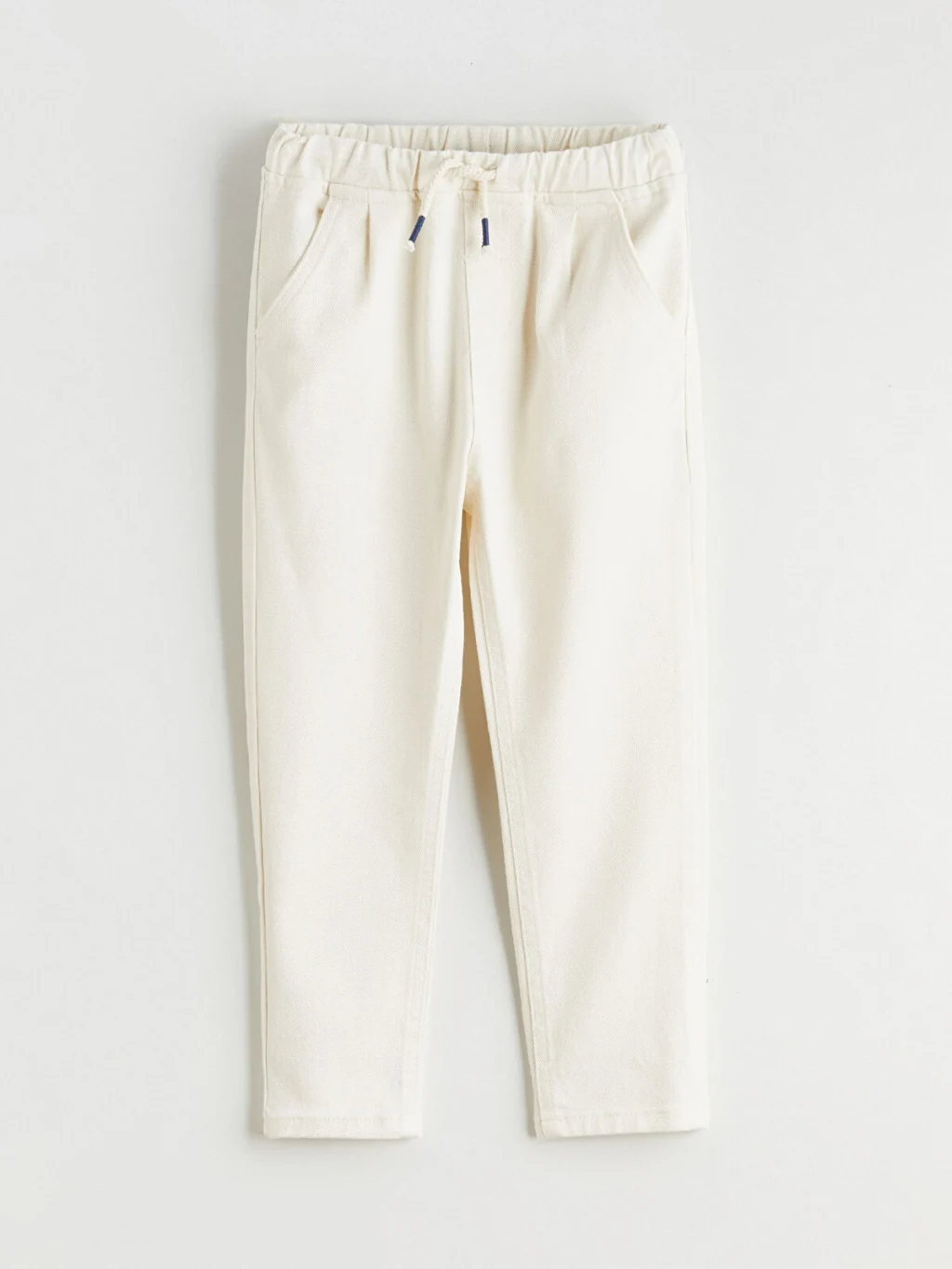 Standart kalıp erkek çocuk pantolon, yüksek pamuk içerikli gabardin kumaştan üretilmiştir. Beli lastikli ve ayarlanabilir bağcıklıdır.