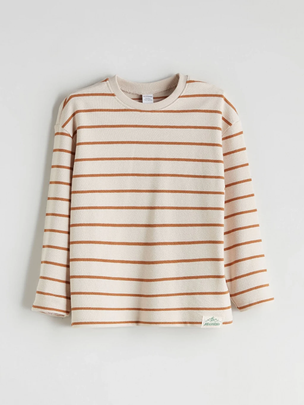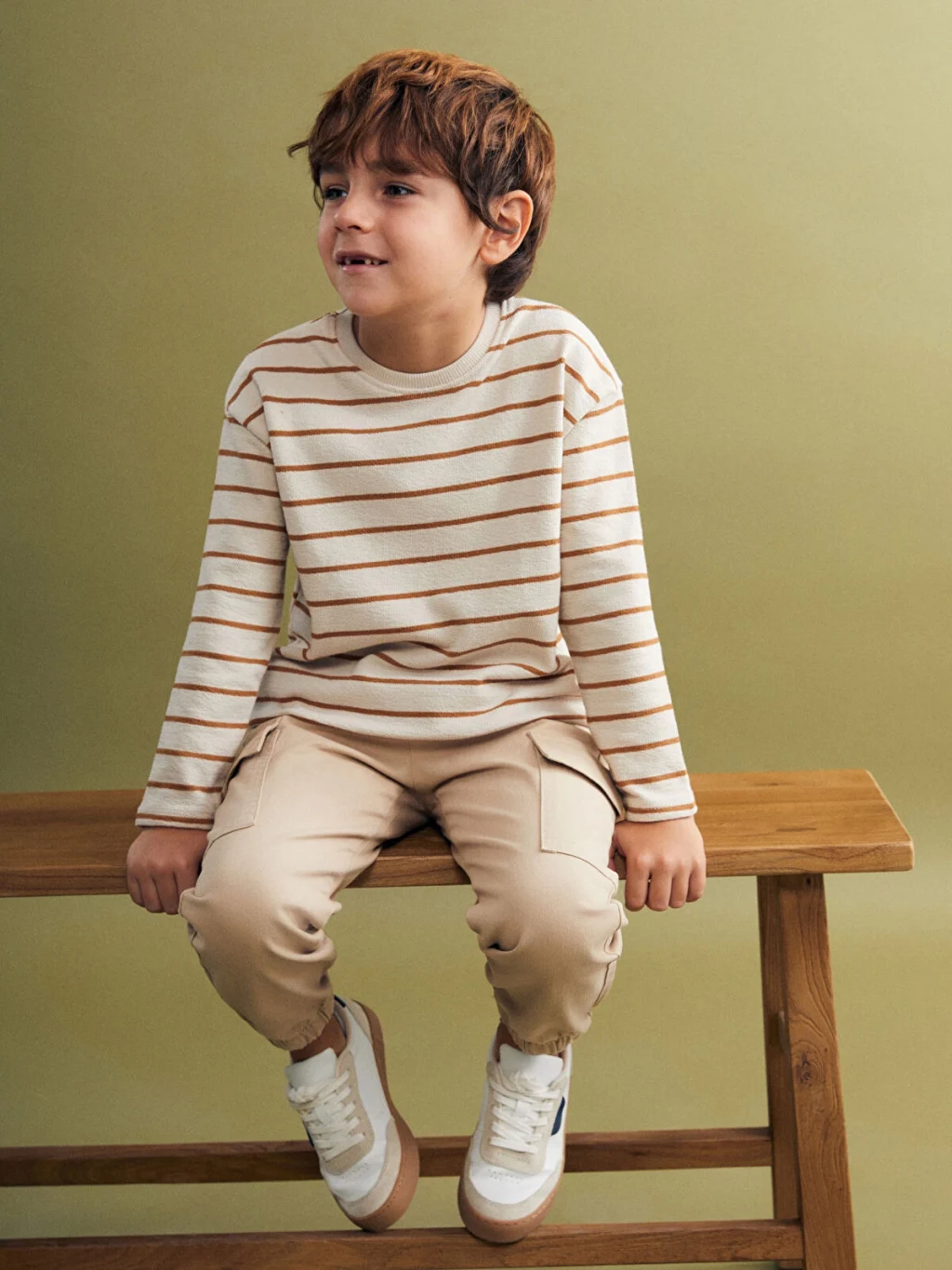 Defacto E9517 Bej Erkek Çocuk Bisiklet Yaka Baskılı Uzun Kollu Tişört
