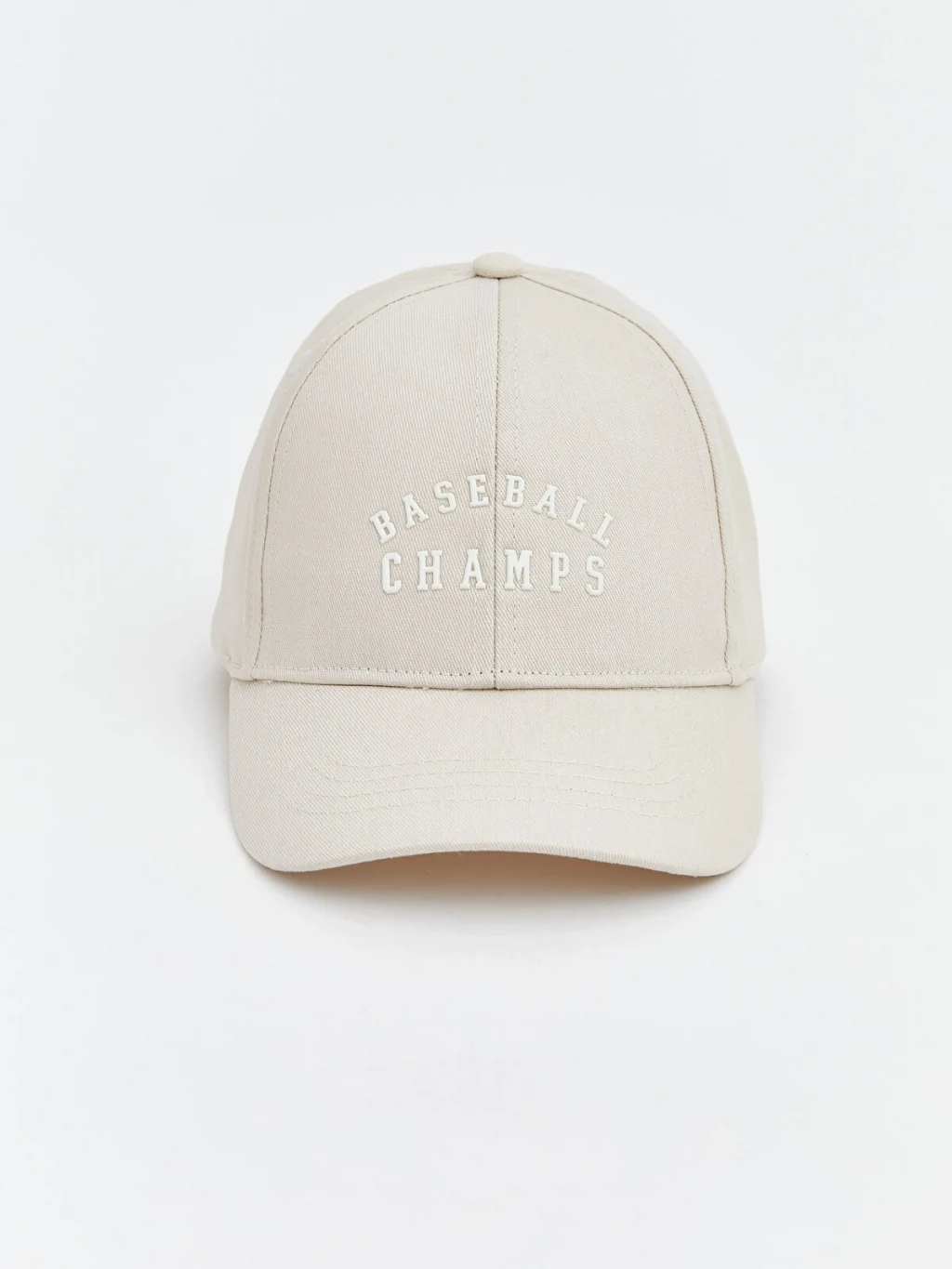 Siperlikli tasarıma sahip erkek çocuk kep şapka, ön kısmında yazı nakışı bulunur ve arkası ayarlanabilir.