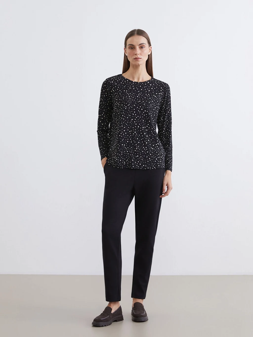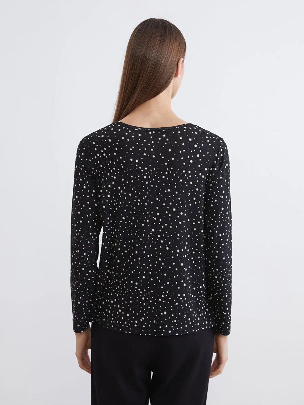 Bisiklet yaka desenli bluz, süprem kumaştan üretilmiştir. Hafif ve nefes alabilen yapısı ile gün boyu konfor sunar.