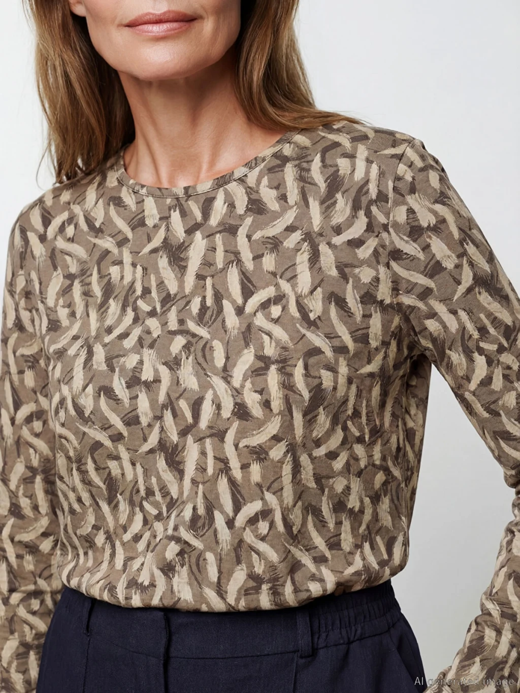 Bisiklet yaka desenli bluz, süprem kumaştan üretilmiştir. Hafif ve nefes alabilen yapısı ile gün boyu konfor sunar.