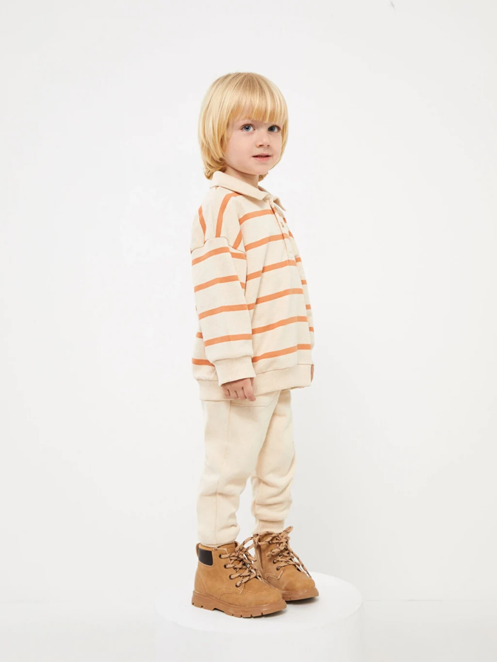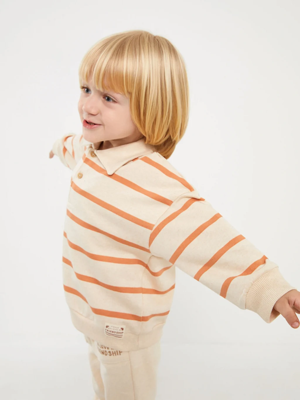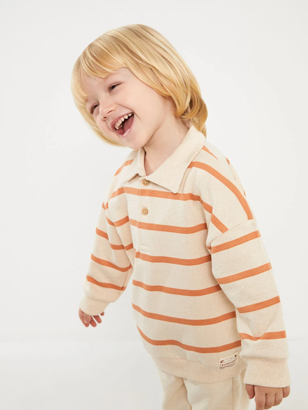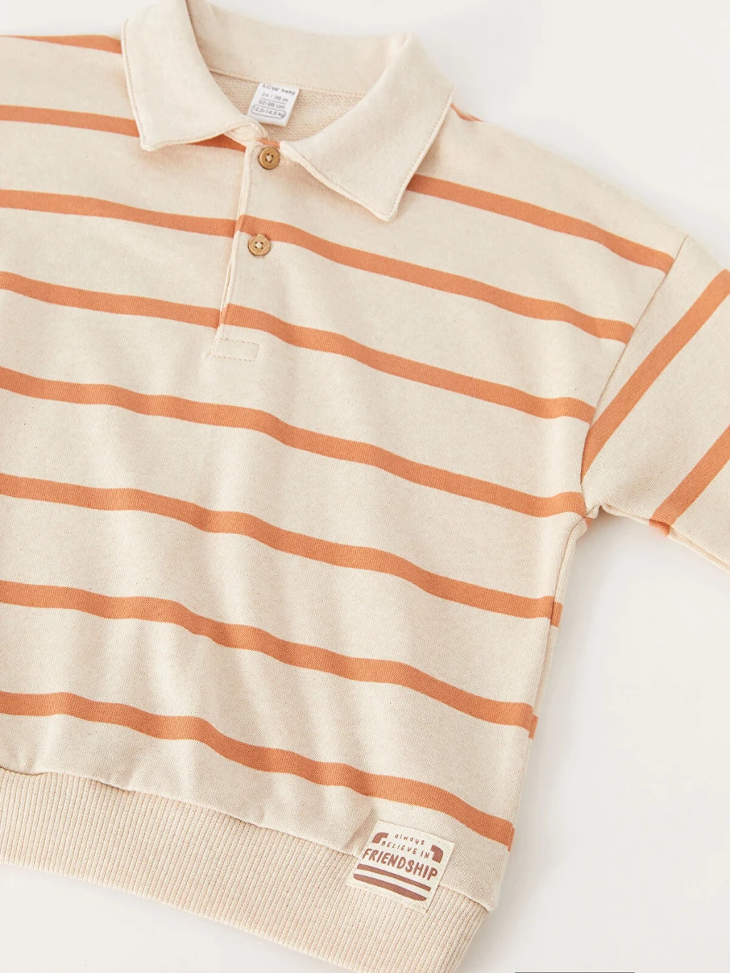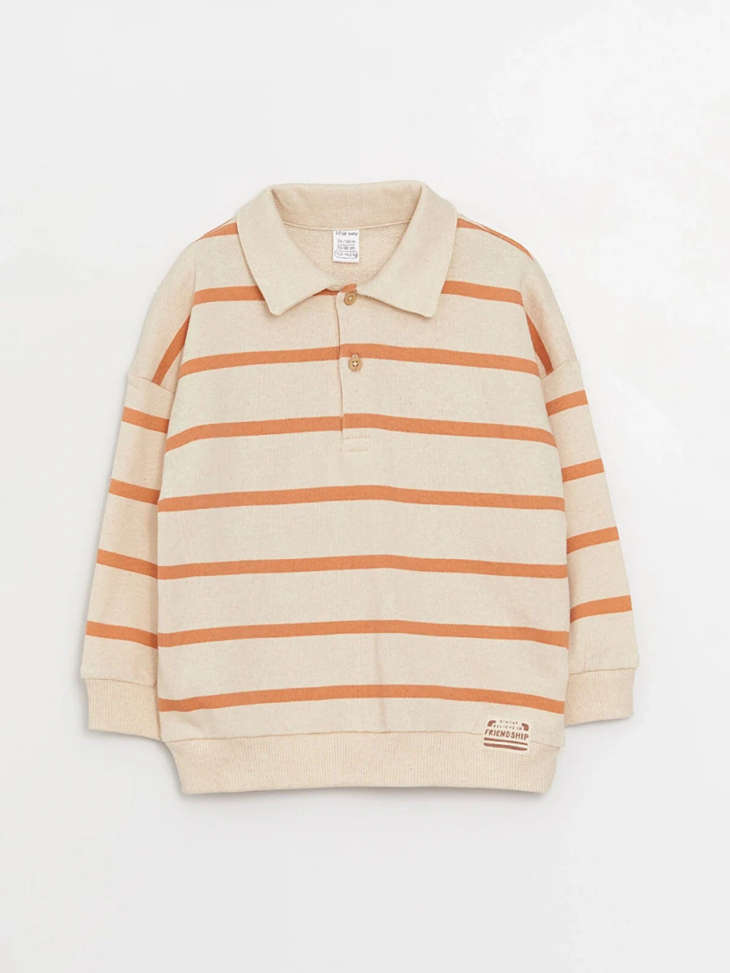 Erkek bebek sweatshirt, polo yaka, uzun kollu ve çizgili bir tasarıma sahiptir. Şık detaylarıyla dikkat çeker. Bebeğinizin rahat ve stil sahibi bir görünüm elde etmesini sağlar.
