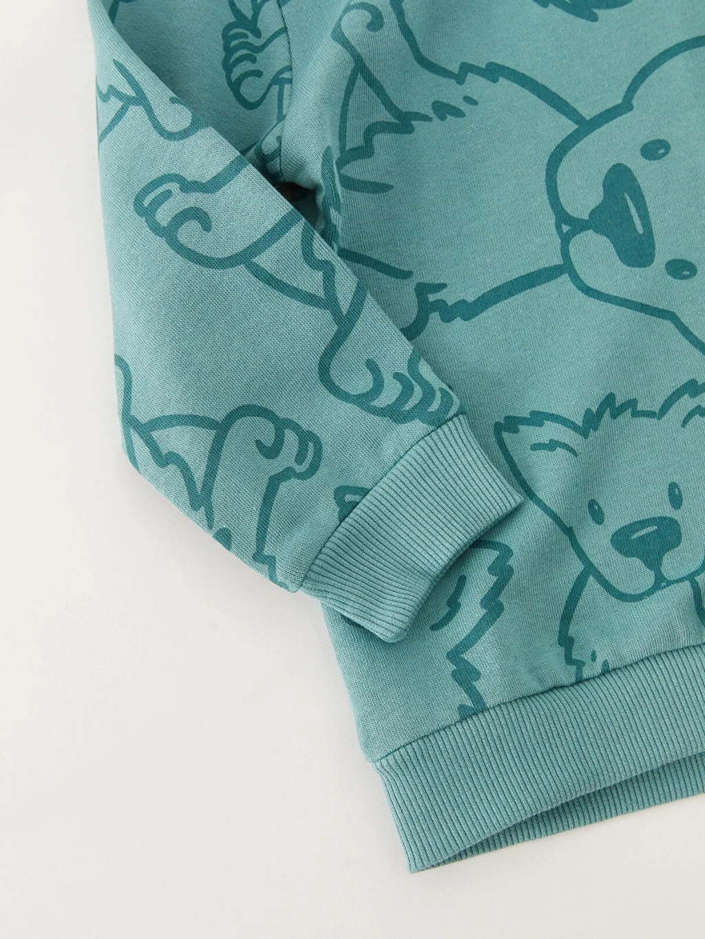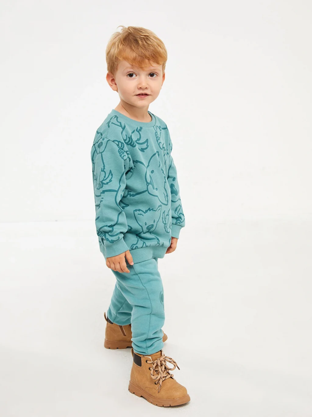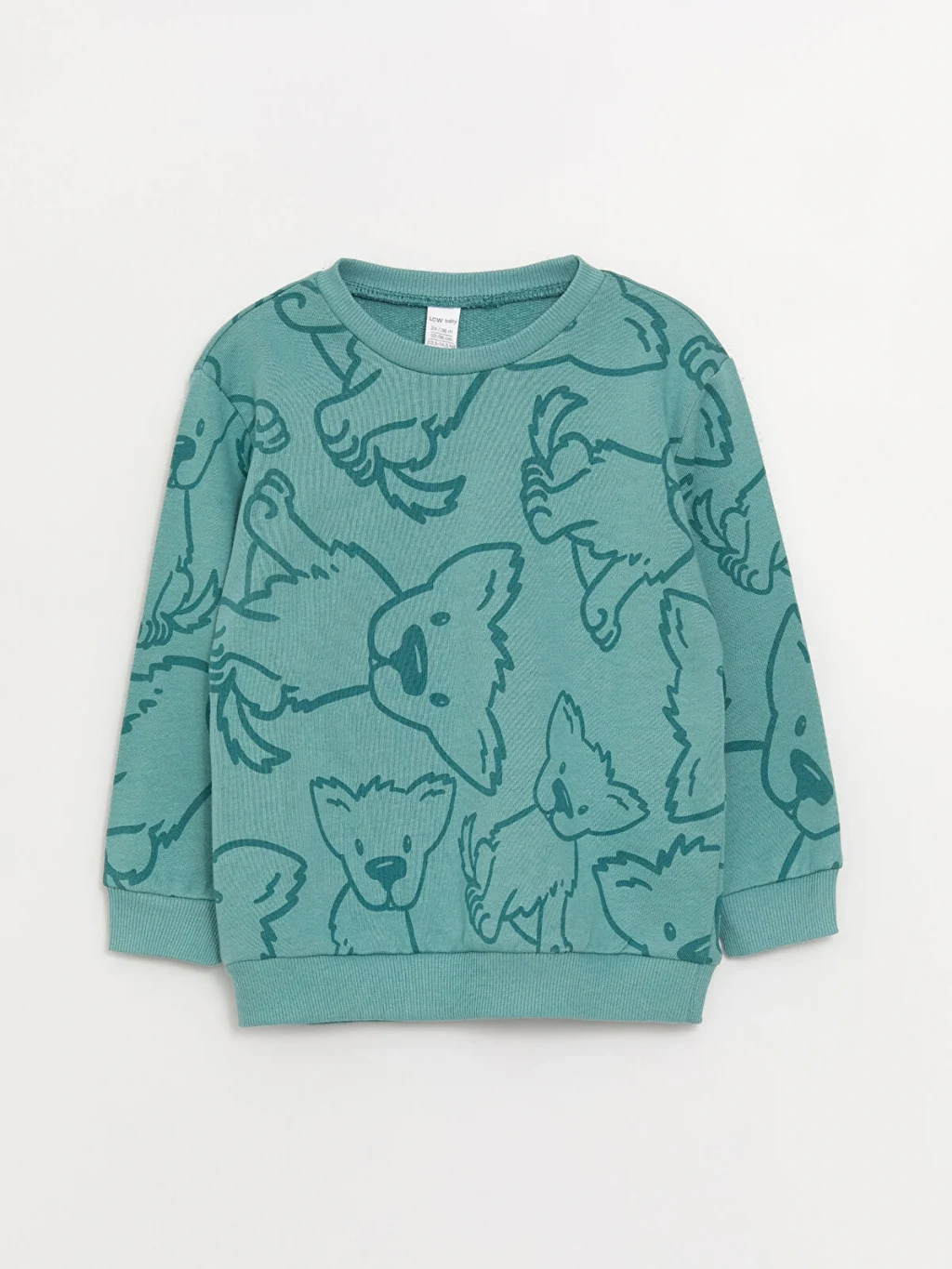 Bisiklet yakalı ve uzun kollu bir erkek bebek sweatshirt. Bu parça, ilgi çekici baskısı ve manşetleri ile alt kısmının ribanalı tasarımıyla dikkat çeker. Hem konforlu hem de stil sahibi bir seçenektir.
