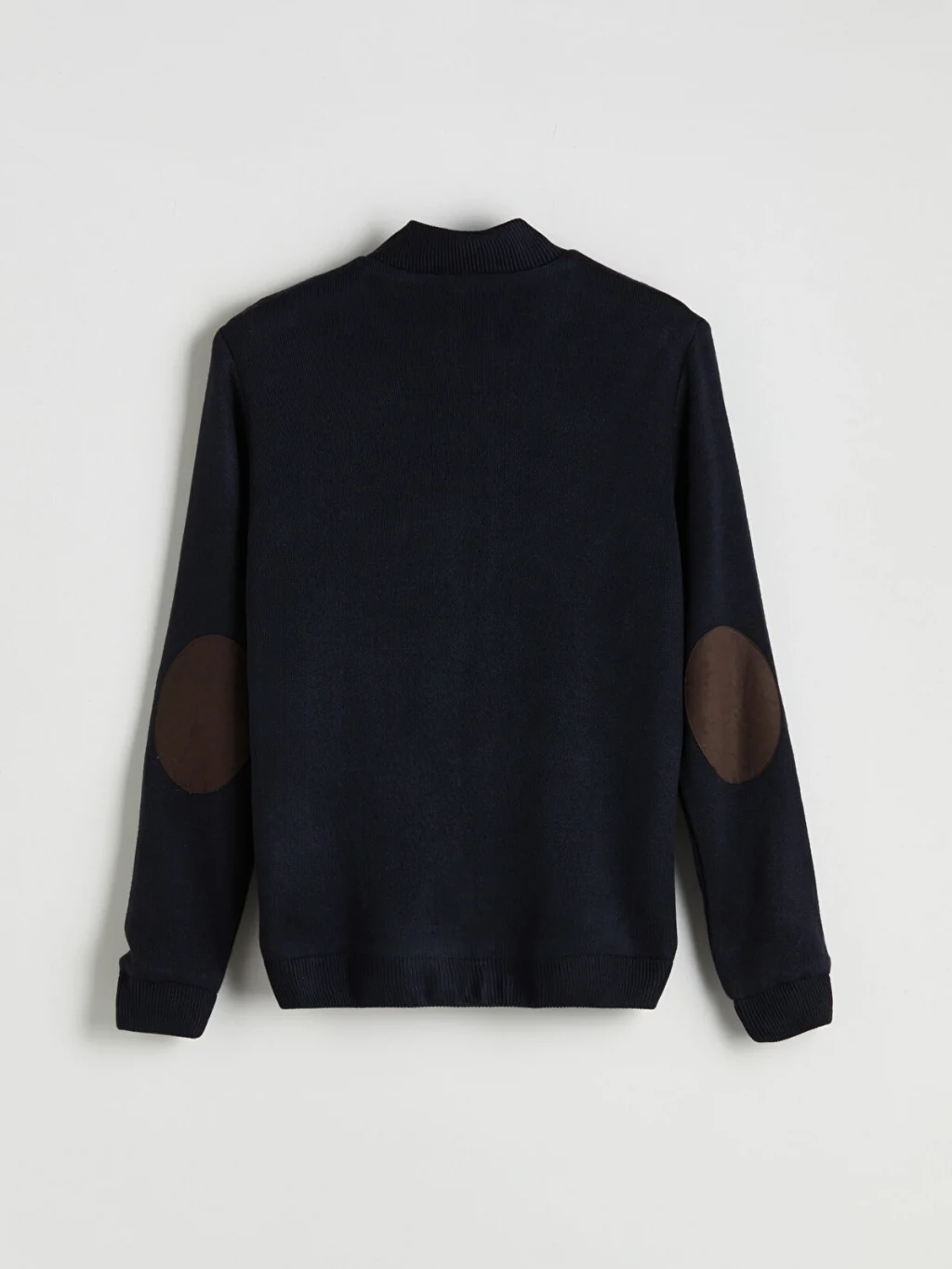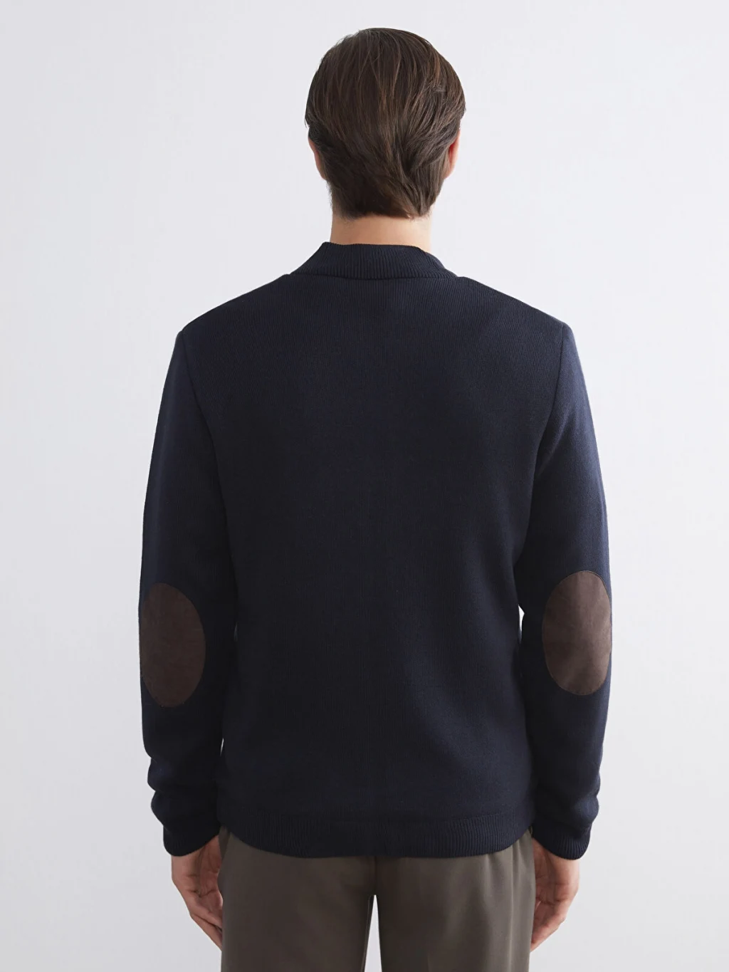 Bomber yakalı, fermuar kapamalı erkek hırka, orta kalınlıkta triko kumaştan üretilmiştir. Uzun kolludur ve önde iki adet cebi bulunur.