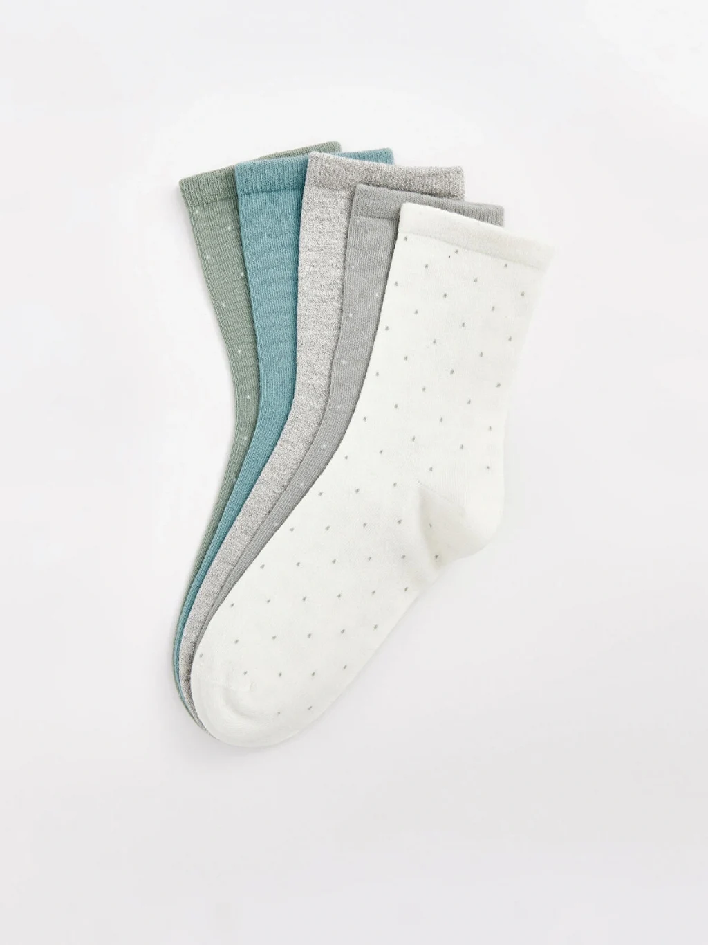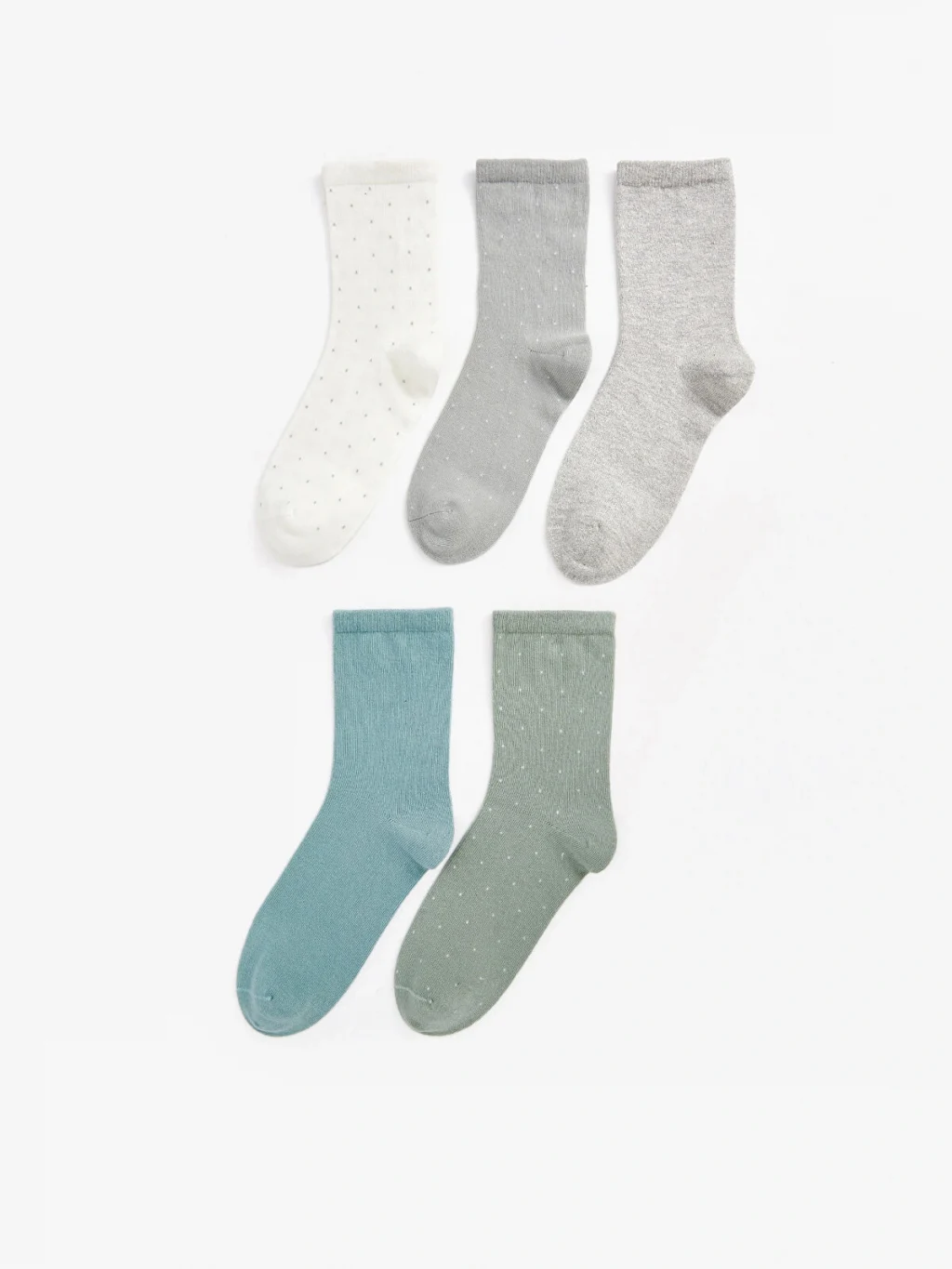 Pamuk karışımlı elyaftan üretilen soket çorap, ayakları rahat ve serin tutar. 3 çift desenli, 2 çift düz olmak üzere 5 çift çoraptan oluşmaktadır. Hem günlük kullanım hem de spor aktiviteleri için ideal bir seçenektir.