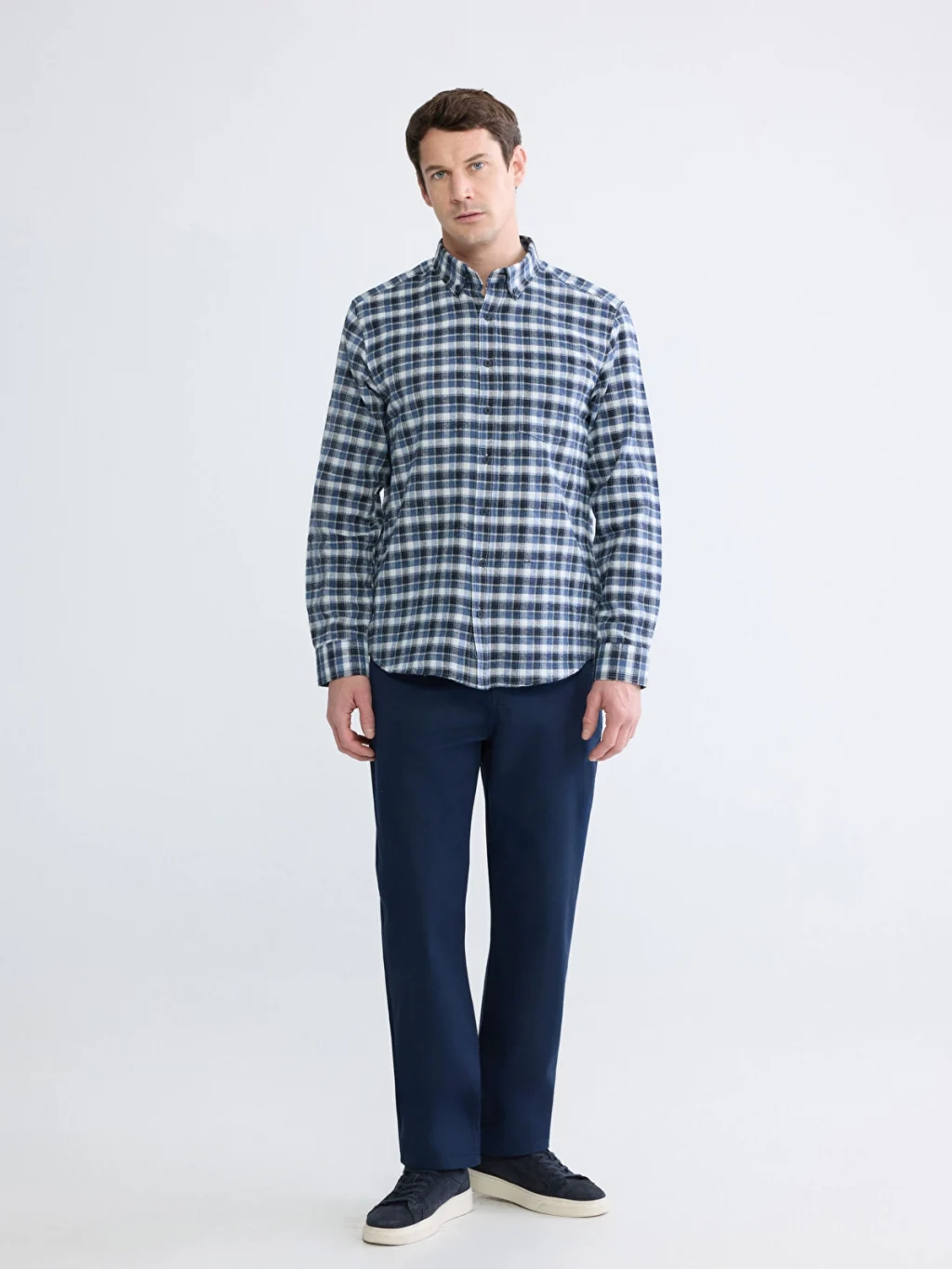 Regular fit kalıpta tasarlanmış erkek gömlek, ekose desenli gabardin kumaştan üretilmiştir.