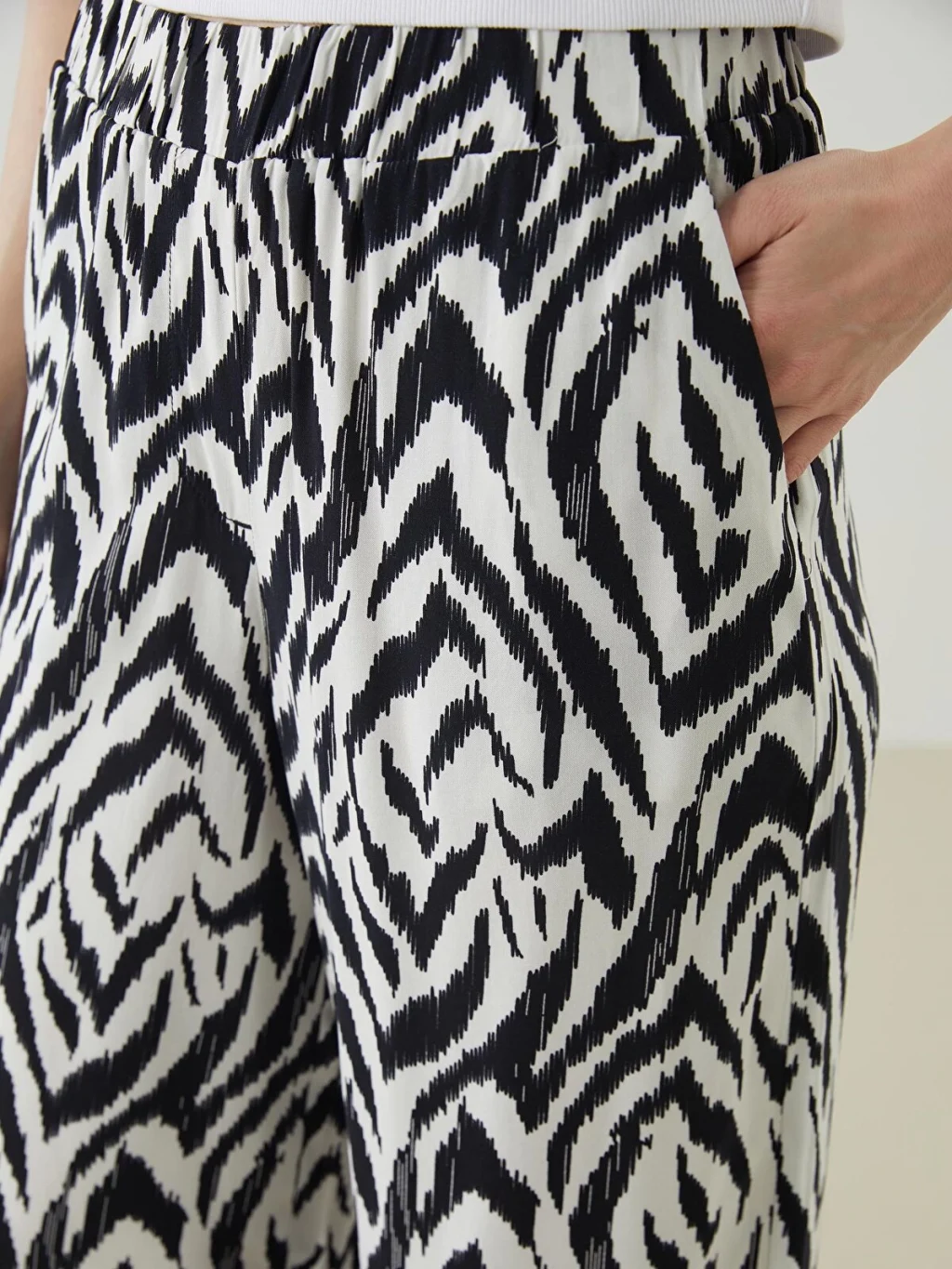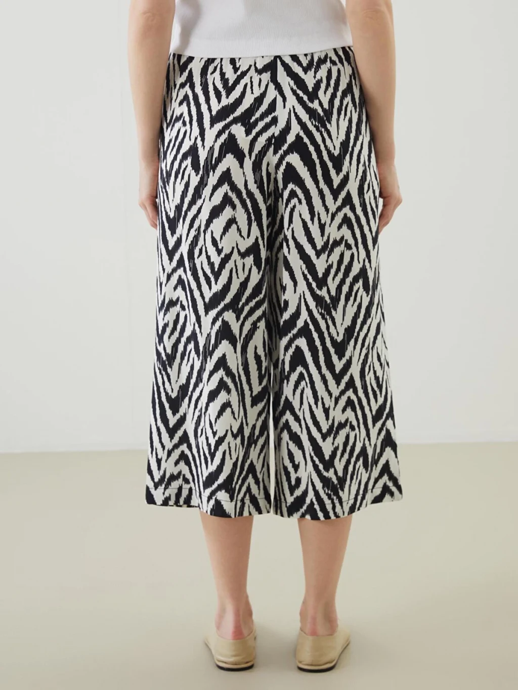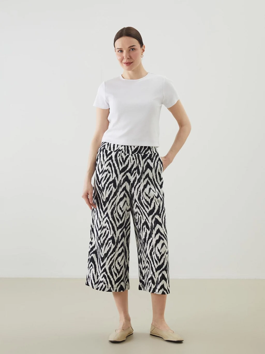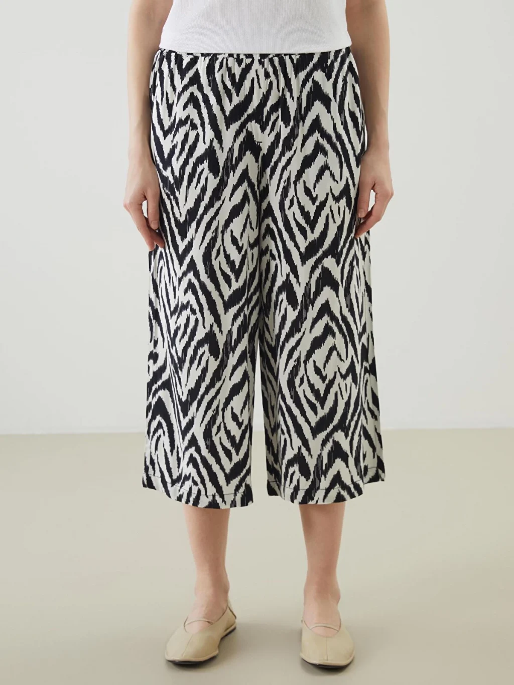 Beli lastikli desenli kapri, shally kumaştan üretilmiştir. Hafif ve nefes alabilir yapısı sayesinde gün boyu rahatlık sunar ve üzerinizde yokmuş gibi hissettirir. Lastikli tasarımı sayesinde belinizi sararak vücudunuza uyum sağlar.