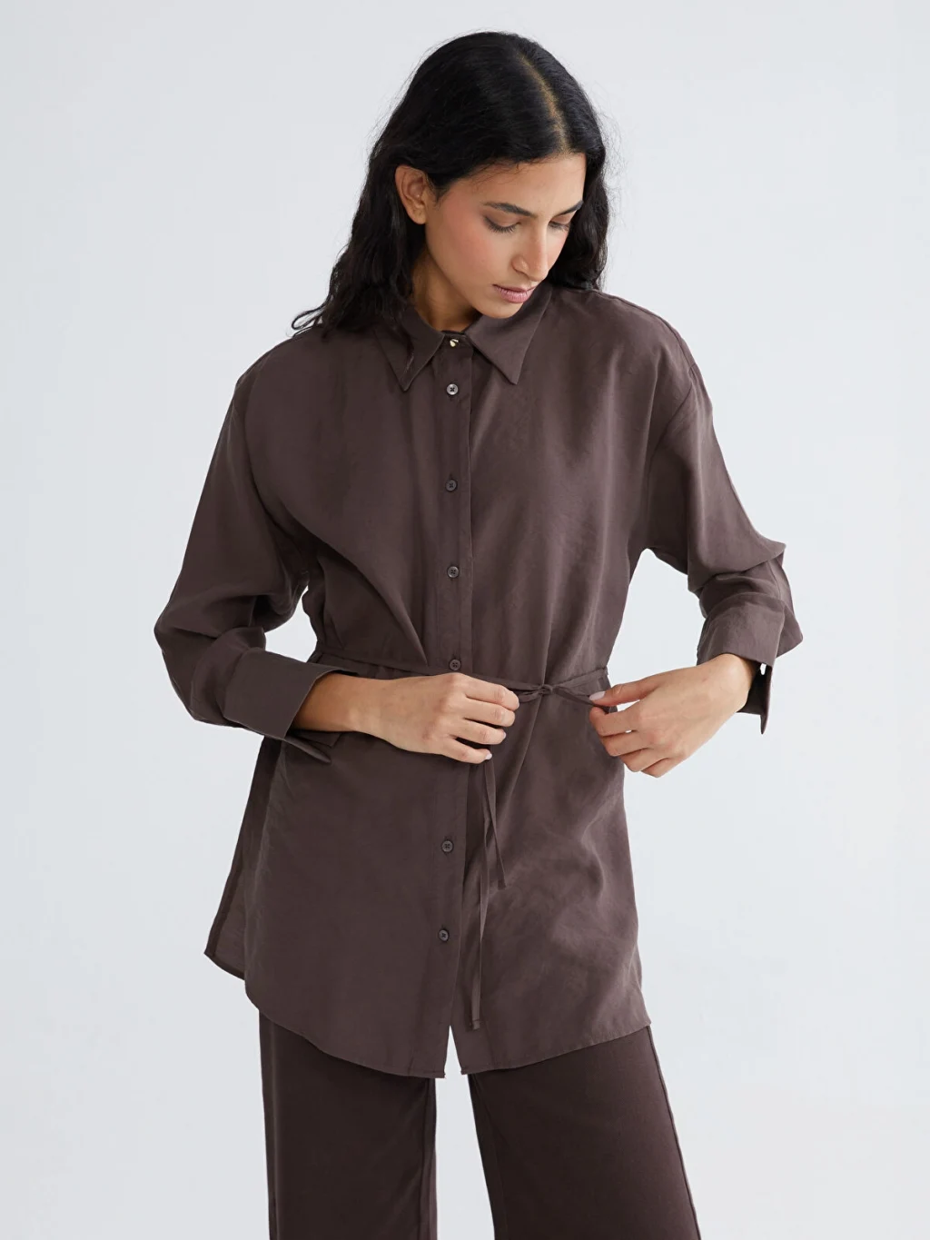 LCW Modest Kahverengi Bağlama Detaylı Kadın Gömlek Tunik
