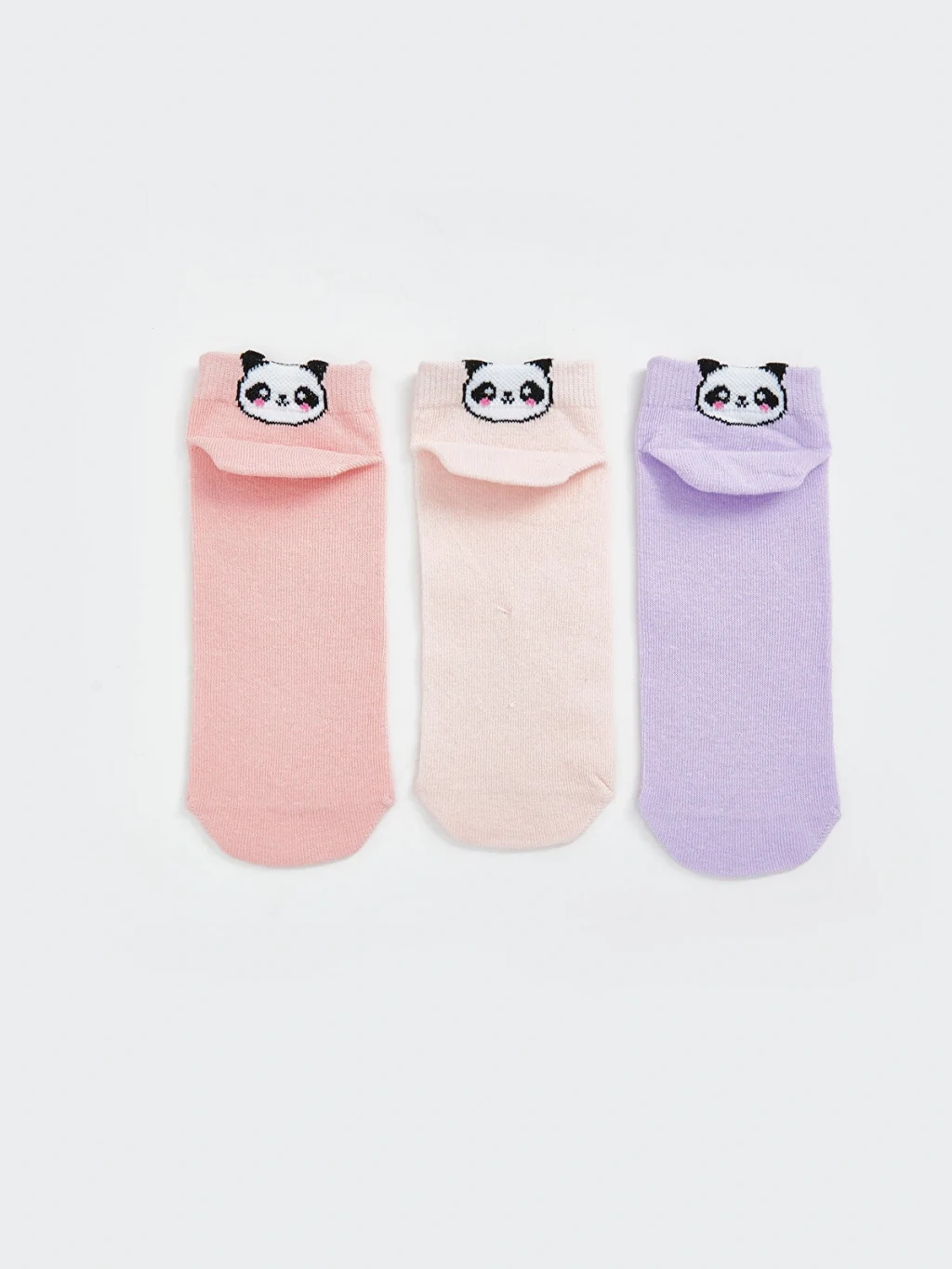 Kız çocuk için, panda baskılı, tekrarlı desenli ve düz modeller içeren beş parçalı patik çorap seti.